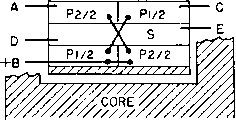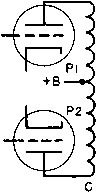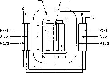 Главная » Журналы » Transformer elementary form 1 ... 14 15 16 17 18 19 20 ... 38 ELECTRONIC TRANSFORMERS AND CIRCUITS Eh IrR I \ (69) where Ец Ef harmonic voltage ampHtude fundamental voltage amplitude harmonic current amplitude fundamental current amplitude R\R2/{R\ + 2)- Rl, 2, and X.v are as shown in Fig. 107(c).i ![]() Fig. 120. Step-down transformer impedance at high frequencies. If flux density is below the knee of the saturation curve, and if Xr = 3R2 at the lowest operating frequency, the harmonic amplitude is less than 5 per cent. An air gap in the core reduces this figure. Table XIII gives typical harmonic currents for silicon steel. Output voltage distortion may be analyzed to find harmonic content by the usual Fourier method. Several simplifications have been de- 1 For a discussion of equation 69 and magnetizing currents in general, see Harmonic Distortion in Audio-Frequency Transformers, by N. Partridge, Wireless Engr., 19 (September, October, and November, 1942). Table XIII. Typical Silicon-Steel Magnetizing Cxtrrent Harmonic Components with Zero Impedance Source Btn Percentage of Percentage of Gauss 3rd Harmonic 5th Harmonic 100 4 1 500 7 1.5 1,000 9 2.0 3,000 15 2.5 5,000 20 3.0 10,000 30 5.0 vised to reduce the labor and increase accuracy. In general, if the recommended tube load impedances are maintained, harmonic percentages will be as given in the tube manuals. If other load impedances obtain at some frequencies, to predict the harmonic output requires harmonic analysis. 68. Push-PuU Amplifier Transformers. The analysis of single-side amplifiers in Section 67 applies to class A push-pull, except that the second-harmonic components in the amplifier output are due to unlike tubes rather than to low-impedance distortion. The internal tube resistance of a class В amplifier varies so much with the instantaneous signal voltage on the grids, power output, and plate voltage that it is not practicable to draw curves similar to Figs. 110 and 113 for class В operation. Qualitatively, the characteristic curves may be expected to follow the same general trend as for class A amplifiers. A basis for class В amplifier design is to make the transformer constants such that the load impedance does not fall below a given percentage of the load resistance R2. This is discussed below. Usually the decline with frequency response is greater for class В than for class A amplifiers, because the effect of internal plate impedance is greater. In the extreme, frequency response falls off proportionately with load impedance. A change in mode of operation occurs in a class В amplifier as the output passes from one tube to the other in the region of cut-off. This change-over may cause transient voltages in the amplifier which distort the output voltage wave form. If the two halves of the transformer primary winding are not tightly coupled, primary-to-primary leakage inductance causes nicks in the output voltage wave, in somewhat the same way as leakage inductance in a rectifier plate trans- iFor example, Graphical Harmonic Analysis, by J. A. Hutcheson, Electronics, 9, 16 (January, 1936). former. In a class В amplifier, the change from one tube to the other is less abrupt than in a rectifier, but in triode amplifiers perceptible nicks in the voltage wave occur if the ratio of primary-to-primary leakage reactance to average plate resistance is 4 or more. CORE NO LEAKAGE FLUX IN SPACE BETWEEN COILS ![]() ![]() Fig. 121. Core-type push-pull balanced windings. Balanced operation in a push-pull amplifier, i.e., equal plate current and voltage swing on both sides, is possible only if the tubes are alike and if transformer winding turns and resistances per side are equal. Shell-type concentric windings do not fulfill this condition because the half of the primary nearer to the core tongue has lower resistance than the other half. Balance is easier to achieve in the core type of arrangement shown in Fig. 121. In class A amplifiers close primary-primary coupling is not essential, and balance may be attained by arranging part coils as in Fig. 122. Because only half of the primary winding of a class В amplifier carries current during a half-cycle, the leakage flux and therefore the primary-to-secondary leakage inductance have approximately half the values with both windings acti\x all the time. With capacitive currents, both windings are active, at least partially. Transformers with J) > 1.0 have low capacitive currents, low leakage inductance, high resonance frequency, and extended frequency range, in addition to the 1 See Quasi Transients in Class В Audio-Frequency Push-Pull Amplifiers, by A. Pen-Tung Sah, Proc. I.R.E., U, 1522 (November, 1936). ![]() Fig. 122. Shell-type push-pull balanced windings. load-impedance advantages given in Section 67. At high frequencies a class В amplifier transformer presents a circuit to the tubes like that in Fig. 123. Let Li be leakage inductance between the halves of the ![]() Fig. 123. High-frequency load impedance of class В amplifiers. primary winding, and L2 between each half of the primary and the secondary. Li is the inductance of one half of the primary winding, measured with the other half-primary short-circuited and the secondary open. L2 is the inductance of one half of the primary winding, measured with the other half-primary open and the secondary short-circuited. In Fig. 123, Li = 2Lp and L2 Lp -\- Lg. Resonant frequency fr is determined by Xc and Хы = 27r/Li. In this figure D = Xc/R2 at fr- First one tube delivers power into the equivalent circuit at one end; then, during the next half-cycle, this tube is cut off and the other tube delivers power into the circuit at the other end. Thus the transformer equivalent impedance Z seen looking into the circuit, first at the end shown and then at the other end, is fed by one of the tubes at all times. Impedance ratio Z/R. varies with frequency as in Fig. 123. For some values of parameter 
