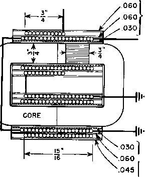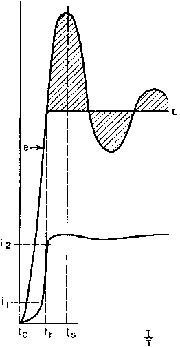 Главная » Журналы » Transformer elementary form 1 ... 29 30 31 32 33 34 35 ... 38 Autotransformers, when they can be used, afford opportunity for space saving, because there are fewer total turns and less winding space is needed. Less leakage inductance results, \mi not necessarily less capacitance; this always depends on the voltage gradients. Initial distribution of \oltage at the front edge of a pulse is not uniform because of turn-to-turn and winding-to-winding capacitance. In a single-layer coil the total turn-to-turn capacitance is small compared to the winding-to-ground capacitance, because the turn capacitances add in series but the ground or core capacitances add in shunt. Therefore a steep wave of voltage impressed across the winding sends current to ground from the first few turns, leaving less voltage and less current for the remaining turns. Initially, most of the pulse voltage appears across the first few turns. After a short interval of time, some of the current flows into the remaining turns inductively. Before long the capacitive voltage distribution disappears, all the current flows through all the turns, and the voltage per turn becomes uniform. This condition applies to most of the top of a pulse. Between initial and final current distribution, oscillations due to leakage inductance and winding capacitance may appear which extend the initially high voltage per turn from the first few turns into some of the remaining turns. Winding capacitance to ground is evenly distributed along the winding of a single coil, and so is the turn-to-turn capacitance. If a rectangular pulse E is applied to one end of such a winding, and the other end is grounded, the maximum initial voltage gradient is - coth a where iV = number of turns in winding Cg = capacitance of winding to ground Cu> = capacitance across winding = turn-to-turn capacitance/A . Practical values of a are large, and coth a approaches unity. Then Maximum gradient ~ aE/N (136) 1 For the development of this expression see Surge Phenomena, British Electrical and Allied Industries Research Association, 1941, pp. 223-226. or the maximum initial voltage per turn is approximately a times the final or average voltage per turn. If the other end of the winding is open instead of grounded, equation 136 still governs. This means that maximum gradient is independent of load. If there is a winding between the pulsed winding N2 and ground, a depends on Ci 2 and Ci in series. The initial voltage in winding Nl is ECi 2 El =- (137) Cl 2 + Сi where Ei = initial voltage in winding N1 E = pulse voltage applied across N2 Cl 2 = capacitance between N1 and N2 Сi = capacitance between N1 and core. Thus the initial voltage in winding N1 is independent of the transformer turns ratio. It is higher than the voltage which луоиИ appear in 2 if N1 were pulsed, because then current would flow from iVi to ground without any intervening winding. If лvinding N1 is the low-voltage winding (usually true), applying pulses to it stresses turn insulation less than if N2 is pulsed. Reinforcing the end turns of a pulsed winding to withstand better the pulse voltages is of doubtful value, because the additional insulation increases a and the initial gradient in the end turns. Increasing insulation throughout the winding is more beneficial, for although a is increased the remaining turns can withstand the oscillations better as inductance becomes effective. Decreasing winding-to-corc capacitance is better yet, for then a decreases and initial voltage gradient is more uniform. 132. Efficiency. Circuit efficiency should be distinguislied from transformer efficiency. Magnetization current represents a loss in efficiency, but it may be returned to the circuit after the pulse. Circuit efficiency may be estimated by comparing the area of the actual wave shape across the load to that impressed upon the transformer; it includes the loss in source resistor Ri (Fig. 233). Except for this loss, the circuit and transformer efficiency arc the same when the source is cut off at the end of the pulse. It is important in testing for losses to use the proper circuit. Core loss can be expressed in watt-seconds per pound per pulse. A convenient way to measure core loss is to use a calorimeter. The trans- iSee Surge Phenomena, pp. 227-281. former is located in the calorimeter, and the necessary connections are made by through-type insulators. Dielectric loss is included in such a measurement. It is appreciable only in high-voltage transformers, and may be separated from the iron loss by first measuring the loss of the complete transformer and then repeating the test with the high-voltage winding removed. At 6,000 gauss and 2 microseconds pulse width, the loss for 2-mil grain-oriented steel is approximately 6,000 watts per pound, or 0.012 watt-second per pound per pulse. For square pulses, core loss varies (a) as or for constant pulse width and (b) as pulse wddth, for constant voltage and duty т/, where т is the pulse width and / is the repetition rate. Dielectric loss is independent of pulse width and varies (a) as the repetition rate, for constant voltage, and (6) as E for constant repetition rate. Copper loss is usually negligible because of the comparatively few turns required for a given rating if a wire size somewhere near normal for the rms current is used. If the windings are used to carry other current, such as magnetron filament current, the copper loss may be appreciable but this is a circuit loss. Efficiencies of over 90 per cent are common in pulse transformers, and with high-permeability materials over 95 per cent may be obtained. These figures are for pulse power of 100 kw or more. Maximum efficiency occurs when the iron and dielectric losses are equal. 133. Non-Linear Loads. The role played by leakage inductance and distributed capacitance in determining pulse shape has been mentioned in Sections 124 and 126. It has been shown that the first ef