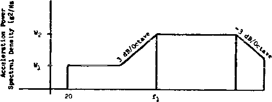 DEFINITIONS q = maximum captive flight dyneunic pressjre in Kg/n? (lbs/ft ). (See Note 1) и = average store weight density in Kg/n/- (lbs/ft*) (total wight / total volume t = local store average skin thickness where R is msasured - meter (inches) R = one-half the average of the najor and minor diameters - meter (inches) for a store with an eliptical cross-section (for cylindrical sections use local geometry; for conical sections use smallest Ij calculated using geometry within one foot of equipment mounting point: for oast irregular shaped cross-section, R shall be one-half the longest inscribed chord; for inonocoque irregular crcss-ssction. fj = 300 Hz) NOTES ; 1. For endurance test, q = ьаьв Kgs/m- (1200 lb/ft- ) or maxiniuni q, vmiehever is less. 2. Free fall stores with tail fins, jse fj = 125 Hz: f2 = CxCt/RJxlO ♦ 1000 Hz. 3. For generalruse fuzes which oan be used in several stores; use Wj = 0.04g /Hz: 2 = 0.15 g/Hz: fj = 100 Hz: fg = 1000 Hz. 4. Acceptance range for parauneter values: 40 lP(.i50 wereP is in Ib/ft- 0.001<.t/R<0.02 vshere t&P. are in inches. or if calculated values fall outside these limits, use these limit values. 5. For circular and elliptical cross-sections. f = 500 Hz for all other cross-sections. TABLE 514.4-VI (Continued) Representative parameter values to be used for captive flight Wnien specific tAhLE 5i4.4-VI iContinijed) 6. С - I where t&K are in inches С = 2.54 X 10 were t&R are in meters 7. If fl200 Hz is calculated, use 2000 Hz. S. И 5 X 10 if q is in lbs/ft 9. N Maximum number of anticipjated service missions for store or equipment. (N>3) 10. T = Test time per axis, hours (ТИ) 11. Blunt nosed refers to configurations with separated aerodynamic flow at or Just aft of the store nose. Optical flats, corners, sharp edges, bluffs, and op>en cavities are potential sources of separation. Any nose other than smooth, rounded and gently tapered is suspect. The engineers responsible fer store aerodynamics design and perfornance should make this ueterminaticn. ![]() Frequency (Ht) FIGRIRE 514.4-14 Suggested vibration test levels for equipment installed in external stores carried on jet aircraft. 1-3.4.4.5 Test duration. The test duration should be developed from flight mBasvmements, flight characteristics, and flight dwations. If these data are not available, then test duratior.g can be obtained from the information given in 1-4.3, 1-4.6 and 1-4.7. 1-3.4.5 Category 7B - Equipment, installed in externally carried stores. 1-3.4.5.1 Background, information. Equipment installed within an externally carried store mil experlenee a broad-band vibration spectгШп that depends chiefly on the captive-carry regpor.ge of the store. Vibration t@stir.g, v*er.ever possible, should be based on in-flight measiA>ements. If satisfactory flight пваяш*егавп*я are not available, functional tests may be derived from figure 514.4-14 and table 514.4-VI. Note that the test levels for equipment installed in stores are the Same as the response test levels of assembled stores. The response of the store is the input vibration to an item installed in the store. If buffet-maneuver and free-flight conditions can occur- for the store into woiich the equitent will be installed, vibration test spectra need to be developed for each condition. 1-3.4.5.2 Test levels. If sufficient measured data do not exist, use figtire 514.4-14 and refer to 1-3.4.4. Vibration testing of equipment to be Installed in externally carried Jet aircraft stores should be input-control led testing (see I- 4.2.6). 1-3=4.5.3 Test dm-ation. Refer to 1-4.3, 1-4.6, and 1-4.7 for test dis>ation and endurance test criteria. 1-3.4.6 Category 7C - Assembled external stores, helicopters. 1-3,4.9.1 Баскягоипа„-iniormaiion Conplex periodic waveforms characterize the service vibration enviroranent encountered by assembled stores externally carried on helicopters. Lb.llke stores carried on fixed-wing aircraft, externally moimted helicopter stoics receive little aerodynamic excitation, particularly d)en conpared with the rotor-induced vibration. Thus, most of the vibratory energy reaches the equipment through the attachment points between the aircraft and the store. Some excitation, however, is added along the entire store structure due to periodic rotor-induced ргезаш е i iuctuations. The result is a еощр1ех response, miqije to the particular aircraft-store configuration. Therefore, realistic testing depends almost totally upon the use of in-flight vibration теазш етепЛв. This environment is Simulated by exposing the test item to a low-level broadband random spectrum with discrete vibration peaks at the frequencies and first three fundamentals of the aircraft main rotor (source dwell testing - see 1-4.2.2). 1-3.4.6.2 Test level. As stated above, because of the strong dependency of the vibration level on the aircraft-store cont!ir.ation, the use of msasured data taken on the store itself is recomnended for setting the levels. The resulting teat spectrum shall include exposure based upon the source dwell concepts of 1-4.2.2. The suggested vibration conditions from table 514.4-IV and figure 514.4-9 can be lised for initial testing prior to acquisition of field data. NErraOD 514.4 1-3.4.6.3 Test duration. The test dxiration shall be developed from flight test data. Exposure periods shall be developed by constructing a life cycle based on the measured flight environment, equipment life requirements and aircraft mission profiles. If flight test data are not available, test durations can be selected from infornation provided in 1-4.2.7, 1-4.3, 1-4.6 and 1-4.7. 1-3.4.7 Categorv 8 - Ground mobile. 1-3.4.7.1 Background information. The ground mobile environment consists largely of broadband random vibration resulting from the interaction of vehicle suspension and struetiB es with road and surface discontinuities. The natjre of the terrain, vehicle speed, vehicle dynamic eharaeteristics, and