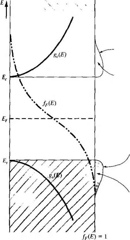 7Т О Figure 3-391 Figure for Problem 3.19. (h) d-E/dk versus к for each curve, (c) What conclusion can you make concerning a comparison in effective masses for the two cases? Section 3.3 Extension to Three Dimensions 3.20 The energy band diagram for silicon is shown in Figure 3.23b. The minimum energy in the conduction band is in the f 100] direction. The energy in this one-dimensional direction near the minimum value can be approximated by E = E{) - E] cosa{k - k[]) where k is the value of к at the tninimum energy. Determine the effective mass of the particle at к = k[) in terms of the equation parameters. Section 3.4 Density of States Function 3.21 Starting with the three-dimensional infinite potential well function given by Equation (3.59) and using the separation of variables technique, derive Equation (3.60). 3.22 Show that Equation (3.69) can be derived from Equation (3.64). 3.23 Determine the total number of energy states in GaAs between E,. and E, -\-кТ at T = 300 K. Problems 101 3.24 Determine the total number of energy states in GaAs between E. and E. - kT at r = 300 K. 3.25 (a) Plot the density of states in the conduction band for silicon over the range Ec E < Ec -\- 0.2 eV. (b) Repeat part (a) for the density of states in the valence band over the range E - 0.2eV < £ < 3.26 Find the ratio of the effecdve density of states in the conduction band at E, -\-kT to the effective density of states in the valence band at Ef. - kT. Section 3.5 Statistical Mechanics 3.27 Plot the Fermi-Dirac probability function, given by Equation (3.79), over the range -0.2 <(E-Ef)< 0.2 eV for (a) T = 200 K, (b) T = 300 K, and (c) T = 400 K. :Qi 3.28 Repeat Example 3.4 for the case when = 10 and Nj =8. 3.29 (a) If Ef = hnd the probability of a state being occupied и\ E = E + kT, (b) If Ef = Я^ find the probability of a state being empty di E = E, - kT. 3.30 Determine the probability that an energy level is occupied by an electron if the state is above the Fermi level by {а)кТ. (b) 5kT. and (c) WkT 3.31 Determine the probability that an energy level is empty of an electron if the state is below the Fermi level by (я) кТ, (b) 5кТ and (с) lOkT 3.32 The Fermi energy in silicon is 0.25 eV below the conduction band energy E. {a) Plot the probability of a state being occupied by an electron over the range E,<E< E, + 2kT. Assume T = 300 K. {b) Repeat part (a) for T = 400 K. 333 Four electrons exist in a one-dimensional infinite potential well of width a = 10 A. Assuming the free electron mass, what is the Fermi energy at Г = 0 K. 334 (a) Five electrons exist in a three-dimensional infinite potential well with all three widths equal to й = 10 A. Assuming the free electron mass, what is the Fermi energy at Г = 0 K. (/?) Repeat part (a) for 13 electrons. 3.35 Show that the probability of an energy state being occupied AE above the Fermi energy is the same as the probability of a state being empty AE below the Fermi level. 3.36 (a) Determine for what energy above Ef (in terms of kT) the Fermi-Dirac probability function is within 1 percent of the Boltzmann approximation, (h) Give the value of the probability funcdon at this energy. 3.37 The Fermi energy level for a particular material at Г 300 К is 6.25 eV. The electrons in this material follow the Fermi-Dirac distribution function, (a) Find the probability of an energy level at 6.50 eV being occupied by an electron, (b) Repeat part (a) if the temperature is increased to 7 = 950 K, (Assume that is a constant.) (c) Calculate the temperature at which there is a 1 percent probability that a state 0.30 eV below the Fermi level will be empty of an electron. 338 The Fermi energy for copper at Г = 300 К is 7.0 eV. The electrons in copper follow the Fermi-Dirac distribution function, (a) Find the probability of an energy level at 7.15 eV being occupied by an electron, (b) Repeat part (a) for T = 1000 K. (Assume that Ef is a constant.) (c) Repeat part (a) for E = 6.85 eV and T = 300 K. {d) Determine the probability of the energy state E = Ef being occupied at Г = 300 К and at Г = 1000 К. 3.39 Consider the energy levels shown in Figure 3.40. Let T = 300 K. (a) If E] - Ef = 0.30 eV, determine the probability that an energy state ai E = E] is occupied by an electron and the probability that an energy state at £ = Я2 is empty, (h) Repeat part (a) if Ef-Ei 0.40 eV. ----------£r l.l2eV Figure 3.40 I Energy levels for Problem 3.39. 3.40 Repeat problem 3.39 for the case when Ei - E2 = 1.42 eV. 3.41 Determine the derivative with respect to energy of the Fermi-Dirac distribution function. Plot the derivative with respect to energy for {a) T =i)KAb)T = 300 K, and (c) T 500 K. 3.42 Assume the Fermi energy level is exactly in the center of the bandgap energy of a semiconductor at Г = 300 К. (a) Calculate the probability that an energy state in the bottom of the conduction band is occupied by an electron for Si, Ge, and GaAs. (b) Calculate the probability that an energy state in the top of the valence band is empty for Si, Ge, and GaAs, 3.43 Calculate the temperature at which there is a 10 probability that an energy state 0.55 eV above the Fermi energy level is occupied by an electron. 3.44 Calculate the energy range (in eV) between (£) = 0.95 and ft{E) = 0.05 for Ef = 7.0 eV and for (a) Г = 300 К and (b) Г = 500 K. READING LIST 1. Kano, K. Semiconductor Devices. Upper Saddle River, NJ: Prentice Hall, 1998. 2. Kittel, C. Introduction to Solid State Physics, 7th ed. Berlin: Springer-Veriag, 1993. 3. McKelvey, J. P. Solid State Physics for Engineering and Materials Science. Malabar, FL.: Krieger, 1993. 4. Pierret, R. F. Semiconductor Device Fundamentals. Reading, MA: Addison-Wesley, 1996. *5. Shock ley, W. Electrons and Holes in Semiconductors. New York: D. Van Nostrand, 1950. 6. Shur, M. Introduction to Electronic Devices. New York: John Wiley and Sons, 1996. *7. Shur, M. Physics of Semiconductor Devices. Englewood Cliffs, NJ: Prentice Hall, 1990- 8