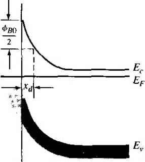 (volts Figure 9.25 I Figure for Problem 9.6. 9.8 9.9 (d) the space charge width, л„, for ¥ц = 5 V. and (e) the electric field at the metal junction for Vr = 5 V. Repeat problem 9.3, parts (b) through {e), if the experimentally determined barrier height is found to be ф^ - 0.86 V. An Au-n-Si junction with N,{ = 5 x ]0 cm~ has a cross-sectional area of A = 5 X 10 * cm*. T = 300 K. Use the data in Figure 9.5. (a) Determine the junction capacitance when V = 4 V. Repeat part (f) if the doping is increased to = 5 X 10* cm-\ A Schottky diode with n-type GaAs at 7* = 300 К yields the 1/C versus V plot shown in Figure9.25, where С is the capacitance per cm-. Detennine {a) Уы, (b) Ni, (c) 0 ,and id) фво^ Consider an Al-n-Si Schottky barrier at Г 300 К with N,i 10 cm -. Use the data in Figure 9.5 to determine the barrier height, {a) Determine , xj, and Eax at zero bias, (h) Using the value of Enix from part {a), determine Аф and for the Schottky barrier lowering, (c) Repeat part (h) for the case when a reverse bias of Vr = 4 V is applied. Starting with Equation (9.12), derive Equations (9.14) and (9.15). An Au--n-GaAs Schottky diode is at Г = 300 К with = 5 x 10 cm . Use the data in Figure 9.5 to determine the barrier height, (a) Determine У^, jr, and E at zero bias. (/?) Detennine the reverse-bias voltage at which the Schottky barrier lowering, Аф, will be 7 percent of фв . (Use the value of Eas ii the space charge region.) 9.10 Consider n-type silicon doped at N,; = 10 cm with a gold contact to form a Schottky diode. Investigate the effect of Schottky barrier lowering, (a) Plot the Schottky barrier lowering Д< versus reverse-bias voltage over the range 0 < Vr < 50 V. (b) Plot the ratio J,/ (VR)/JsT(yR =0) over the same range of re verse-bias voltage. *9.11 The energy-band diagram of a Schottky diode is shown in Figure 9.6. Assume the following parameters: 1.43 eV = (13.1)0 ф„ =0.10V = 25 A X = 4.07 V = 0.60 V = Co TVj - 10* cm Di, = 10- eV- (a) Detemiine the theoretical barrier height ф^о* without interface states, (h) Determine the barrier height with interface states, (c) Repeat parts (a) and (h) if is changed to ф, = 4.5 V. *9Л2 A Schottky barrier diode contains interface states and an interfacial layer. Assume the following parameters: 0, = 4.75 V Ф, = 0.164 V 00 = 0.230 V £, = L12eV 5 = 20 A (i = = (llJKt) X =4.01 V N=5x 10 cm- фво = 0.60 V Determine the interface state density, Д7, in units of eV~ cm~. 9ЛЗ A PtSi Schouky diode at Г = 300 К is fabricated on n-type silicon with a doping of Л^ = 10 cm *. From Figure 9.5, the barrier height is 0.89 V. Determine (a) Ф) Vhi, (c) JsT. when the barrier lowering is neglected, and {d) V so that J =2 A/cm-. 9Л4 {a) Consider a Schouky diode at Г = 300 К formed with tungsten on n-type silicon. Let -5 X 10cm~- and assume a cross-sectional area of >4 = 5 x 10 cm-. Determine the forward-bias voltage required to obtain a current of 1 mA, 10 mA, and 100 tnA. (/?) Repeat part {a) if the temperature is increased loT = 400 K. (Neglect Schottky barrier lowering.) 9Л5 A Schottky diode is formed by depositing Au on n-type GaAs doped at N.f = 5 x 10 cm -. T = 3(X)K. (a) Determine the forward-bias voltage required to obtain Jr = 5 A/cm. (b) What is the change in forward-bias voltage necessary 10 double the current? (Neglect Schottky barrier lowering.) 9Л6 (a) Consider an Au n-type GaAs Schottky diode with a cross-sectional area of 10 ctn . Plot the forward-bias current-voltage characteristics over a voltage range of 0 < Vp < 0.5 V. Plot the current on a log scale, (b) Repeat part (a) for an Au n-type silicon Schottky diode, (c) What conclusions can be drawn from these results? 9Л7 A Schottky diode at Г = 300 К is formed between tungsten and n-type silicon doped at A, - 10 cm \ The cross-sectional area is Л = 10~ cm. Determine the reverse-bias saturation current at (л) V = 2 V and (b) Vr = 4 V. (Take into account the Schottky barrier lowering.) *9Л8 Starting with the basic current equation given by Equation (9.18), derive the relation given by Equation (9.23). 9Л9 A Schottky diode and a pn junction diode have cross-sectional areas of Л = 5 X 10 * cm-. The reverse saturation current density of the Schottky diode is 3 X 10~ A/c]\r and the reverse saturation current density of the pn junction diode is 3 X 10 A/cm~. The temperature is 300 K. Determine the forward-bias voltage in each diode required to yield diode currents of 1 mA. 9.20 The reverse saturation current densities in a pn junction diode and a Schottky diode are 5 X 10 A/cm- and 7 x I0~ A/cnr, respectively, at Г = 300 К. The cross-sectional area of the pn junction diode is Л = 8 x 10 * cm . Determine the cross-sectional area of the Schottky diode so that the difference in forward-bias voltages to achieve 1.2 mA is 0.265 V. 9.21 (a) The reverse-saturation currents of a Schottky diode and a pn junction diode at T = 300 к are 5 x 10~* A and 10~ A, respectively. The diodes are connected in ![]() parallel and are driven by a constant current ot 0.5 mA. (i) Determine the current in each diode. ( ) Determine the voltage across each diode, (h) Repeat part (a) if the diodes are connected in series. 9-22 A Schottky diode and a pn junchon diode have cross-sectional areas of Л - 7 x lO * cm. The reverse-saturation current densities at 7 = 300 К of the Schottky diode and pn junction are 4 x 10 A/cm and 3 x 10 A/cm, respectively. A forward-bias current of 0.8 mA is required in each diode, (a) Determine the forward-bias voltage required across each diode, (b) If the voltage from part (a) is maintained across each diode, determine the current in each diode if the temperature is increased to 400 K. (Take into account the temperature dependence of the reverse-saturation currents. Assume = 1.12 eV for the pn junction diode and = 0.82 V. for the Schottky diode.) 9.23 Compare the current-voltage characteristics of a Schottky barrier diode and a pn junction diode. Use t
