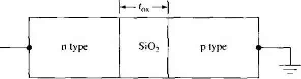 О Figure 1L62 I Figure for Problem 11Л 11.6 11.8 11.9 11.10 Consider an polysilicon-silicon dioxide-n-type silicon MOS capacitor. Let iVj = 10 cm~. Calculate the flat-band voltage for (a) fox = 500 A when Q] is 0) 10 cm- iii) 101 cm-% and (ш) 5 x lOi cm . Repeat part (a) when t, = 250 A. 11.7 Consider an aluminum gate-silicon dioxide-p-type silicon MOS structure with = 450 A. The silicon doping is N 2 x 10 cm and the flat-band voltage is VfTs = - LO V. Determine the fixed oxide charge . An MOS transistor is fabricated on a p-type silicon substrate with = 2 x 10 cm~. The oxide thickness is Гох = 450 A and the equivalent fixed oxide charge is = 2 x 10 cm. Calculate the threshold voltage for (a) an aluminum gate, (b) an n polysilicon gate, and (c) a p+ polysilicon gate. Repeat Problem 11.8 for an n-type sihcon substrate with Nd = 10** cm-. A 400 A oxide is grown on p-type silicon with =5 x 10 cm~\ The flat-band voltage is -0.9 V. Calculate the surface potential at the threshold inversion point as well as the threshold voltage assuming negligible oxide charge. Also find the maximum space charge width for this device. *11.11 An MOS transistor with an aluminum gate is fabricated on a p-type silicon substrate. The oxide thickness is fx = 750 A, and the equivalent fixed oxide charge is = 10 cm~. The measured threshold voltage is Vr = -h0.80 V. Determine the p-type doping concentration. Problems 515 *11.23 Using the results of Problem 11.22, calculate the shift in the flat-band voltage for the following oxide charge distributions: (a) Q = 5 x 10 cm~- is entirely ![]() * 11.12 Repeat Problem 11.11 for an n-type silicon substrate if the measured threshold voltage is Vt - - 1.50 V. Determine the n-type doping concentration. 11.13 An Al-silicon dioxide-silicon MOS capacitor has an oxide thickness of 450 A and a doping of Na = 10 cm~. The oxide charge density is = 3 x 10 cm. Calculate (a) the flat-hand voltage and (h) the threshold voUage. Sketch the electric field through the structure at the onset of inversion. 11Л4 An n-channel depletion mode MOSFET with an n+ polysilicon gate is shown in Figure 11.42. The n-channel doping is N 10 cm *, and the oxide thickness is t = 500 A. The equivalent fixed oxide charge is = 10 cm~. The n-channel thickness is equal to the maximum induced space charge width. (Disregard the space charge region at the n-channel-p-substrate juncfion.) (a) Determine the channel thickness , and (b) calculate the threshold voltage. 11.15 Consider an MOS capacitor with an n polysilicon gate and n-type silicon substrate. Assume Na = 10 cm and let £/r - E. = 0.2 eV in the n+ polysilicon. Assume the oxide has a thickness of f = 300 A. Also assume that (polysilicon) = у/ (single-crystal silicon), (a) Sketch the energy-band diagrams {/) for Vc =0 and (n) at flat band, (h) Calculate the metal-semiconductor work function difference. (c) Calculate the threshold voltage for the ideal case of zero fixed oxide charge and zero interface states. 11.16 The threshold voltage of an n-channel MOSFET is given by Equation (11.27). Plot Vf versus temperature over the range 200 5 T < 450 K. Consider both an alu-rninum gate and an n polysihcon gate. Assume the work funcfions are independent of temperature and use device parameters similar to those in Example 11.4. 11.17 Plot the threshold voltage of an n-channel MOSFET versus p-type substrate doping concentration similar to Figure 11.20. Consider both n and p polysilicon gates. Use reasonable device parameters. 11.18 Plot the threshold voltage of a p-channel MOSFET versus n-type substrate doping concentration similar to Figure 11.21. Consider both n and p polysihcon gates. Use reasonable device parameters. 11Л9 Consider an NMOS device with the parameters given in Problem 11.10. Plot Vf versus ox over the range 20 < fx < 500 A. -LJJ Section 11.2 Capacitance-Voltage Characteristics 11.20 An ideal MOS capacitor with an aluminum gate has a silicon dioxide thickness of = 4(X) A on a p-type silicon substrate doped with an acceptor concentration of Na 10 cm~-\ Determine the capacitances C, CJj, CJ, and C4inv) at (й) / 1 Hz and (h) f = 1 MHz. (c) Determine VfB and Vf. Sketch C/C, versus Vg for parts {a) and (b). 11.21 Repeat Problem 11.20 for an n-type silicon substrate doped with a donor concentration of jV,/ = 5 x 10 cm-\ *11.22 Using superposition, show that the shift in the flat-band vohage due to a fixed charge distribution p{x) in the oxide is given by 1 .VP(л) AVfb = -r- / --dx ![]() 11.27 ![]() located at the oxide-semiconductor interface. Let = 750 A. {h) Q[ = 5 X 10 cm~ is uniformly distributed throughout the oxide, which has a thi of 750 A. (c) Q =5 X 10 cm~- forms a triangular distribution with the peak -dtx - /ox - 750 A (the oxide-semiconductor interface) and which goes to zero at jc = 0 (the metal-oxide interface). 11.24 An ideal MOS capacitor is fabricated by using intrinsic silicon and an n+ polysilico gate, (a) Sketch the energy-band diagram through the MOS structure under flat-ban conditions, ф) Sketch the low-frequency C-V characteristics from negative to positive gate voltage. 11.25 Consider an MOS capacitor with a p-type substrate. Assume that donor-type interface traps exist only at midgap (i.e., at Я^/)- Sketch the high-frequency C-V curve from accumulation to inversion. Compare this sketch to the ideal C-V plot. 11.26 Consider an SOS capacitor as .shown in Figure 11.63. Assume the Si02 is ideal (no trapped charge) and has a thickness of tax = 500 A. The doping concentrations are = {Q cm and Na 10 cm~, (a) Sketch the energy band diagram through the device for (/) flat-band, ( ) Vc +3 V, and (iii) Vo = -3 V. (b) Calculate the flat-band voltage, (c) Estimate the voltage across the oxide for (i) Va = +3 V and ( ) Vo = - 3 V. () Sketch the high-frequency C-V characteristic curve. The high-frequency C-V characteristic curve of an MOS capacitor is shown in Figure 11.64. The area of the device is 2 x 10 cm-. The metal-semiconductor wo