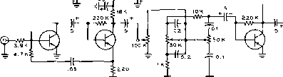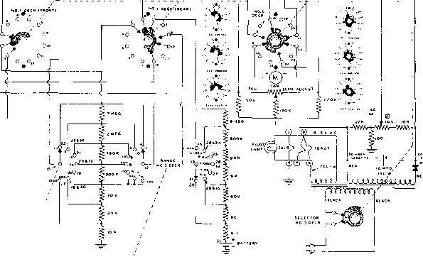 Главная » Журналы » Simple coaxial reflectometer 1 ... 10 11 12 13 14 15 16 ... 80 ![]() ZERO-ADJUST Figure 31 D-C VACUUM TUBE VOLTMETER range switch (figure 31) may precede the v.t. v.m. The voltage to be measured is applied to voltage divider, Rl, R2, R3, by means of the voltage range switch. Resistor R4 is used to protect the meter from excessive input voltage to the v.t.v.m. in the plate circuit of the tube an additional battery and a variable resistor ( zero adjustment ) are used to balance out the meter reading of the normal plate current of the tube. The zero adjustment potentiometer can be so adjusted that the meter M reads zero current with no input voltage to the v.t.v.m. When a d-c input voltage is applied to the circuit, current flows through the meter, and the meter reading is proportional to the applied d-c voltage. The Bridge-type V.T.V.M. Another important use of a d-c amplifier is to show the exact point of balance between two d-c voltages. This is done by means of a bridge circuit with two d-c amplifiers serving as two legs of the bridge (figure 32). With no input signal, and with matched triodes, no current will be read on meter M, since the IR drops across Ri and R2 are identical. When a signal is applied to one tube, the IR drops in the plate circuits become unbalanced, and meter M indicates the unbalance. In the same way, two d-c voltages may be compared if they are applied to the two input circuits. When the voltages are equal, the bridge is balanced and no current flows through the merer. If one voltage changes, the bridge becomes unbalanced and indication of this will be noted by a reading of the meter. A Modern VTVM For the purpose of analysis, the operation of a modern v.t.v.m. will be described. The Heathkit V-7A is a fit instrument for such a description, since it is able to measure positive or negative d-c potentials, a-c r-m-s values, peak-to-peak values, and resistance. The circuit of this unit is shown in figure 33. A sensitive 200 d-c D.c INPUT* О D.c INPUT Figure 32 BRIDGE-TYPE VACUUM TUBE VOLTMETER microammeter is placed in the cathode circuit of a 12AU7 twin triode. The zero adjust control sets up a balance between the two sections of the triode such that with zero input voltage applied to the first grid, the voltage drop across each portion of the zero adjust control is the same. Under this condition of balance the meter will read zero. When a voltage is applied to the first grid, the balance in the cathode circuits is upset and the meter indicates the degree of unbalance. The relationship between the applied voltage on the first grid and the meter current is linear and therefore the meter can be calibrated with a linear scale. Since the tube is limited in the amount of current it can draw, the meter movement is electronically protected. The maximum test voltage applied to the 12AU7 tube is about 3 volts. Higher applied voltages are reduced by a voltage divider which has a total resistance of about 10 megohms. An additional resistance of 1-megohm is located in the d-c test prod, thereby per-miuing measurements to be made in high impedance circuits with minimum disturbance. The rectifier portion of the v.t.v.m. is shown in figure 34. When a-c measurements are desired, a 6AL5 double diode is used as a full wave rectifier to provide a d-c voltage proportional to the applied a-c voltage. This d-c voltage is applied through the voltage divider string to the 12AU7 tube causing the meter to indicate in the manner previously described. The a-c voltage scales of the meter are calibrated in both RMS and peak-to-peak values. In the 1.5, 5, 15, 50, and 150 volt positions of the tange switch, the full a-c voltage being measured is applied to the input of the 6AL5 full wave rectifier. On the 500 and I5OO volt positions of the range switch, a divider network reduces the applied voltage in otdei to limit the voltage input to the 6AL5 to a safe recommended level. Лкнйе Switch МО.I DECK fRONT ![]() 22 MEC ггыЕО ггм£о -wv\-wwv- 22 meg З.Э MEG ![]() RANGE mo. 2 DECK 10 К \\OK OOS > 10 MEG NOTES ALL SXnCMES VIEWEP fROM ЯЕАВ RANGE SWITCH MAX.CC- SELECTOR AC POS. ALL RESISTORS IN OHMS К=ЮОО MEG = 1,000,000 ALL CAPACITORS MFD Ф SCREWDRIVER ADJUST ALL VOLTAGES MEASURED WITH VTVM OR гО.ООй ONMSVOLT ![]() 5 > > 6 > t- \ Ш S о X I- HANDBOOK Vacuum Tube Voltmeters .02 6AL5 shielded probe case A-C INPUT 150U, RMS MAX, 22 meg. to vtvm -iW-- dc input jack Figure 34 FULL-WAVE RECTIFIER FOR V.T.V.M. The a-c calibrate control (figure 33) is used to obtain the proper meter deflection for the applied a-c voltage. Vacuum tubes develop a contact potential between tube elements. Such contact potential developed in the diode would cause a slight voltage to be present at all times. This voltage is cancelled out by proper application of a bucking voltage. The amount of bucking voltage is controlled by the a-c balance control. This eliminates zero shift of the meter when switching from a-c to d-c readings. For resistance measurements, a 1,5 volt battery is connected through a string of multipliers and the external resistance to be measured, thus forming a voltage divider across the battery, and a resultant portion of the battery voltage is applied to the 12AU7 twin to vtv M Tt