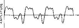 Figure 2 THE EQUAL-TEMPERED SCALE CONTAINS TWELVE INTERVALS, EACH OF WHICH IS 1.06 TIMES THE FREQUENCY OF THE NEXT LOWEST. THE HALFTONE INTERVALS INCLUDE THE ABOVE NOTES PLUS FIVE ADDITIONAL NOTES: 277.2, 311.1, 370, 415.3, 466.2 REPRESENTED BY THE BLACK KEYS OF THE PIANO. The Musical The musical scale is composed Scale of notes or sounds of various frequencies that bear a pleasing aural relationship to one another. Certain combinations of notes are harmonious to the ear if their frequencies can be expressed by the simple ratios of 1:2, 2:3, 3:4, and 4:5. Notes differing by a ratio of 1:2 are said to be separated by an octave. The frequency interval represented by an octave is divided into smaller intervals, forming the musical scales. Many types of scales have, been proposed and used, but the scale of the piano has dominated western music for the last hundred or so years- Adapted by J. S. Bach, the equal-tempered scale (figure 2) has twelve notes, each differing from the next by the ratio 1:1.06. The reference frequency, or American Standard Pitch is A, or 440-0 cycles. Harmonics and The complex sounds pro-Overtones duced by a violin or a wind instrument bear Httle resemblance to the simple sound wave of the tuning fork. A note of a clarinet, for example (when viewed on an oscilloscope) resembles figure 3. Vocal sounds are even more complex than this. In 1805 Joseph Fourier advanced his monumental theorem that made possible a mathematical analysis of all musical sounds by showing that even the most complex sounds are made up of fundamental vibrations plus harmonics, or overtones. The tonal qualities of any musical note may be expressed in terms of the amplitude and phase relationship between the overtones of the note. To produce Overtones, the sound source must be vibrating in a complex manner, such as is shown in figure 3. The resulting vibration is a combination of simple vibrations, producing a rich tone having fundamental, the octave tone, and the higher overtones. Any sound - ![]() Figure 3 THE COMPLEX SOUND OF A MUSICAL INSTRUMENT IS A COMBINATION OF SIMPLE SINE-WAVE SOUNDS, CALLED HARMONICS. THE SOUND OF LOWEST FREQUENCY IS TERMED THE FUNDA-MENTAL. THE COMPLEX VIBRATION OF A CLARINET REED PRODUCES A SOUND SUCH AS SHOWN ABOVE. no matter how complex - can be analyzed into pure tones, and can be reproduced by a group of sources of pure tones. The number and degree of the various harmonics of a tone and their phase relationship determine the quality of the tone. For reproduction of the highest quality, these overtones must be faithfully reproduced. A musical note of 523 cycles may be rich in twentieth order overtones. To reproduce the original quality of the note, the audio system must be capable of passing overtone frequencies of the order of 11,000 cycles. Notes of higher fundamental frequency demand that the audio system be capable of good reproduction up to the maximum response limit of the human ear, in the region of 15,000 cycles. Reproduction Many factors enter into the Limitotions problem of high quality audio reproduction. Most important of these factors influence the overall design of the music system. These are: 1-Restricted frequency range. 2-Nonlinear distortions. 3-Transient distortion. 4-Nonlinear frequency response. 5-Phase distortion. 6-Noise, wow , and flutter . A restricted frequency range of reproduction will tend to make the music sound tinny and unrealistic. The fundamental frequency range covered by the various musical instruments and the human voice lies between 15 cycles and 9,000 cycles. Overtones of the instruments and the voice extend the upper audible limit of the music range to 15,000 cycles or so. In order to fully reproduce the musical tones falling within this range of frequencies the music system must be capable of flawlessly reproducing all frequencies within the range without discrimination.