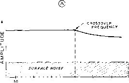 Figure 4 Nonlinear qualities such as harmonic and tntermodulation (IM) distortion are extremely objectionable and are created when the output of the music system is not exactly proportional to the input signal. Nonlinearity of any part of the system produces spurious harmonic frequencies, which in turn lead to unwanted beats and resonances. The combination of harmonic frequencies and intermodulation products produce discordant tones which are disagreeable to the ears. The degree of intermodulation may be measured by applying two tones fi and fa of known amplitude to the input of the amplifier under test. The relative amplitude of the difference tone (fj-fi) is considered a measure of the intermodulation distortion. Values of the order of 4% IM or less define a high fidelity music amplifier. Response of the music system to rapid transient changes is extremely important. Transient peaks cause overloading and shock-excitation of resonant circuits, leaving a hang-over effect that masks the clarity of the sound. A system having poor transient response will not sound natural to the ear, even though the distortion factors are acceptably low. Linear frequency response and good power handling capability over the complete audio range go hand in hand. The response should be smooth, with no humps or dips in the curve over the entire frequency range. This requirement is particularly important in the electromechanical components of the music system, such as the phonograph pickup and the loudspeaker. Phase distortion is the change of phase angle between the fundamental and harmonic frequencies of a complex tone. The output wave envelope therefore is different from the envelope of the input wave. In general, phase distortion is difficult to hear in sounds having complex waveforms and may be considered to be sufficiently low in value if the IM figure of the amplifier is acceptable. Noise and distortions introduced into the program material by the music system must be kept to a minimum as they are particularly noticeable. Record scratch, turntable rumble , and flutter can mar an otherwise high quality system. Inexpensive phonograph motors do not run at constant speed, and the slight variations in speed impart a variation in pitch {wow) to the music which can easily be heard. Vibration of the motor may be detected by the pickup arm, superimposing a low frequency rumble on the music. The various distortions that appear in a music system are summarized in figure 4, together with suggested limits within which the system may truly be termed high fidelity. 7-2 The Phonograph The modern phonograph record is a thin disc made of vinylite or shellac material. Disc rotation speeds of 78.3, 33 1/3, and 45 r.p.ra. are in use, with the older 78.3 r.p.m; speed gradually being replaced by the lower speeds. A speed of 16 2/3 r.p.m. is used for special talking book recordings. A continuous groove is cut in the record by the stylus of the recording machine, spiralling inward towards the center of the record. Amplitude variations in this groove proportional to the sound being recorded constitute the means of placing the intelligence upon the surface of the record. The old 78.3 r.p.m. recordings were cut approximately 100 grooves per inch, while the newer micro-groove recordings are cut approximately 250 grooves per inch. Care must be taken to see that the amplitude excursions of one groove do not fall into the adjoining groove. The groove excursions may be controlled by the system of recording, and by equalization of the recording equipment. Recording The early commercial phono-Techniques graph records were cut with a mechanical-acoustic system that produced a constant velocity characteristic with the amplitude of cut increasing as the recorded frequency decreased (figure 5A). When the recording technique became advanced enough to reproduce low audio frequencies, it was necessary to reduce the amplitude of the lower frequencies to prevent overcutting the record. A crossover point near 500 cycles was chosen, HANDBOOK High Fidelity Amplifier 137 ![]() IOO 200 500 1000 2 FREQUENCY (cps] CONSTANT VELOCITY RECORDINC 5000 ![]() 100 200 500 1000 FREQUENCY (cp-) 2000 5 000 CONSTANT AMPLITUDE BELOW CROSSOVER FREQUENCY, HICH FREQUENCY PRE-EMPHASIS ABOVE CROSSOVER FREQUENCY jcCROSSOVER / / FREQUENCY ![]() CONSTANT VELOCITY 50 100 200 SOO 1000 200 FREQUENCY (CPS) CONSTANT AMPLITUDE BELOW CROSSOVER FREQUENCY, CONSTANT VELOCITY ABOVE CROSSOVER FREQUENCY ![]() 50 100 200 500 1000 2( FREQUENCY (cps) RESPONSE OF RECORD OF SC PLAYED ON PROPERLY COMPENSATED EQUIPMENT о 1-5 -5 О UJ -10 > UJ-20 -25 RlAA* EQUALIZER CURVE ©1 RIAA PLAYBACK CURVE Ч 70 100 300 500 1000 3000 10000 30000 FREQUENCY. CPS and a constant amplitude groove was cut below this frequency (figure 5B). This system does not reproduce the higher audio notes, since the recording level rapidly drops into the surface noise level of the record as the cutting frequency is raised. The modern record employs pre-emphasis of the higher frequencies to boost them out of the noise level of the record (figure 5C). When such a record is played back on properly compensated equipment, the audio level will remain well above the background noise level, as shown in figure 5D. Figure 5 MODERN PHONOGRAPH RECORD EMPLOYS CONSTANT AMPLITUDE CUT BELOW CROSSOVER POINT AND HIGH FREQUENCY PRE-EMPHASIS (BOOST) ABOVE CROSSOVER FREQUENCY. The Phonograph The most popular types Pickup of pickup cartridges in use today are the high impedance crystal unit, and the low impedance variable reluctance cartridge. The crystal pickup consists of a Rochelle salt element which is warped by the action of the phonograph needle, producing an electrical impulse whose frequency and amplitude are proportional to the modulation of the record groove. One of the new transducer crystal cartridges is shown in figure 6. When working into a high impedance load, the output of a high quality crystal pickup is of the ![]() Figure 6 NEW 