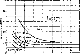 CO UJ UJ 0- < û a. î (Ë UJ ol Ø 2 < < J PLATE VOLTS Figure 7 AVERAGE PLATE CHARACTERISTICS OF 813 TUBE fier than when operated as a Class Ñ amplifier. Cqlculotion of Calculation of the operating Operating conditions for this type of Characteristics Class  r-f amplifier can be carried out in a manner similar to that described in the previous paragraphs, except that the grid bias voltage is set on the tube before calculation at the value: Ecc = Ebb/jLt- Since the grid bias is set at cutoff the one-half angle of plate current flow is 90°; hence cos is fixed at 0.00. The plate circuit efficiency for a Class  r-f amplifier operated in this manner can be determined in the following manner: Np-78.5 (-) The Class  The second type of Class  Lineor r-f amplifier is the so-called Class  linear amplifier which is often used in transmitters for the amplification of a single-sideband signal or a conventional amplitude-modulated wave. Calculation of operating conditions may be carried out in a manner similar to that previously described with the following exceptions: The first trial operating point is chosen on the basis of the 100 per cent positive modulation peak of the modulated exciting wave. The piate circuit and grid peak voltages and currents can then be determined and the power input and ouôut calculated. Then, with the exciting voltage reduced to one-half for the no-modulation condition of the exciting wave, and with the same value of load resistance reflected on the tube, the plate input and plate efficiency will drop to approximately one-half the values at the 100 per cent positive modulation peak and the power îèôè! of the stage will drop to one-fourth the peak-modulation value. On the negative modulation peak the input, efficiency, and ouôut all drop to zero. In general, the proper plate voltage, bias voltage, load resistance and power output listed in the tube tables for Class  audio work will also apply to Class  linear r-f application. Calculation of Operating Parameters (or a Class  Linear Amplifier Figure 7 illustrates the characteristic curves for an 813 tube. Assume the plate supply to be 2000 volts, and the screen supply to be 400 volts. To determine the operating parameters of this tube as a Class  linear r-f amplifier, the following steps should be taken: 1. The grid bias is chosen so that the resting plate current will produce approximately 1/3 of the maximum plate dissipation of the tube. The maximum dissipation of the 813 is 125 watts, so the bias is set to allow one-third of this value, or 42 watts of resting dissipation. At a plate potential of 2000 volts, a HANDBOOK Linear Amplifier Parameters 159 plate current of 21 milliamperes will produce this figure. Referring to figure 7, a grid bias of -45 volts is approximately correct. 2. A practical Class  linear r-f amplifier runs at an efficiency of about 66% at full output, the efficiency dropping to about 33% with an unmodulated exciting signal. In the case of single-sideband suppressed carrier excitation, a no-excitation condition is substituted for the unmodulated excitation case, and the linear amplifier runs at the resting or quiescent input of 42 watts with no exciting signal. The peak allowable power input to the 813 is: Input Peak Power (Wp) = (watt,s) Plate Dissipation X 100 (100 - % plate efficiency) 125 - X 100 = 379 watts 3. The maximum signal plate current is: pmax Ep 2000 -=0.189 ampere 4. The plate current flow of the linear amplifier is 1809, and the plate current pulses have a peak of 3-14 times the maximum signal current: 3-14 X 0.189 = 0.595 ampere 5. Referring to figure 7, a current of 0.605 ampere (Point A) will flow at a positive grid potential of 60 volts and a minimum plate potential of 420 volts. The grid is biased at 45 volts, so a peak r-f grid voltage of 60 + 45 volts = 105 volts is required. ![]() IOO 200 300 PLATE VOLTS Ep Figure 8 Egi VS. Ep CHARACTERISTICS OF 813 TUBE 8. The plate load resistance is: Ep - epmin 1580 Rl -= -= 0.5ipmax 0.5 X -189 = 6000 ohms 9. If a loaded plate tank circuit Q of 12 is desired, the reactance of the plate tank capacitor at the resonant frequency should be: Rl 6000 Reactance (ohms) = ---= 500 ohms Q 12 10. For an operating frequency of 4.0 Mc, the effective resonant capacity is: Ñ = 6.28 X 4.0 X 500 = 80 ififd. 6. The grid driving power required for the Class  linear stage maybe found by the aid of figure 8. It is one-quarter the product of the peak grid current times the peak grid voltage: 0.02 X 105 - 0.53 watt 11. The inductance required to resonate at 4.0 Mc. with this value of capacity is: 6.28 X 4.0 = 19.9 microhenries 7. The single tone power output of the 813 stage is: Pp = 78.5 {Ep - epmin) X Ip Pp-78.5 (2000 - 420)x .189 = 235 watts Grid Circuit 1. The maximum positive grid Considerations potential is 60 volts, and the peak r-f grid voltage is 105 volts. Required driving power is 0.53 watt. The equivalent grid resistance of this stage is: (eg) 2 X P, 2 X 0.53 10,400 ohms 2. As in the case of the Class  audio amplifier the grid resistance of the linear ampUfier varies from infinity to a low value when maximum grid current is drawn. To decrease the effect of this resistance excursion, a swamping resistor should be placed across the grid tank circuit. The value of the resistor should be dropped until a shortage of driving power begins to be noticed. For this example, a resistor of 3,000 ohms is used. The grid circuit load for no grid current is now 3,000 ohms instead of infinity, and drops to 2 400 ohms when maximum grid current is drawn. 3. A circuit Q of 15 is chosen for the grid tank. The capacitive reactance required is: 2400 Xc--- l60 ohms 4. At 4.0 Mc. the effective capachy is: 10 6.28 X 4 X 154 = 248 fd. 5. The inductive reactance required fo resonate the grid circuit at 4.0 Mc. is: = 6.4 microhenries 6.28x4.0 6. By substituting the loaded grid resistance figure in the formula in the first paragraph, the grid driving power is no