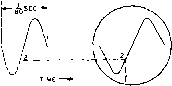 У INTERCEPT = .S- Y MAXIMUM- I У INTERCEPT= 7 ![]() V MAXIMUM-1 ![]() ![]() Y MAXIMUM- i y. ![]() =1 YMAXIMUM Y INTERCEPT.5 ![]() r INTERCEPT =.7 Figure 16 EXAMPLES SHOWING THE USE OF THE FORMULA FOR DETERMINATION OF PHASE DIFFERENCE projection method. Figure 15 shows two sine waves which differ in phase being projected on to the screen of the cathode-ray tube. These signals represent a phase difference of 45°. It is extremely important: (1) that the spot has been centered on the screen of the cathode-ray tube, (2) that both the horizontal and vertical amplifiers have been adjusted to give exactly the same gain, and (3) that the calibrated scale be originally set to coincide with the displacement of the signal along the vertical axis. If the amplifiers of the oscilloscope are not used for conveying the signal to the deflection plates of the cathode-ray tube, the coarse frequency switch should be set to hori-zontal input direct and the vertical input switch to direct and the outputs of the two signals must be adjusted to result in exactly the same vertical deflection as horizontal deflection. Once this deflection has been set by either the oscillator output controls or the amplifier gain controls in the oscillograph, it should not be changed for the duration of the measurement. Determination of the Phase Angle The relation commonly used in determining the phase angle between signals is: Sine в : Y intercept Y maximum Figure 17 TRAPEZOIDAL MODULATION PATTERN Figure 18 MODULATED CARRIER WAVE PATTERN 2A SA ![]() Figure 19 PROJECTION DRAWING SHOWING TRAPE-ZOIDAL PATTERN HANDBOOK Trapezoidal Pattern 179 MODULATED CARRIER ![]() RF. POWER AMPLIFIER ![]() Figure 20 PROJECTION DRAWING SHOWING MODULATED CARRfER WAVE PATTERN where = phase angle between signals Y intercept = point where ellipse crosses ver- tical axis measured in tenths of inches. (Calibrations on the calibrated screen) Y maximum = highest vertical point on ellipse in tenths of inches Several examples of the use of the formula are given in figure 16. In each case the Y intercept and Y maximum are indicated together with the sine of the angle and the angle itself. For the operator to observe these various patterns with a single signal source such as the test signal, there are many types of phase shifters which can be used. Circuits can be obtained from a number of radio text books. The procedure is to connect the original signal to the horizontal channel of the oscilloscope and the signal which has passed through the phase shifter to the vertical channel of the oscilloscope, and follow the procedure set forth in this discussion to observe the various phase shift patterns. 9-4 Monitoring Transmitter Performance with the Oscilloscope The oscilloscope may be used as an aid for the proper operation of a radiotelephone transmitter, and may be used as an indicator of the overall performance of the transmitter output signal, and as a modulation monitor. Waveforms There are two types of patterns that can serve as indicators, the trapezoidal pattern (figure 17) and the modu- MODULATOR STAGE TO ANTENNA , EACH 1M, 1W -((--W-VW-<W-M- SOOUUF 10000 V. -TV CAPACITOR ![]() LC TUNES TO OP- , ERATING FREOueNCyJ, ![]() NOTE /f я. f. pickup is insufficient, Л tuned circuit мау- be used at The oscilloscope as shown. Figure 21 MONITORING CIRCUIT FOR TRAPEZOIDAL MODULATION PATTERN lated wave pattern (figure 18). The trapezoidal pattern is presented on the screen by impressing a modulated carrier wave signal on the vertical deflection plates and the signal that modulates the carrier wave signal (the modulating signal) on the horizontal deflection plates. The trapezoidal pattern can be analyzed by the method used previously in analyzing waveforms. Figure 19 shows how the signals cause the electron beam to trace out the pattern. The modulated wave pattern is accomplished by presenting a modulated carrier wave on the vertical deflection plates and by using the time-base generator for horizontal deflection. The modulated wave pattern also can be used for analyzing waveforms. Figure 20 shows how the two signals cause the electron beam to trace out the pattern. The Trapezoidal Pattern The oscilloscope connections for obtaining a trapezoidal pattern are shown in figure 21. A portion of the audio output of the transmitter modulator is applied to the horizontal input of the oscilloscope. The vertical amplifier of the oscilloscope is disconnected, and a small amount of modulated r-f energy is coupled directly to the vertical deflection plates of the oscilloscope. A small pickup loop, loosely coupled to the final amplifier tank circuit and connected to the vertical de- ![]() E MAX ![]() ![]() TRAPEZOIDAL WAVE PATTERN Figure 22 Figure 23 (LESS THAN 100% MODULATION) (100% MODULATION) Figure 24 (OVER MODULATION) flection plates by a short length of coaxial line will suffice. The amount of excitation to the plates of the oscilloscope may be adjusted to provide a pattern of convenient size. Upon modulation of the transmitter, the trapezoidal pattern will appear. By changing the degree of modulation of the carrier wave the shape of the pattern will change. Figures 22 and 23 show the trapezoidal pattern for various degrees of modulation. The percentage of modulation may be determined by the following formula: Modulation percentage + E, X 100 where £ ,3 and Ej are defined as in figure 22. An overmodulated signal is shown in figure The Moduioted Wave Pattern The oscilloscope connections for obtaining a modulated wave pattern are shown in R F. POWER AMPLIFIER TO ANTENNA USE INTERNAL SWEEP. .0,. at FROM MODULATOR LC TUNES TO OPERATING FREOUENCY Figure 25 MONITORING CIRCUIT FOR MODULATED WAVE PATTERN figure 25. The internal sweep circuit of the oscilloscope is applied to the horizontal plates, and the modulated r-f signal is applied to the vertical plates, as described before. If desired, the internal sweep circuit may be sny-chronized with the modulating signal of the t