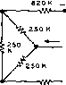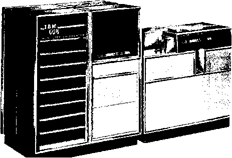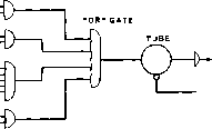 Figure 21 ANALOG COMPUTER FOR FREELY FALLING BODY PROBLEM. velocity. That, in turn, will become y, or distance, at the output of the second amplifier. Before the problem can be solved on the computer it is necessary to determine the time of solution desirable and the output amplitude of the solution. The time of solution is determined by the RC constant of the integrating amplifiers. If RC is set at unity, computer time is equal to real time. The computer time desirable is determined by the method of readout. When using an oscilloscope for read-out, a short solution time is desirable. For a recorder, longer solution time is better. Suppose, for example, in the problem of the falling body, the distance of fall in 2.5 seconds is desired. Using an RC constant of 1 would give a solution time of 2.5 seconds. This would be acceptable for a recorder but is slow for an oscilloscope. A convenient time of solution for the scope would be 25 milliseconds. This is 1/100 of the real time, so an RC constant of .01 is needed. This can be obtained with С equal to 0.1 jnfd, and R equal to 100,000 ohms. It is now necessary to choose an input voltage which will not overdrive the amplifiers. The value of g is known to be approximately 32 ft/sec./sec. A check indicates that if we set g equal to 32 volts, the voltage representing the answer will exceed 100 volts. Since the linear response of the amplifier is only 100 volts, this is undesirable. An input of 16 volts, however, should permit satisfactory operation of the amplifiers. Output voltages near zero should also be avoided. In general, output voltage should be about 50 volts or so, with amplifier gains of 20 to 60 being preferable-Thus, for this particular problem the time-scale factor and amplitude-scale factor have ![]() + 100 V.o Figure 22 ANALOG SOLUTION FOR FALLING BODY PROBLEM OF FIGURE 21. TIME IN SECONDS -► i г (£.5) 3 ![]() Figure 23 READ-OUT SOLUTION OF FREELY FALLING BODY PROBLEM. been chosen. The problem now looks like figure 22. To solve the problem, relays A and A are opened. The solution should now appear on the oscilloscope as shown in figure 23- The solution of the problem leaves the integrating capacitors charged. It is necessary to remove this charge before the problem can be rerun. This is done by closing relays A and A. ![]() g, о-- o-eo too в -100 v.o-ЛЛ/ Figure 24 UMITING CIRCUIT TO SIMULATE NON-LINEAR FUNCTIONS SUCH AS ENCOUNTERED IN HYSTERESIS, BACKLASH, AND FRICTION PROBLEMS. 11-6 Non-linear Functions Problems are frequently encountered in which non-linear functions must be simulated. Non-linear potentiometers may be used to supply an unusual voltage source, or diodes may be used as limiters in those problems in which a function is defined differently for different regions of the independent variable. Such a function might be defined as follows: eo = - Ki, е> - К. (19) eo = ei, -К ei К. (20) ео = К2,е. К. (21) where Ki and Кг are constants. Various limiting circuits can be used, one of which is shown in figure 24. This is a series limiter circuit which is simple and does not require special components. Commonly encountered problems requiring these or similar limiting techniques include hysteresis, backlash, and certain types of friction. INITIAL CONDITION SUPPLV ![]() 1 MEG RAMP-FUNCTION GENERATOR SLOPE CONTROL ![]() INPUT NOTE: e£PLAC£ С WITH A I MEG RESISTOe FOR FUNCTION SETUP -OX - OUTPUT BREAK CONTROL VOLTAGE 1 MEG SIGN CHANGING AMPLIFIER -O Y-OUTPUT SUMMING AMPLIFIER Figure 25 SIMPLIFIED DIAGRAM OF FUNCTIONAL GENERATOR TO APPROXIMATE NON-LINEAR FUNCTIONS. HANDBOOK Non-Linear Functions 203 Г Xl Хг ХЭ X4 X5 Xe+X- Figure 26 TYPICAL NON-LINEAR FUNCTION WHICH MAY BE SET UP WITH FUNCTION GENERATOR. The Function A function generator may be Generator used to approximate almost any non-linear function. This is done by use of straight line segments which are combined to approximate curves such as are found in trigonometric functions as well as in stepped functions. In a typical generator ten line segments are used, five in the plus-x direction, and five in the minus-x direction. Five 6AL5 double diodes are used. Each hne segment is generated by a modified bridge circuit (figure 25). A ramp function or voltage is fed into one arm of the bridge while the opposite arm Is connected to a biased diode. The other two arms of the bridge combine to form the output. The voltage appearing across one of these arms is fed through a sign-changing amplifier and then summed with the voltage appearing at the opposite arm. If the arm of potentiometer P (the slope control) is set in the center, the bridge will be balanced and -AND GATES ![]() POSITIVE О . NEGATIVE Figure 27 ELECTRONIC PACKAGE IN DIGITAL COMPUTER. Sty/ized diagram of tube pacfcage. Lines carrying negative pulses are marked by a small circle at eac/i end. Gates are indicated by a semi-circle with pins for each input. the output of the summing amplifier will be zero. If, on the other hand, potentiometer P is adjusted one way or the other from center, the bridge will be unbalanced and the summing amplifier output will vary linearly with respect to the input in either a positive or negative у direction, depending upon which side of center potentiometer P Is set. The break voltage, or value of x at which a straight line segment will begin is set by biasing the diode to the particular voltage level or value of x desired. The ramp function generator has either a positive or negative input which because of the 180 degree phase shift in the amplifier, gives a minus- or plus-x output respectively. A typical function such as shown in figure 26 may be set up with the function generator. The initial condition volt- IBtAs new 608, the first completely transistorized calculator for commercial applications, operates without the use of a single vacuum tube. Transistors-tiny germanium devices thot perform many of the functions of conventional vacuum tubes -make possible 50% r
