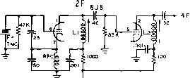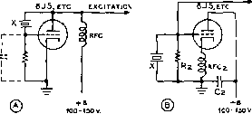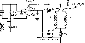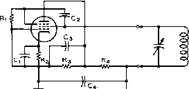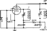 Главная » Журналы » Simple coaxial reflectometer 1 ... 21 22 23 24 25 26 27 ... 80 HANDBOOK Oscillators ence between the various circuits is the manner in which energy for excitation is coupled from the plate to the grid circuit. When plate voltage is applied to the Hartley oscillator shown at (A), the sudden flow of plate current accompanying the application of plate voltage will cause an electro-magnetic field to be set up in the vicinity of the coil. The building-up of this field will cause a potential dr6p to appear from turn-to-turn along the coil. Due to the inductive coupling between the portion of the coil in which the plate current is flowing and the grid portion, a potential will be induced in the grid portion. Since the cathode tap is between the grid and plate ends of the coil, the induced grid voltage acts in such a manner as to increase further the plate current to the tube. This action will continue for a short period of time determined by the inductance and capacitance of the tuned circuit, until the flywheel effect of the tuned circuit causes this action to come to a maximum and then to reverse itself. The plate current then decreases, the magnetic field around the coil also decreasing, until a minimum is reached, when the action starts again in the original direction and at a greater amplitude than before. The amplitude of these oscillations, the frequency of which is determined by the coil-capacitor circuit, will increase in a very short period of time to a limit determined by the plate voltage of the oscillator tube. The Cotpitts Figure 1 (B) shows a version of the Colpitts oscillator. It can be seen that this is essentially the same circuit as the Hartley except that the ratio of a pair of capacitances in series determines the effective cathode tap, instead of actually using a tap on the tank coil. Also, the net capacitance of these two capacitors comprises the tank capacitance of the tuned circuit. This oscillator circuit is somewhat less susceptible to parasitic (spurious) oscillations than the Hartley. For best operation of the Hartley and Colpitts oscillators, the voltage from grid to cathode, determined by the tap on the coil or the setting of the two capacitors, normally should be from 1/3 to 1/5 that appearing between plate and cathode. The T.P.T.G. The tuned-plate tuned-grid oscillator illustrated at (C) has a tank circuit in both the plate and grid circuits. The feedback of energy from the plate to the grid circuits is accomplished by the plate-to-grid inter-electrode capacitance within the tube. The necessary phase reversal in feedback voltage is provided by tuning the grid tank capacitor to the low side of the de- sired frequency and the plate capacitor to the high side. A broadly resonant coil may be substituted for the grid tank to form the T.N.T. oscillator shown at (D). Electron-Coupted In any of the oscillator cir-Oscillators cuits just described it is possible to take energy from the oscillator circuit by coupling an external load to the tank circuit. Since the tank circuit determines the frequency of oscillation of the tube, any variations in the conditions of the external circuit will be coupled back into the frequency determining portion of the oscillator. These variations will result in frequency instability. The frequency determining portion of an oscillator may be coupled to the load circuit only by an electron stream, as illustrated in (E) and (F) of figure 1. When it is considered that the screen of the tube acts as the plate to the oscillator circuit, the plate merely acting as a coupler to the load, then the similarity between the cathode-grid-screen circuit of these oscillators and the cathode-grid-plate circuits of the corresponding prototype can be seen. The electron-coupled oscillator has good stability with respect to load and voltage variation. Load variations have a relatively small effect on the frequency, since the only coupling between the oscillating circuit and the load is through the electron stream flowing through the other elements to the plate. The plate is electrostatically shielded from the oscillating portion by the bypassed screen. The stability of the e.c.o. with respect to variations in supply voltages is explained as follows: The frequency will shift in one direction with an increase in screen voltage, while an increase in plate voltage will cause it to shift in the other direction. By a proper proportioning of the resistors that comprise the voltage divider supplying screen voltage, it is possible to make the frequency of the oscillator substantially independent of supply voltage variations. The Clapp A relatively new type of oscillator Oscillator circuit which is capable of giving excellent frequency stability is illustrated in figure IG. Comparison between the more standard circuits of figure lA through IF and the Clapp oscillator circuits of figures IG and IH will immediately show one marked difference: the tuned circuit which controls the operating frequency in the Clapp oscillator is series resonant, while in all the more standard oscillator circuits the frequency controlling circuit is parallel resonant. Also, the capacitors C, and Cj are relatively large in terms of the usual values for a Colpitts oscil- lator. In fact, the value of capacitors Cj and Cj will be in the vicinity of 0.001 /rfd. to 0.0025 fitd. for an oscillator which is to be operated in the 1.8-Mc. band. The Clapp oscillator operates in the following manner: at the resonant frequency of the oscillator tuned circuit (L, C) the impedance of this circuit is at minimum (since it operates in series resonance) and maximum current flows through it. Note however, that Cj and Cj also are included within the current path for the series resonant circuit, so that at the frequency of resonance an appreciable voltage drop appears across these capacitors. The voltage drop appearing across Cj is applied to the grid of the oscillator tube as exci