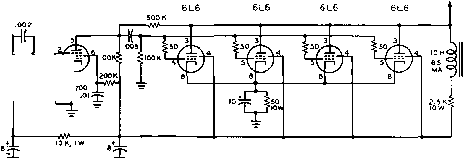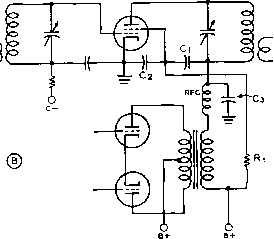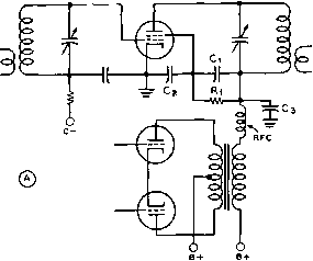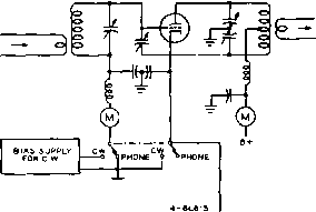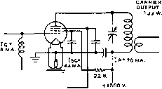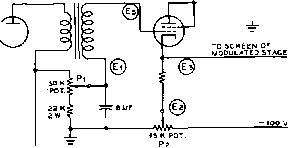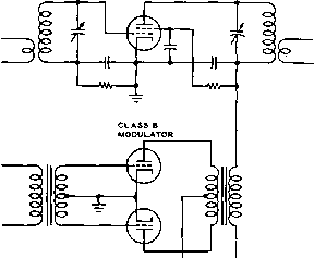 Главная » Журналы » Simple coaxial reflectometer 1 ... 26 27 28 29 30 31 32 ... 80 HANDBOOK Modulation Systems propriate values such that the voltage applied to the plate of the cathode follower is appropriate for the tube to be modulated. It is important that a bypass capacitor be used from the plate of the cathode-follower modulator to ground. The voltage applied to the plate of the cathode follower should be about IOO volts greater than the rated screen voltage for rhe tetrode tube as a c-w Class С amplifier. Hence the cathode-follower plate voltage should be about 350 volts for an 815, 2E26, or 829B, about 400 volts for an 807 or 4-125A, about 500 volts for an 813, and about 600 volts for a 4-250A or a 4E27. Then potentiometer Pi in figure 5 should be adjusred until the carrier-level screen voltage on the modulated stage is about one-half the rated screen voltage specified for the tube as a Class С c-w amplifier. The current taken by the screen of the modulated tube under carrier conditions will be about one-fourth the normal screen current for c-w operation. The only current taken by the cathode follower itself will be that which will flow through the 100,000-ohm resistor between the cathode of the 6L6 modulator and the negative supply. The current taken from the bleeder on the high-voltage supply will be the carrier-level screen current of the tube being modulated (which current passes of course through the cathode follower) plus that current which will pass through the 100,000-ohm resistor. The loading of the modulated stage should be adjusted until the input to the tube is about 50 per cent greater than the rated plate dissipation of the tube or tubes in the stage. If the carrier-level screen voltage value is correct for linear modulation of the stage, the loading will have to be somewhat greater than that amount of loading which gives maximum output from the stage. The stage may then be modulated by applying an audio signal to the grid of the cathode-follower modulator, while observing the modulated envelope on an oscilloscope. if good output is being obtained, and the modulation envelope appears as shown in figure 4C, all is well, except that Pj in figure 5 should be adjusted until negative modulation peaks, even with excessive modulating signal, do not cause carrier cutoff with its attendant sideband splatter. If the envelope appears as at figure 4D, antenna coupling should be increased while the carrier level is backed down by potentiometer Pi in figure 5 until a set of adjustments is obtained which will give a satisfactory modulation envelope as shown in figure 4C. Changing Bonds After a satisfactory set of adjustments has been obtained. 3: 1 6J5, ETC. STEPUP + TO eOQ V. ![]() Figure 5 CATHODE-FOLLOWER SCREEN-MODULATION CIRCUIT A detailed discussion of this circuit, which also is represented in figure 4C, is given in the accompanying text. it is not difficult to readjust the amplifier for operation on different bands. Potentiometers Pi (carrier level), and P2 (negative peak level) may be left fixed after a satisfactory adjustment, with the aid of the scope, has once been found. Then when changing bands it is only necessary to adjust excitation until the correct value of grid current is obtained, and then to adjust antenna coupling until correct plate current is obtained. Note that the correct plate current for an efficiency-modulated amplifier is only slightly less than the out-of-resonance plate current of the stage. Hence carrier-level screen voltage must be low so that the out-of-resonance plate current will not be too high, and relatively heavy antenna coupling must be used so that the operating plate current will be near the out-of-resonance value, and so that the operating input will be slightly greater than 1.5 times the rated plate dissipation of the tube or tubes in the stage-Since the carrier efficiency of the stage will be only 35 to 40 per cent, the tubes will be operating with plate dissipation of approximately the rated value without modulation. Speech Clipping in The maximum r-f output the Modulated Stage of an efficiency-modulated stage is limited by the maximum possible plate voltage swing on positive modulation peaks. In the modula-lation circuit of figure 5 the minimum ouфut is limited by the minimum voltage which the screen will reach on a negative modulation peak, as set by potentiometer Pj. Hence the screen-grid-modulated stage, when using the modulator of figure 5, acts effectively as a speech clipper, provided the modulating signal amplitude is not too much more than that value which will accomplish full modulation. With correct adjustments of the operating conditions of the stage it can be made to clip positive and negative modulation peaks symmetrically. However, the inherent peak clipping ability of the stage should not be relied upon as a means of obtaining a large amount of speech compression, since excessive audio distortion and excessive screen current on the modulated stage will result. Characteristics of a An important character-Typical Screen- istic of the screen-modu-Modulated Stage lated Stage, when using the cathode-follower modulator, is that excessive plate voltage on the modulated stage is not required. In fact, full output usually may be obtained with the larger tubes at an operating plate voltage from one-half to two-thirds the maximum rated plate voltage for c-w operation. This desirable condition is the natural result of using a low-impedance source of modulating signal for the stage. As an example of a typical screen-modulated stage, full output of 75 watts of carrier may be obtained from an 813 tube operating with a plate potential of only 1250 volts. No increase in output from the 813 may be obtained by increasing the plate voltage, since the tube may be operated with full rated plate dissipation of 125 watts, with normal plate efficiency for a screen-modulated stage, 37.5 per cent, at the 1250-volt potential.
