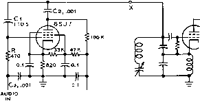 Frequency Modulation and Radioteletype Transmission Exciter systems for FM and single sideband transmission are basically similar in that modification of the signal in accordance with the intelligence to be transmitted is normally accomplished at a relatively low level. Then the intelligence-bearing signal is amplified to the desired power level for ultimate transmission. True, amplifiers for the two types of signals are basically different; linear amplifiers of the Class, A or Class В type being used for ssb signals, while Class С or non-linear Class В amplifiers may be used for FM amplification. But the principle of low-level generation and subsequent amplification is standard for both types of transmission. 16-1 Frequency Modulafion The use of frequency modulation and the allied system of phase modulation has become of increasing importance in recent years. For amateur communication frequency and phase modulation offer important advantages in the reduction of broadcast and TV interference and in the elimination of the costly high-level modulation equipment most commonly employed with amplitude modulation. For broadcast work FM offers an improvement in signal-to-noise ratio for the high field intensities available in the local-coverage area of FM and TV broadcast stations. In this chapter various points of difference between FM and amplitude modulation transmission and reception will be discussed and the advantages of FM for certain types of communication pointed out. Since the distinguishing features of the two types of transmission lie entirely in the modulating circuits at the transmitter and in the detector and limiter circuits in the receiver, these parts of the communication system will receive the major portion of attention. Modulation Modulation is the process of altering a radio wave in accordance with the intelligence to be transmitted. The nature of the intelligence is of little importance as far as the process of modulation is concerned; it is the method by which this intelligence is made to give a distinguishing characteristic to the radio wave which will enable the receiver to convert it back into intelligence that determines the type of modulation being used. Figure 1 is a drawing of an r-f carrier amplitude modulated by a sine-wave audio voltage. After modulation the resultant modulated r-f wave is seen still to vary about the zero axis at a constant rate, but the strength of the individual r-f cycles is proportional to the amplitude of the modulation voltage. In figure 2, the carrier of figure 1 is shown frequency modulated by the same modulating voltage. Here it may be seen that modulation voltage of one polarity causes the carrier frequency to decrease, as shown by the fact that the individual r-f cycles of the carrier are spaced farther art. A modulating voltage of the opposite polarity causes the frequency to Frequency Modulation 313 ![]() UN MODU LATED C AR WERA MPLITUpE ![]() ![]() AM AND FM WAVES Figure 1 shows a sketch of the scope patterrt of an anplitude modulated wove at the bottom. The center sketch shows the modulatirtg wove and the upper sketch shows the carrier wave. Figure 2 shows at the bottom a sketch of a frequency modulated wave. In this cose the center sketch also shows the modulatirig wave ond the upper sketch shows the carrier wave. Note that the carrier wove and the modulatirtg wave are the same in either case, but that the waveform of the modulated wave is quite different in the two coses. increase, and tliis is shown by the r-f cycles being squeezed together to allow more of them to be completed in a given time interval. Figures 1 and 2 reveal two very important characteristics about amplitude- and frequency-modulated waves. First, it is seen that while the amplitude (power) of the signal is varied in AM transmission, no such variation takes place in FM. In many cases this advantage of FM is probably of equal or greater importance than the widely publicized noise reduction capabilities of the system. When 100 per cent amplitude modulation is obtained, the average power output of the transmitter must be increased by 50 per cent. This additional output must be supplied either by the modulator itself, in the high-level system, or by operating one or more of the transmitter stages at such a low output level that they are capable of producing the additional output without distortion, in the low-level system. On the other hand, a frequency-modulated transmitter requires an insignificant amount of power from the modulator and needs no provision for increased power output on modulation peaks. All of the stages between the oscillator and the antenna may be operated as high-efficiency Class В or Class С amplifiers or frequency multipliers. SIDE FREQUENCY CARRIER SIDE FREOUENCY FREQUENCY Figure 3 AM SIDE FREQUENCIES For each AM modulating frequency, a pair of side frequencies is produced. The side frequencies are spaced away from the carrier by an amount equal to the modulation frequency, and their amplitude Is directly proportional ta the anplitude of the modulation. The amplitude of the carrier does not chonge under modulation. Carrier-Wave The second characteristic of FM Distortion and AM waves revealed by figures 1 and 2 is that both types of modulation result in distortion of the r-f carrier. That is, after modulation, the r-f cycles are no longer sine waves, as they would be if no frequencies other than the fundamental carrier frequency were present. It may be shown in the amplitude modulation case illustrated, that there are only two additional frequencies present, and these are the familiar side frequencies, one located on each side of the carrier, and each spaced from the carrier by a frequency interval equal to the modulation frequency. In regard to frequency and amplitude, the situation is as shown in figure 3. The strength of the carrier itself does not vary during modulation, but the strength of the side frequencies depends upon the per