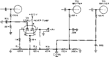 Главная » Журналы » Simple coaxial reflectometer 1 ... 37 38 39 40 41 42 43 ... 80 ![]() KEY IS DEPRESSED DURING THIS TIME I l-i-TRANSMITTER IS ON THE AlH DURING THIS TIME. ![]() 170 к -250 v. - J KE 6AL5 BLOCKING DIODES TO CATHODE CIRCUIT OF KEYED STAGE ![]() TUBE KEYER Figure 18 BLOCKING DIODES EMPLOYED TO VARY TIME CONSTANT OF MAKE AND-BREAK CHARACTERISTICS OF VACUUM TUBE KEYER Figure 17 TIME SEQUENCE OF A DIFFERENTIAL KEYER on a moment before the rest of the stages are energized, and remains on a moment longer than the other stages. The chirp or frequency shift associated with abrupt switching of the oscillator is thus removed from the emitted signal. In addition, the differential keyet can apply wave shaping to the amplifier section of the transmitter, eliminating the click caused by rapid keying of the latter stages. The ideal keying system would perform as illustrated in figure 17. When the key is closed, the oscillator reaches maximum output almost instantaneously. The following stages reach maximum output in a fashion determined by the waveshaping circuits of the keyer. When the key is released, the output of the amplifier stages starts to decay in a predetermined manner, followed shortly thereafter by cessation of the oscillator. The overall tesult of these actions is to provide relatively soft make and break to the keyed signal, meanwhile preventing oscillator frequency shift during the keying sequence. The rates of charge and decay in a typical R-C keying circuit may be varied independently of each other by the blocking diode system of figure 18. Each diode permits the charging current of the timing capacitor to flow through only one of the two variable potentiometets, thus permitting independent adjustment of the make and break characteristics of the keying system, A practical differential keying system de- veloped by WIICP (Feb., 1956 QST) is shown in figure 19. A 6AL5 switch tube turns the oscillator on before the keying action starts, and holds it on until after the keying sequence is completed. Time constant of the keying cycle is determined by values of С and R. When the key is open, a cut-off bias of about -110 volts is applied to the screen grid circuits of the keyed stages. When the key is closed, the screen grid voltage rises to the normal value at a rate determined by the time constant R-C. Upon opening the key again, the screen voltage returns to cut-off value at the predetermined rate. The potentiometer Rl serves as an output control, varying the minimum internal resistance of the 12BH7 keyer tube, and is a useful device to limit power input during tune-up periods. Excitation to the final amplifier stage may be controlled by the screen potentiometer R3 in the second buffer stage. An external bias source of approximately -120 volts at 10 milliamperes is required for operation of the keyer, in addition to the 300-volt screen supply. Blocking voltage may be removed from the oscillator for zeroing purposes by closing switch SI, rendering the diode switch inoperative. A second popular keying system is shown in figure 20, and is widely used in many Johnson transmitters. Grid block keying is used on tubes V2 and V3. A waveshaping filter consisting of R2, R3, and Cl is used in the keying control circuit of V2 and V3. To avoid chirp when the oscillator (Vi) is keyed, the keyer tube V4 allows the oscillator to start quickly--before V2 and V3 start OSCILLATOR BUFFER 1 BUFFER г ZERO BEAT i 6AL5 7 10 к 50 К ZW 12BH7 25K -120V. OUTPUT CONTROL % 100 к 1.41 Figure 19 DIFFERENTIAL KEYING SYSTEM WITH OSCILLATOR SWITCHING DIODE OSCILLATOR ![]() VFO HOLD -50 V Figure 20 DIFFERENTIAL KEYER EMPLOYED IN JOHNSON TRANSMITTERS conducting-and ten continue operating until atter V2 and V3 have stopped conducting. Potentiometer Rl adjusts the hold time for VFO operation after the key is opened. This may be adjusted to cut off the VFO between marks of keyed characters, thus allowing rapid break-in operation. Radiation, Propagation and Transmission Lines Radio waves are electromagnetic waves similar in nature but much lower in frequency than light waves or heat waves. Such waves represent electric energy traveling through space. Radio waves travel in free space with the velocity of light and can be reflected and refracted much the same as light waves. Radiation from an Antenna Alternating current passing through a conductor creates an alrernating electromagnetic field around that conductor. Energy is alternately stored in the field, and then returned to the conductor. As the frequency is raised, more and more of the energy does not return to the conductor, but instead is radiated off into space in the form of electromagnetic waves, called radio waves. Radiation from a wire, or wires, is materially increased whenever there is a sudden change in the electrical constants of the line. These sudden changes produce reflection, which places standing waves on the line- When a wire in space is fed radio frequency energy having a wavelength of approximately 2.1 times the length of the wire in meters, the wire resonates as a half-wave dipole antenna at that wavelength or frequency. The greatest possible change in the electrical constants of a line is that which occurs at the open end of a wire. Therefore, a dipole has a great mismatch at each end, producing a high degree of reflection. We say that the ends of a dipole are terminated in an infinite impedance. A returning wave which has been reflected meets the next incident wave, and the voltage and current at any point along the antenna are the vector sum of the two waves. At the ends of the dipole, the voltages add, while the currents of the two waves cancel, thus producing high voltage and low current at the ends of the dipole or half wave section of wire. In the same manner, it is found that the currents add while the voltages cancel at the center of the dipole. Thus, at the center there is high current but low voltage. Inspection