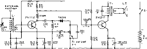 Главная » Журналы » Simple coaxial reflectometer 1 ... 50 51 52 53 54 55 56 ... 80 experimenters instinct, even in tiiose individuals owning expensive commercial receivers-These lucky persons have the advantage of comparing their home-built product against the best the commercial market has to offer. Some- times such a comparison is surprising. When the builder has finished the wiring of a receiver it is suggested that he check his wiring and connections carefully for possible errors before any voltages are applied to the STANDARD COLOR CODE-RES I STOP S AND CAPACITORS AXIAL LEAD RESISTOR BROWN-INSULATED BLACK- NON-INSULA TED -TOLERANCE -multiplier 1st4 2nd significant figs. WIRE-WOUND RESISTORS HAVE 1st DIBIT BAND DOUBLE WIDTH. insulated uni nsulated COLOR black brown red orange yellow green blue violet gray white first r i ng body color FIRST FieuRE 0 1 2 3 4 s e 7 Ъ 9 second ring end color SECOND FieuRE third ring dot color MULTIPLIER none 0 00 ,000 o.ooo 00,000 000,000 0,000,000 00,000,000 000,000,000 DISC CERAMIC RMA 5-dot capacity multiplier -tolerance temperature coefficient ![]() ![]() RADIAL LEAD DOT RESISTOR 5-DOTRADIAL LEAD CERAMICCARCITOR EXTENDED RANGE TC CERAMIC HICAP -multiplier tolerance 1st f 2nd figure ST FIGURE temp. coeff. capacity 1лк tolerance i-multiplier t-capacity TEMP. COEFF, tolerance i-multiplier -tc multipli er RADIAL LEAD (band) RESISTOR BY-PASS COUPLING CERAMIC CARACITDR AXIAL LEAD CERAMIC CAPACITOR MULTIPLIER tolerance L-1st fi .iND figure TEMP. COEFF. -voltage (opt) iiiiiliili CAPACITY 1-tolerance -multiplier multiplier-i tolerance MOLDED MICA TYPE CAPACITORS CURRENT STANDARD CODE ISTl 2ND J significant figure white (.RMA)-X Ф 1 JAN I BLACKt./A)-- @© frSuLTIPLIER Sof * * tolerance RMA 3-DOT Cobsolete) RATED SOO V.D.C. ±г09Ь TOL. multiplier significant fig. BUTTON SILVER M ICA CAPACITOR tolerance multiplier ![]() 1st digit 2nd digit 3rd digit r-ist-l ,-2NDJ RMA 5-DOT CODE (obsolete) SIG. FIGURE MULTIPLI ER FRONT *rWORK. VOLT. \jEAR tolerance work. volt.X tolerance work volt. multiplier nd sig. fig. ultiplier tolerance RMA 6-DOT (obsolete) 1st 2nd t sig. figure 3rd J RMA 4-DOT (obsolete) work.voltage multiplier tolerance -working voltage -multiplier blank £ND\ .st I sig. figure MOLDED PAPER TYPE CAPACITORS TUBULAR CAPACITOR NORMALLY STAMPED FOR VALUE istI r2ND/ significant figure -multiplier tolerance-i LaNDl L-ISTJ- sig.voltage fig. A г-DISIT VOLTAGE RATING INDICATES MORE THAN 900 V. ADD i ZEROS TO END OF Z DIGIT NUMBER. MOLDED FLAT CAPACITOR COMMERCIAL CODE orking volts r-workin( BLACK HIA TgpMULT Lnd ! signi 1-1st J FIGU -multiplier ificant re JAN CODE CAPACITOR silver I 1ST significant fig. @-j-multiplier tolerance characteristic Figure 2 STANDARD COLOR CODE FOR RESISTORS AND CAPACITORS The standard color code provides the necessary information required to properly identify color coded resistors and capacitors. Refer to the color code for numerical values and the number of zeros (or multiplier) assigned to the colors used. A fourth colo. band on resistors determines the tolerance rating as follows: GoM = S%, si(ver=IO%. Absence of the fourth band indicates a 20% tolerance rating. Tolerance rating of capacitors is determined by the color code. For example: Red = 2%, green = 5%, etc. The voltage rating of capacitors is obtained by multiplying the color value by 100. For example- Oronge = 3 X 100, or 300 volts. FIGURE 3 COMPONENT COLOR CODING POWER TRANSFORMERS PRIMARY LEADS-BLACK IF TAfPEO: COMMON- TAP- END - HIGH VOLTACE WINDING С ENTER-TAP-- -BLACK - BLACK/fELLOW BLACKУ REO - REP -PEDyyELLOW RECTIFIER FILAMENT WINDING-YELLOW CENTER-TAP-yELLOWy-BLUE FILAMENT WINDING N 1 -CENTER-TAP- FILAMENT WINDING N*2-CENTER-TAP- FILAMENT WINDING N 3-CENTER-TAP -ePEEN -6REENyyELL0 -BPOWN - BPOWNyyELLOW -SLATE SLATE/yELLOW l-F TRANSFORMERS PLATE LEAD-B+ LEAD- GRID (opoiode) LEAD - A-V-C (.op sround) LEAD- -BLUE -PED -ePEEN -BLACK AUDIO TRANSFORMERS PLATE LEAD (PPI.)-BLUE OP BPOWN B1- LEAD ( PPI. )-RED GRID LEAD (C. )- GRID RETURN {sec. ) GREEN OP YELLOW BLACK circuits. If possible, the wiring should be checked by a second party as a safety measure. Some tubes can be permanently damaged by having the wrong voltages applied to their electrodes. Electrolytic capacitors can be ruined by hooking them up with the wrong voltage polarity across the capacitor terminals. Transformer, choke and coil windings may be ![]() Figure 4 TWO TRANSISTOR BROADCAST RECEIVER IS EXCELLENT BEGINNERS PROJECT This simple receiver works trom a single 9-volt battery, providing many hours of pleasant listening. Two transistors and a diode in a reflex circuit provide ample loudspeaker volume. Tuning control is at left, with audio control beneath it. Midget speaker is at right. Receiver is housed in plastic case. damaged by incorrect wiring of the high-voltage leads. The problem of meeting and overcoming such obstacles is just part of the game. A true radio amateur (as opposed to an amateur broadcaster) should have adequate knowledge of the art of communication. He should know quite a bit about his equipment (even if purchased) and, if circumstances permit, he should build a portion of his own equipment. Those amateurs that do such construction work are convinced that half of the enjoyment of the hobby may be obtained from the satisfaction 1 - ei ![]() Figure 5 SCHEMATIC OF TRANSISTOR BROADCAST RECEIVER в-9-vo;t transistor battery. RCA YS-300 Ci-365 lififd. Lafayette Radio Co. MS-214, or Allied Radio Co. 6IH-009 Li-Transistor Loopsiick coil. Lafayette Radio Co. MS-66 L5-3 loudspeaker, 12ohm voice coil. Lafayette Radio Co. SK-39 Ti-500 ohm pri., 12 ohm sec. Transistor transformer. Thordarson TR-18 HANDBOOK Circuitry 533 of building and operating their own receiving and transmitting equipment. The Transceiver A popular item of equipment on five meters during the late thirties, the transceiver is making a comeback today complete with modern tubes and circuitry. In brief, the 