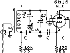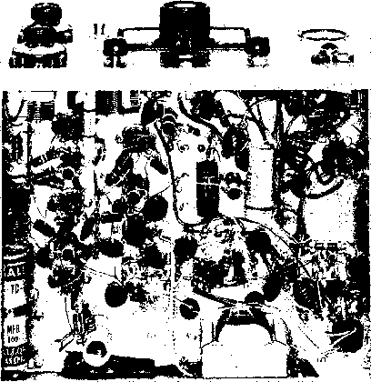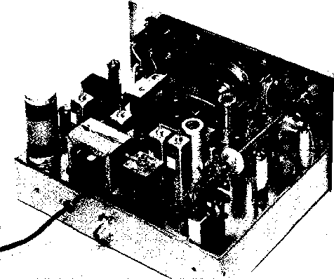 is inserted in a wall socket incorrectly nothing will happen. The transceiver simply refuses to function, and no dangerous situation is created. Simply reversing the plug will energize the circuit, with no danger to the operator. The dual power lead connection, therefore, is a simple and foolproof system of protection and permits the use of the inexpensive and light weight selenium supply. The only other practical alternative is to employ a power transformer which will add excessive weight and bulk to the package. Because this hazard exists with any radio equipment of the so-called ac-dc type, many of the newer buildings are being wired with polarized power receptacles having a separate grounding pin. The use of this new wiring technique will help to reduce the inherent shock potential of the practical and efficient half-wave rectifier systems, of which this is an example. Transceiver Layout and Assembly The component placement may be seen in figures 39 and 40. The 28-10 transceiver is built upon an aluminum chassis measuring 11 x 8У2 x 2 in size, and fits within a steel wrap-around type cabinet 5?4 high. The cabinet is formed of perforated metal to ensure proper ventilation. Radiation of harmonics from the assembly is reduced to a minimum with this type of enclosure. Layout of the major components above the chassis may be seen in figure 39- The receiver Figure 39 REAR VIEW OF TRANSCEIVER CHASSIS Tuning capacitor of variable frequency oscillator is in foreground of photo, panel driven by an extension sftaft. To the left of the copaertor is the adiustable slug core of the oscillator coll. Along rear edge of the chassis are the selenium rectifiers, the filament transformer and the high voltage filter capacitor. Transmitter tubes are at right of chassis, with am-pPifier tube next to рапЫ. At tar right is voltage regulator tube. Audio section is at upper left with 9006 diode rectifier in front ot the input audio transformer. I-f amplifier is at center chassis, parallel to front panel. ![]() section of tlie unit occupies the center section of the chassis with the power supply directly behind it. To the right is the transmitter section with the variable frequency oscillator at the rear. Panel control of the oscillator is accomplished by an extension shaft and a flexible coupling. At the left of the chassis is the audio system. Placement of the main tuning dial is dictated by the height of the three-gang tuning capacitor shaft above the chassis deck. In this case, it is necessary to cut a small notch in the soft aluminum chassis to permit the dial drive assembly to drop low enough to permit the dial shaft to align with the capacitor tuning shaft. No interstage shields are required below the chassis. Filter choke CHI mounts at the rear of the chassis, directly below filament transformer T?. The 100 fififd. filter capacitor mounts to the left wall of the chassis below and to the left of v-f-o tuning capacitor Сг. The three slug-tuned coils of the receiver may be seen in the photograph. Coil Li is located behind change-over switch Si. Coil Ls is towards the middle of the chassis, and adjacent to the 10 fiid. audio decoupling capacitor. Coil La is to the left of L2 and between the r-f tube and mixer tube sockets. The transmitter oscillator coil h is placed at the left rear corner of the chassis. The adjustable slug of this coil is visible in figure 39 between the selenium rectifiers and tuning capacitor C2. To facilitate wiring, four phenolic tie-point terminal strips (six lug type) are placed beneath the chassis. One is located parallel to the edge, just to the left of the 6AQ5 buffer tube socket. A second is placed parallel to the first, to the right of the same socket. The latter strip is used for connections to the r-f circuitry of the receiver section. The third strip is placed parallel to the rear of the chassis just in front of the i-f strip and is used for i-f connections. The last strip is located between the 6AL5 tube socket and the main fiher capacitor. The noise limiter and a-v-c components are mounted to this strip. To secure maximum srability it is necessary to firmly mount the oscillator tuning capacity to the chassis. An aluminum block measuring lYs X 1 was therefore cut from a section of Vl-inch aluminum stock and used as a support block for capacitor C2. The capacitor is bolted to the chassis by long 6-32 machine screws which pass through the block and are firmly bolted beneath the chassis. ![]() Figure 40 UNDER-CHASSIS VIEW OF TEN METER TRANSCEIVER The transmitier cam-ponenii are alortg the left side of the chassis. Receiver componertts are at the center, with r-f stage nearest the panel. Filter ehoJke f* mounted below chassis at rear. Audio stage components are grouped in upper right corner of chassis. See text for placement of the smaller components. 3-WIRE HOUSEHOLD WIRING Cl RCUIT HOT LEAD OF TRANSCEIVER POWER SUPPLY GROUND LEAD OF TRANSCEIVER POWER SUPPLY Figure 41 GROUNDED NEUTRAL WIRING SYSTEM Most dwellings have a three-wire grounded neutral system. 715 vo/ts a-c can be obtained from either side of the system to ground. Separate ground lead on transceiver is always connected before line plug Is energted. This eliminates usual ac-dc shock hazard. Transceiver The sequence of wiring follows Wiring much the same pattern as that of the six meter transceiver described in section 27-6. Small components are installed between tube socket pins, or between socket pins and adjacent terminal strip lugs. Socket ground connections are made first and then the filament wiring is completed. The power supply wiring can be done first. When the supply is completed it should be tested. A 2500 ohm, 25-watt resistor should be attached between the output of the supply and ground. A full 250 volts should be developed across this resistor with 115 volts a-c applied to the power supply. Next, the i-f and second detector section of the receiver should be wired. Short, direct leads and the use 