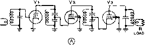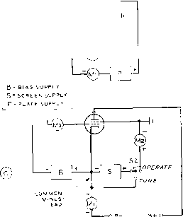 ![]() Figure 29 GROUNDED SCREEN GRID CONFIGURATION PROVIDES HIGH ORDER OF ISOLATION IN TETRODE AMPLIFIER STAGE A-Typical amplifier circuit has cathode return at ground potential. All circuits return to cathode. В-All circuits return to cathode, but ground point has been shifted to screen terminal of tube. Operation of the circuit remains the same, as potential differences between e/ements of the tube are the same as in circuit A. С-Practical grounded screen circuit. Common minus lead returns to negative of plate supply, which cannot be grounded. Switch Si removes screen voltage for tune-up purposes. solution to this problem is to eliminate the screen bypass capacitors by actually grounding the screen terminals of rhe amplifier to the chassis by means of a low inductance strap. It is possible to do this by juggling the ground return of the amplifier, as shown in figure 29. Circuit A shows the conventional d.c. return paths wherein all power supplies are returned to the grounded cathode of the stage. Meters are placed in the common return leads, and each meter reads only the current flowing in the singular circuit. The d.c. ground lead is removed from the cathode in circuit В and placed at the screen terminal of the tube, Circuit operation is still the same, as all power supply returns are still made to the cathode of the tube. The only change is that the screen r.f. ground and d.c. ground are now one and the same. The cathode circuit is now at a negative potential with respect to the chassis ground by an amount equal to the screen voltage. In addition, the return of the high voltage plate supply is now negative with respect to ground by an amount equal to the screen voltage supply. A practical version of this circuit is shown in figure 29C. The grid bias and screen supplies are incorporated in the amplifier and separate terminals are provided for tbe positive and negative leads of the high voltage supply. A tune-operate switch is added to the circuit which removes the screen potential for tune-up purposes. The negative of the high voltage supply floats below ground at the value of the screen voltage. This circuit is unique in that it requires a mental orientation of the user to accept the fact that d.c. ground is no longer ground. However, the circuit is no more complex than the usual grounded cathode d.c. return circuit, and the advantage of having the screen at r.f. ground potential far outweighs the unusual aspects of the circuit. Operation of the circuit is normal in all respects, and it may be applied to any form of tetrode amplifier with good results. The Amplifier The circuit of an operation-Circuit al cathode driven, grounded screen amplifier is shown in figure 30. A 4-250A or 4-400A tetrode tube is used with an untuned cathode circuit and a pi-network plate circuit. Bias and screen supplies are included in the amplifier. The important operating parameters are also showm in the diagram. P.e.p. excitation is 12 watts (including losses) for 3000 volt operation and about 22 watts (including losses) for 3500 vok operation. The resonant plate circuit is capacitively coupled to the amplifier tube and consists of a 300 /x/ifd. variable vacuum capacitor, a kilowatt tapped-coil turret, and a 1500 fd. variable air-type loading capacitor. D.c, ground is established by returning the output section of the network to ground by means of choke RFC-3. Three .001 /xfd., 5 KV ceramic capacitors in parallel form the plate blocking capacitor. The high voltage is applied to the tube via a Raypar heavy duty r.f. choke in series with two air wound VHF choke coils. Escape 1 ... 59 60 61 62 63 64 65 ... 80 |