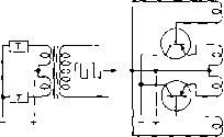 CONTROL BOX £3- SWIRE . HI-VOLTAGE i В IAS CABLE 4 WIRE HEATER i RELAY CABLE ![]() LOW VOLTAGE INPUT PLUG J2 1 2 3 4 3 6 7 8 J3 FROM H.V. SUPPLY 12 3 4 S3 g La Sa -±r S3 - ON-OFF - .0 2 С HI-LO у лг с TRANSMIT 12 3 4 JSTO RECEIVER 6 VOLT POWER CABLE 3 4 5 6 7 12 3 4 J4 TO TRANSMITTER 12 VOLT POWER CABLE 2 3 4 5 TnRV TO HEATERS, TOKYS e VOLTS FROM Pi {FIG го) (FIG 20) TO HEATERS, 12 VOLTS FROM Pi (FIG. го) (FIG.IO) TO ry3 COI L Figure 23 CONTROL WIRING A-Block diagram ot suggested power and corttrol cables and switching system for mobile power supply, В-Schematic diagram of suggested control box including power plugs for changing heaters for 6 or 72 voJt operation. Si is tronsmit-receive switch, Si is high-low switch, and Ss is main power switch for RY,. С-6 and 72 volt power cables. jumped to pin 9- The cable is attached to Ji on the supply and to a six volt power source. Approximately half the rated voltage should be measured at the output terminal strip if the supply has been properly wired. Replace the original connections on the power plug and test the supply with full input voltage. A 2500 ohm, 100 watt resistor, or four 25 watt 115 volt lamp bulbs in series make a good load resistance. The output voltages should measure close to 450, 300, and 240 volts under load. Additional .02 jxfd. bypass capacitors at RYa, the output terminal strip, and the control box should eliminate Figure 24 CABLE HARNESS, MAIN POWER RELAY, RYs, AND REAR OF POWER CONTROL BOX ffigh voltage for the receiver, plus the control switch circuits for RYi and RYt, are brought into the control box from the power supply through is. High voltage leads for the transmitter are run directly from the supply, but the transmitter heater power and transmit-receive control circuit is run to the transmitter through control box circuit Ji, (figure 23A). any hash still present during reception. Every experienced mobileer will agree that noise in each mobile installation usually must be eliminated on a search and filter basis. Installation This power supply may be op-in the Car erated in conjunction with the suggested configuration shown in figure 2 ЗА. Note that a separate cable is recommended for the heater power circuit to reduce vibrator hash pickup, and to minimize heater voltage variations when the supply is switched from receive to transmit. Provision has been made for changing the mobile receiver and transmitter power circuits for either six or twelve volt operation as shown in the schematic of the control box in figure 23B. An eight contact plug and socket automatically make the proper connections when the six or twelve volt plug is attached. 32-6 Transistorized Power Supplies The vibrator type of mobile supply achieves an overall efficiency in the neighborhood of 70%. The vibrator may be thought of as a mechanical switch reversing the polarity of the primary source at a repetition rate of 120 transfers per second. The switch is actuated by a magnetic coil and breaker circuit requiring appreciable power which must be supplied by the primary source. One of the principal applications of the transistor is in switching circuits. The transistor may be switched from an off condition to an on condition with but the ap- ![]() ![]() ![]() ® Figure 25 TRANSISTORS CAN REPLACE VIBRATOR IN MOBILE POWER SUPPLY SYSTEM A-Typical vibrator circuit. В-Vibrator can be represented by two single-pole single throw switches, or transistors. С-Push-pull square wave oscillator is driven by special feedback windings on power transformer. D-Addition of bias in base-emitter circuit results in oscillator capable of starting under full load. - plication of a minute exciting signal. УЪen the transistor is nonconductive it may be considered to be an open circuit. When it is in a conductive state, the internal resistance is very low. Two transistors properly connected, therefore, can replace the single pole, double throw mechanical switch representing the vibrator. The transistor switching action is many times faster than that of the mechanical vibrator and the transistor can switch an appreciable amount of power. Efficiencies in the neighborhood of 95% can be obtained with 28 volt primary-type transistor power supplies, permitting great savings in primary power over conventional vibrators and dynamotors. Transistor The transistor operation resembles Operation a magnetically coupled multi-vibrator, or an audio frequency push-pull square wave oscillator (figure 25C). A special feedback winding on the power trans- ш > 35--- P 30-- о 10 - < 0---m RiSE Time = 10i/s JJS time Figure 26 BASE-COLLECTOR WAVEFORM OF SWITCHING CIRCUIT, FOR 12 VOLT CIRCUIT Square waveshape produces almost ideal switching action. Small spike on leading edge of pulses may be reduced by proper transformer design. former provides 180 degree phase shift voltage necessary to maintain oscillation. In this application the transistors are operated as on-off switches; i.e., they are either completing the circuit or opening it. The oscillator output voltage is a square wave having a frequency that is dependent upon the driving voltage, the primary inductance of the power transformer, and upon the peak collector current drawn by the conducting transistor Changes in transformer turns, core area, core material, and feedback turns ratio have an effect on the frequency of oscillation. Frequencies in common use are in the range of 120 c.p.s. to 3,500 c.p.s. The power consumed by the transistors is relatively independent of load. Loading the oscillator causes an increase in input current that is sufficient to supply the required power to the load and the additional losses in the transformer windings. Thus, the overall efficiency actually increases with load and is greatest at the heaviest load the oscillator will supply. A result of this is that an increase in load produces very little extra heating of the transistors. This feature means that it is impossible to burn out the tra