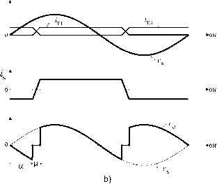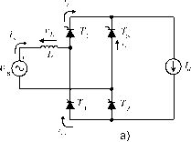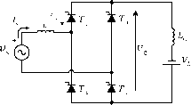 Главная » Журналы » Metal oxide semiconductor 1 ... 15 16 17 18 19 20 21 ... 91 distortion of the current produces an increase in the value of in Eq. (11.16), which deteriorates the power factor. 11.1.6 The Commutation of the Thyristors Until now the current commutation between thyristors has been considered to be instantaneous. This consideration is not vahd in real cases due to the presence of the line inductance L, as shown in Fig. 11.9a. During commutation, the current through the thyristors cannot change instantaneously, and for this reason, during the commutation angle ju, all four thyristors are conducting simultaneously. Therefore, during the commutation the following relationship for the load voltage holds: = 0 ot < cot < ot -\- fi (11.17) The effect of the commutation on the supply current, voltage waveforms, and the thyristor current waveforms is observed in Fig. 11.9b. ![]() During commutation the following expression holds: L = i; =y sincot а<М<а-\-1л (11.18) at Integrating Eq. (11.18) over the commutation interval yields h у ] max dts=-r--h sin cotdt (11.19) (X/(D From Eq. (11.19), the following relationship for the commutation angle jii is obtained: cos(a + ) = cos a - -(11.20) Equation (11.20) shows that an increase of the line inductance L or an increase of the load current increases the commutation angle /Л. In addition, the commutation angle is affected by the firing angle a. In effect, Eq. (11.18) shows that with different values of a, the supply voltage has a different instantaneous value, which produces different diJdt, thereby affecting the duration of the commutation. Equation (11.17) and the waveform of Fig. 11.9b show that the commutation process reduces the average load voltage V. When commutation is considered, the expression for the average load voltage is given by У Vjnax sin (Dtd{(Dt) = [cos(a + ) + COS a] (11.21) Substituting Eq. (11.20) into Eq. (11.21) yields ![]() FIGURE 11.9 forms. The commutation process: (a) circuit; and (b) wave- у da =-maxCOSa--1 71 71 (11.22) II.1.7 Operation in the Inverting Mode When the angle a > 90°, it is possible to obtain a negative average load voltage. In this condition, the power is fed back to the single-phase supply from the load. This operating mode is called inverter or inverting mode, because the energy is transferred from the dc to the ac side. In practical cases this operating mode is obtained when the load configuration is as shown in Fig. 11.10a. It must be noticed that this rectifier allows unidirectional load current flow. Figure 11.10b shows the waveform of the load voltage with the rectifier in the inverting mode, neglecting the source inductance L. Section 11.1.6 described how supply inductance increases the conduction interval of the thyristors by the angle ju. As ![]() ![]() ![]() ![]() ![]() ![]() FIGURE 11.10 Rectifier in the inverting mode: (a) circuit; (b) waveforms neglecting source inductance L; and (c) waveforms considering L. shown in Fig. 11.10c, the thyristor voltage Vji has a negative value during the extinction angle 7, defined by у = 180 - (a+ ) (11.23) To ensure that the outgoing thyristor wiU recover its blocking capability after commutation, the extinction angle should satisfy the following restriction: У > cot. (11.24) where со is the supply frequency and t is the thyristor turn-off time. Considering Eqs. (11.23) and (11.24) the maximum firing angle is, in practice. = 180--7 (11.25) If the condition of Eq. (11.25) is not satisfied, the commutation process will fail and then destructive currents will occur. Grid Load FIGURE 11.11 Application of a rectifier in single-phase UPS. 11.1.8 Applications Important application areas of controUed rectifiers include uninterruptible power supplies (UPS) for feeding critical loads. Figure 11.11 shows a simplified diagram of a single-phase UPS configuration, typically rated for < lOkVA. A fully controUed or half-controUed rectifier is used to generate the dc voltage for the inverter. In addition, the input rectifier acts as a battery charger. The output of the inverter is filtered before it is fed to the load. The most important operational modes of the UPS are: i) Normal mode. In this case the hne voltage is present. The critical load is fed through the rectifier-inverter scheme. The rectifier keeps the battery charged. Outage mode. During a loss of the ac main supply, the battery provides the energy for the inverter. Bypass operation. When the load demands an over-current to the inverter, the static bypass switch is turned on and the critical load is fed directly from the mains. ii) iii) The control of low-power dc motors is another interesting application of controUed single-phase rectifiers. In the circuit of Fig. 11.12, the controlled rectifier regulates the armature voltage and consequently controls the motor current in order to establish a required torque. This configuration aUows only positive current flow in the load. However, the load voltage can be both positive and negative. For this reason, this converter works in the two-quadrant mode of operation in the plane vs V. ![]() a) b) FIGURE 11.12 Two quadrant dc drive: (a) circuit; and (b) quadrants of operation. ![]() FIGURE 11.13 Single-phase dual-converter drive: (a) connection; and (b) four-quadrant operation. As shown in Fig. 11.13, a better performance can be obtained with two rectifiers in back-to-back connection at the dc terminals. This arrangement, known as a dual converter one, allows four-quadrant operation of the drive. Rectifier I provides positive load current ij, while rectifier II provides negative load current. The motor can work in forward powering, forward braking (regenerating), reverse powering, and reverse braking (regenerating). These operating modes are shown in Fig. 11.13b, where the torque T vs the rotor speed CDp is illustrated. 11.2 Unity Power Factor Single-Phase Rectifiers 11.2.1 The Problem of Power Factor in Single-Phase Line-Commutat