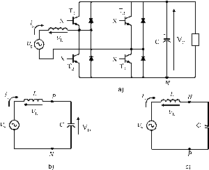 through the transistor. The current of the inductance ii is given by the foUowing equation dtLVL dt L (11.26) rectifier. This standard has been the motivation for the development of active methods to improve the quality of the input current and, consequently, the power factor. 11.2.3 The Single-Phase Boost Rectifier From both the theoretical and conceptual points of view, one of the most important high-power factor rectifiers is the so-called single-phase boost rectifier, shown in Fig. 11.16a. This rectifier is obtained from a classical noncontroUed bridge rectifier, with the addition of transistor T, diode D, and inductor L In this rectifier, the input current i(t) is controUed by changing the conduction state of transistor T. When transistor T is in the ON state, the single-phase power supply is short-circuited through the inductance L, as shown in Fig. 11.16b; the diode D avoids the discharge of the filter capacitor С Due to the fact that > 0, the ON state of transistor T always produces an increase in the inductance current ii and.