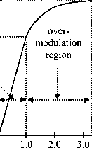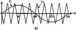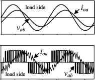 1 3 5 7 9 11 13 15 17 19 21 23 25 27 29 31 FIGURE 14.3 The half-bridge VSL Ideal waveforms for the SPWM (m = 0.8, nif = 9): (a) carrier and modulating signals; (b) switch S+ state; (c) Switch S state; (d) ac output voltage; (e) ac output voltage spectrum; (f) ac output current; (g) dc current; (h) dc current spectrum; (i) switch current; (j) diode current. will be discussed later); (b) for odd values of the normalized carrier frequency the harmonics in the ac output voltage appear at normalized frequencies fr centered around and its multiples, specifically. h = lmf±k /=1,2,3,... (14.4) where /с = 2, 4, 6, ... for / = 1, 3, 5, ...; and /с = 1, 3, 5, ... for / = 2, 4, 6, ...; (с) the amplitude of the ac output voltage harmonics is a function of the modulation index and is independent of the normalized carrier frequency for nij: > 9; (d) the harmonics in the dc link current (due to the modulation) appear at normahzed frequencies fp centered around the normahzed carrier frequency and its multiples, specifically. p = lmf±k±l /=1,2,... (14.5) where /с = 2, 4, 6, ... for / = 1, 3, 5, ...; and /с = 1, 3, 5, ... for / = 2, 4, 6, Additional important issues are: (a) for smaU values of m (nif < 21) the carrier signal and the modulating signal should be synchronized to each other {mjr integer), which is required to hold the previous features; if this is not the case, subharmonics wiU be present in the ac output voltage; (b) for large values of (m > 21), the subharmonics are negligible if an asynchronous PWM linear regionN ![]() square wave ГПп FIGURE 14.4 Fundamental ac component of the output voltage in a half-bridge VSI SPWM modulated. technique is used, however, due to potential very low-order subharmonics, its use should be avoided; finally (c) in the overmodulation region (m > 1) some intersections between the carrier and the modulating signal are missed, which leads to the generation of low-order harmonics but a higher fundamental ac output voltage is obtained; unfortunately, the linearity between and achieved in the linear region Eq. (14.3) does not hold in the overmodulation region, moreover, a saturation effect can be observed (Fig. 14.4). The PWM technique aUows an ac output voltage to be generated that tracks a given modulating signal. A special case is the SPWM technique (the modulating signal is a sinusoidal) that provides in the linear region an ac output voltage that varies linearly as a function of the modulation index and the harmonics are at weU-defined frequencies and amplitudes. These features simplif) the design of filtering components. Unfortunately, the maximum amplitude of the fundamental ac voltage is vJ2 in this operating mode. Fiigher voltages are obtained by using the overmodulation region (m > 1); however, low-order harmonics appear in the ac output voltage. Very large values of the modulation index (m > 3.24) lead to a totally square ac output voltage that is considered as the square-wave modulating technique that is discussed in the next section. 14.2.1.2 Square-Wave Modulating Technique Both switches and S are on for one-half cycle of the ac output period. This is equivalent to the SPWM technique with an infinite modulation index m. Figure 14.5 shows the foUowing: (a) the normahzed ac output voltage harmonics are at frequencies /г = 3,5,7,9,..., and for a given dc link voltage; (b) the fundamental ac output voltage features an amplitude given by 4 V, and the harmonics feature an amplitude given by (14.6) (14.7) It can be seen that the ac output voltage cannot be changed by the inverter. Fiowever, it could be changed by controUing the dc link voltage v. Other modulating techniques that are applicable to half-bridge configurations (e.g., selective harmonic elimination) are reviewed here as they can easily be extended to modulate other topologies. 14.2.1.3 Selective Harmonic Elimination The main objective is to obtain a sinusoidal ac output voltage waveform where the fundamental component can be adjusted arbitrarily within a range and the intrinsic harmonics selectively eliminated. This is achieved by mathematically generating the exact instant of the turn-on and turn-off of the power valves. The ac output voltage features odd half- and quarter-wave symmetry; therefore, even harmonics are not present (vj = 0, h = 2, 4, 6, ...). Moreover, the per-phase voltage waveform (v = v in Fig. 14.2), should be chopped N times per half-cycle in order to adjust the fundamental and eliminate N - I harmonics in the ac output voltage waveform. For instance, to eliminate the third and fifth harmonics and to perform fundamental magnitude control (iV = 3), the equations to be solved are the foUowing: cos(lai) - cos(la2) + cos(la3) = (2 + nvi/Vi)/4: cos(3ai) - cos(3a2) + cos(3a3) = 1/2 cos(5ai) - cos(5a2) + cos(5a3) = 1/2 (14.8) where the angles a, and ot are defined as shown in Fig. 14.6a. The angles are found by means of iterative algorithms as no analytical solutions can be derived. The angles a, a2, and -Vi/2 ,3(0 I И M M M t t t t t t 1 3 5 7 9 11 13 15 17 19 21 23 25 27 29 31 a) b) FIGURE 14.5 The half-bridge VSI. Ideal waveforms for the square-wave modulating technique: (a) ac output voltage; (b) ac output voltage spectrum. Й Vo сц аво 4-v,/2 ![]() 1 3 5 7 9 11 i3 15 i7 i9 21 23 25 27 29 31 0.8. 1 3 5 7 9 11 13 15 17 19 21 23 25 27 29 31 FIGURE 14.6 The half-bridge VSL Ideal waveforms for the SHE technique: (a) ac output voltage for third and fifth harmonic elimination; (b) spectrum of (a); (c) ac output voltage for third, fifth, and seventh harmonic elimination; (d) spectrum of (c). аз are plotted for different values of vJv in Fig. 14.7a. The fundamental magnitude control (N - I = 3), the equations general expressions to eliminate an even N - I to be solved are: (N-1=2,4,6,...) number of harmonics are k=l 4 / 1 - E(-l) cos(najt) = - for П = 3, 5, .. k=i 2 ., 2iV - 1 (14.9) cos(lai) - cos(la2) + cos(la3) - cos(la4) = (2 - nvi/vi)/4 cos(3ai) - cos(3a2) + cos(3a3