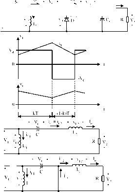 Ц кТ (l-k)T 1 (0) v, Jl Co X R 0 2 (d) 1li ![]() 17.2.4 Seven (7) Self-Lift DC/DC Converters switch-off periods are shown in Fig. 17.1 lc,d. Its output voltage and current are: on and switch-off periods are shown in Fig. 17.12c,d. Its output voltage and current (absolute value) are: Vo=YVj and Io = (l-k)Ij The voltage transfer gain in the continuous mode is Vn It 1 Vo = YVj and Io = (l-k)Ij The voltage-transfer gain in the continuous mode is Vj I о l-k The variation ratio of the output voltage Vq in the continuous mode is Vj I о l-k The variation ratio of the output voltage VqIU the continuous mode is Avo/2 к I 8 = Vo SMsPCoL Avo/2 к The reverse P/O Luo self-lift converter is shown in Fig. 17.12a. Typical output voltage and current waveforms are shown in Fig. 17.12b. The equivalent circuits during switch- The simplified P/O Luo self-lift converter is shown in Fig. 17.13a. Typical output voltage and current waveforms are (a) Vl