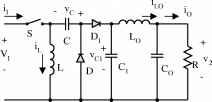 17.2.1 Fundamental Topologies The buck converter is a step-down converter and is shown in Fig. 17.1a. The typical output voltage and current waveforms are shown in Fig. 17.1b. The equivalent circuits during switch-on and switch-off periods are shown in Fig. 17.1c and d. Its output voltage and output current are: Vq = kVj and This converter may work in the discontinuous mode if the frequency/is smaU, conduction duty к is smaU, inductance L is smaU and the load current is high. The boost converter is a step-up converter and is shown in Fig. 17.2a. The typical output voltage and current waveforms are shown in Fig. 17.2b. The equivalent circuits during switch-on and switch-off periods are shown in Fig. 17.2c,d. Its output voltage and current are: and /0 = (1 - Щ The output voltage is higher than the input voltage. This converter may work in the discontinuous mode if the frequency / is smaU, conduction duty к is smaU, inductance L is smaU, and the load current is high. с r П v, FIGURE 17.1 Buck Converter: (a) circuit diagram; (b) waveforms of inductor voltage and current; (c) switch-on equivalent circuit; and (d) switch-off equivalent circuit. Rashid, M.H. Power Electronics: Circuits, Devices and Applications, Ije, © 1993, pp. 318, 321, 324, 327, 479. Adapted by permission of Pearson Education, Inc., Upper Saddle River, New Jersey. The buck-boost converter is a step-down/step-up converter, which is shown in Fig. 17.3a. The typical output voltage and current waveforms are shown in Fig. 17.3b. The equivalent circuits during switch-on and switch-off periods are shown in Fig. 17.3c,d. Its output voltage and current are: Vo=y, and Io = Ii When к is greater than 0.5, the output voltage can be higher than the input voltage. This converter may work in the discontinuous mode if the frequency / is small, conduction duty к is smaU, inductance L is smaU, and the load current is high. с R P V i, S Ф с R П V (V,) ![]()
