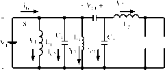 (d) S: OFF; Dq: ON (d) S: OFF; В^: ON FIGURE 17.31 Simplified double output Luo self-lift converter: (a) circuit diagram; (b) waveforms of inductor voltage and current; (c) switch-on equivalent circuit; and (d) switch-off equivalent circuit. switch-off periods are shown in Fig. 17.32c,d. Its output voltages and currents (absolute values) are: Vo+ = \VoJ=yj Vr Io+=- F. L. Luo, H. Ye and M. H. Rashid The vohage-transfer gain in the continuous mode is Vo+ \Vo-\ 3 Mr = V, Vi l-k The vohage-transfer gain in the continuous mode is The variation ratio of the output voltage Vqj in the continuous mode is Avo+/2 к I The variation ratio of the output voltage Vq in the continuous mode is The variation ratio of the output voltage Vqj in the continuous mode is At;o+/2 к I e = Avo-/2 к I 128/3CnQoIi2ii The variation ratio of the output voltage Vq in the continuous mode is This converter may work in the discontinuous mode if the frequency/is smaU, conduction duty к is small, inductance L is smaU, and the load current is high. The condition for the discontinuous mode is e = Avo-/2 к Vo l2SpCnC,oLnRi This converter may work in the discontinuous mode if the frequency/is small, conduction duty к is smaU, inductance L is smaU, and the load current is high. The condition for the discontinuous mode is Mj < Vkz. Output voltages in the discontinuous mode are Mt < Output voltages in the discontinuous mode are VoVo+WoJ 3 + kHl-k)=f with Vn Vo+ WnJ 2 + k\l-kf-f with л/к^> An S D/O Luo triple-lift circuit is shown in Fig. 17.33a. The typical output voltage and current waveforms are shown in Fig. 17.33b. The equivalent circuits during switch-on and switch-off periods are shown in Fig. 17.33c,d. Its output voltages and currents (absolute values) are: An S D/O Luo quadruple-lift circuit is shown in Fig. 17.34a. The typical output voltage and current waveforms are shown in Fig. 17.34b. The equivalent circuits during switch-on and switch-off periods are shown in Fig. 17.34c,d. Its output voltages and currents (absolute values) are: Vo+ = \VoJ= - Vi Io+ = Vo+ = \VoJ=jyi Vr Io+=- The vohage-transfer gain in the continuous mode is lo-=- Mn=- Ч IL3 q (l-k) кТ (l-k)T ![]() Соф RDo.Vi-k i ![]() (c) S: ON; Dq: OFF (c) S: ON; Diq: OFF