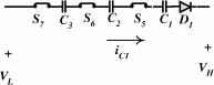 M I II-WMMrn B, I - + . h R V. 1, ![]() (a) (b) (c) figure 17.37 Mode B: (a) switch on; (b) switch off; and (c) waveforms with enlarged variations. Mode B. The equivalent circuits during switch-on and switch-off periods are shown in Fig. 17.37a,b. The typical output voltage and current waveforms are shown in Fig. 17.37c. I - к Output current II is I = ---12 and К V-iV + Vs + Vj,)-Rlz-Г + yl-k к The minimum conduction duty fc corresponding to = 0 is Vl + У2 + V5 + The power transfer efficiency Pi V,I, 1-fc The variation ratio of capacitor vohage is Аус/2 fc/i --V-RL (1 - fc)J The variation ratio of inductor current гц is A/ii/2 In 2/IiJi The variation ratio of inductor current is 2fL,I, The variation ratio of the diode current ij,; is AW2 \V-li- ,22-S-M2 L,D1 - T-- - к -- к 2fLI, If the diode current becomes zero before s2 switches on again, the converter works in a discontinuous region. The condition is lt)i = 1, that is. 17.5.2 Two-Quadrant DC/DC Luo-Converter in Reverse Operation The R 2Q Luo-converter shown in Fig. 17.38 has two switches with two passive diodes, two inductors and one capacitor. The source voltage (У^) and load voltage (v2) are usually considered as constant voltages. The load can be a battery or motor back-electromotive force (EMF). For example, the source voltage is 42 V and load voltage is -14 V. There are two modes of operation: (1) Mode С (Quadrant III) - electrical energy is transferred from source side to load side - V2, and (2) Mode D (Quadrant IV) - electrical energy is transferred from load side - v2 to source side V. ![]() figure 17.38 Reverse two-quadrant operating Luo-converter. ![]() npQT-Wy- ![]() (a) (b) (c) figure 17.39 Mode C: (a) switch on; (b) switch off; and (c) waveforms with enlarged variations. Mode C. The equivalent circuits during switch-on and switch-off periods are shown in Fig. 17.39a,b. The typical output voltage and current waveforms are shown in Fig. 17.39c. Output current I2 is Ух-Уз-Ув-Уг- 1 1 - fc + fc(l - fc) fc The minimum conduction duty fc corresponding to = 0 is in - V + V,-Vs- Vr> The power transfer efficiency Po Угк Pi УЛ Vs + yp к RI, The variation ratio of capacitor voltage is 1 -fc A%/2 [l-fc 1 (1-kfj The variation ratio of inductor current is , MlJ2 jV,-Vs-Rh 2/1,/, and the variation ratio of inductor current ij), A/D2/2 V-Vs-RI 4d2 - Ci - In 2fL,I, The variation ratio of inductor current is I2 I6PCL2 If the diode current becomes zero before switches on again, the converter works in a discontinuous region. The condition is I2 = ly that is. k = - 2fL,I, V,-Vs- RI, Mode D. The equivalent circuits during switch-on and switch-off periods are shown in Fig. 17.40a,b. The typical output voltage and current waveforms are shown in Fig. 17.40c. I - к Output current II is = ---12 and Уг - {Уу + ys+ Ув) 1 - fc - + fc(l - fc) 1 - fc The minimum conduction duty fc corresponding to /, = 0 is y, + ys + Уо Knin - y+y. + Vs + Br ![]() ![]() (a) (b) (c) figure 17.40 Mode D: (a) switch on; (b) switch off; (c) waveforms with enlarged variations. The power transfer efficiency The variation ratio of inductor current is Aii2/2 1 - к + Уд , RI, 1 / к + (1 - kf \1 - к The variation ratio of capacitor vohage is Avc/2 V + к fc(l - fc) The variation ratio of inductor current is and the variation ratio of inductor current iji is . = fc Ь1/2 У2-5-И2 Dl - Cl - I2 16/2 CL2 If the diode current becomes zero before S2 switches on again, the converter works in the discontinuous region. The condition is lE)i = 1, that is. k = - 2/L1/2 V,-Vc- RI, 17.5.3 Four-Quadrant DC/DC Luo-Converter The 4Q Luo-converter shown in Fig. 17.41 has two switches with two passive diodes, two inductors and one capacitor. The source voltage (У^) and load voltage (V2) are usually considered as constant voltages. The load can be a battery or motor back-electromotive force (EMF). For example, the source voltage is 42 V and load voltage is ibl4V. There are four modes of operation: ![]() ![]() (a) (b) figure 17.41 Four-quadrant operating Luo-converter. (a) Circuit 1; and (b) circuit 2. 1. Mode A (Quadrant I): Electrical energy is transferred from source side to load side 2. Mode В (Quadrant II): Electrical energy is transferred from load side v2 to source side У^; 3. Mode С (Quadrant III): Electrical energy is transferred from source side to load side and 4. Mode D (Quadrant IV): Electrical energy is transferred from load side - v2 to source side V. Each mode has two states: on and off. Usually, each state is operating in a different conduction duty k. The switches are the power MOSFET devices. Circuit 1 in Fig. 17.41 implements Modes A and B, and circuit 2 in Fig. 17.41 implements Modes С and D. Circuits 1 and 2 can be changed over by auxiliary switches (not shown in the figure). Mode A. During the on state switch is closed, and switch s2 and diodes D and D2 are not conducting. In this case inductor currents and ii2 increase, and z\ = + ii2-During the off state switches S, s2, and diode D are off and diode D2 is conducted. In this case current flows via diode D2 to charge capacitor C. In the meantime, current ii2 continues to flow through load battery v2- The freewheehng diode current ijj2 = h\ + hi- Mode A implements the characteristics of the buck-boost conversion. Mode B. During the on state switch s2 is closed, and switch Si and diodes and D2 are not conducting. In this case inductor current 12 increases by biased v2 and inductor current ill increases by biased Vq. Therefore, capacitor voltage Vq reduces. During the off state switches S, s2 and diode D2 are not on, and only diode is on. In this case source current = i + i2y which is a negative value to perform the regenerative operation. Inductor current ii2 flows through capacitor C, and it is charged by current ii2- After capacitor C, ii2 then flows through the source V. Inductor current in flows through the source V as well via diode D. Mode В implements the characteristics of t