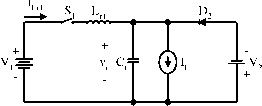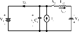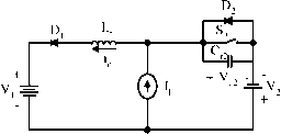 <5>- ![]() figure 17.61 Mode A operation: (a) equivalent circuit; (b) waveforms. inductor L The whole period is T = (t + 2 + % + t). Some relevant formulas are listed in the following: ![]() figure 17.62 Mode В operation: (a) equivalent circuit; (b) waveforms. Mode В is a ZVS boost converter shown in Fig. 17.62. There are four time regions for the switching-on and switching-off period. The conduction duty cycle is кТ = (% + t), but the output current flows only through the source in the period (tl + 2). The whole period is T = (t + 2 + % + t). Some relevant formulas are listed in the following: 9 - 2 = д/ and Vc2-peak = П + ih CD. = 1 = and v,i p,j, = + 2 I and oc,=sm- tj = -(71 + a,) and i Q, = -I, cos a. n=- and a,=sm t2= - (я + CC2) and iQ2 = 4(1 + cos CC2) t. = (h - hoi)Lr Ух 4V2 1 Vl ~ T tA = tl + ?2 + % + t4 =Ьф and 7i = IlV2 1 1 1 T V, T u + t. V2 1 г = tl + ?2 + t3 + 4 and / = l/T switch Si and the main inductor L. The whole period is T = (tj + 2 + % + t). Some formulas are listed as follows: k = - T = tl + t2 + t3 + t4 and / = 1/T 17.9.2 Two-Quadrant ZVS Quasi-Resonant DC/DC Luo-Converter in Reverse Operation The two-quadrant ZVS quasi-resonant Luo-converter in reverse operation is shown in Fig. 17.63. It consists of one main inductor L and two switches with their auxiliary components. Assuming the main inductance L is sufficiently large, the current i, is constant. The source voltage Vi and load voltage v2 usually constant, for example, Vi = +42 V and v2 = ~28 V. There are two modes of operation: 1. Mode С (Quadrant III) - electrical energy is transferred from the Vi side to the - v2 side; and 2. Mode D (Quadrant IV)-electrical energy is transferred from the - v2 side to the Vi side. Each mode has two states: on and off. The switch status of each state is shown in Table 17.9. Mode С is a ZVS buck-boost converter as shown in Fig. 17.64. There are four time regions for the switching-on and switching-off period. The conduction duty cycle is kT = when the input current flows through the v2 m-Y. FIGURE 17.63 Two-quadrant (QIII+IV) dc/dc ZVS quasi-resonant Luo-converter. TABLE 17.9 Switch status (the blank space means off)