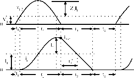 Главная » Журналы » Metal oxide semiconductor 1 ... 37 38 39 40 41 42 43 ... 91 ![]() Mode D is a cross ZCS buck-boost converter. The equivalent circuit, current and voltage waveforms are shown in Fig. 17.58. There are four time regions for the switching-on and switching-off period. The conduction duty cycle is кТ = (t + 2), but the output current flows only through the source in the period t. The whole period is T = (t + 2 + 3 + t). Some formulas are listed as follows: v,-v, ![]() FIGURE 17.57 Mode С operation: (a) equivalent circuit; (b) waveforms. Ух + Уг 1 A -if and 2 = sm / 2 = - (71 + aj) and Vrn {У\ - У2) - У2 sin(7r/2 + v.) = У1 - ¥2(1 + cosa2) {y-Vco)Cr V2(l+cosa2)Q Y and У2(.Ч + Ч) (jy2 2cosa2 Ухк Z2 7Г/2 + 2 ![]() ![]()
