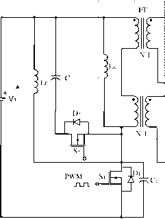 voltage (5, 3.3, and 1.8 ~ 1.5 V) and strong current (30, 60, up The intervals are: to 200 A) and high-power transfer efficiency (86, 90, up to 93%). This section introduces a few new circuits that are different from the ordinary synchronous rectifier dc/dc converters: ![]() flat transformer synchronous rectifier dc/dc Luo-converter; double current synchronous rectifier dc/dc Luo-conver- . j- т . / . . Average output voltage Vo input current is L ter with active clamp circuit; zero-current-switching synchronous rectifier dc/dc Luo-converter; and zero-voltage-switching synchronous rectifier dc/dc Luo-converter. are: and /1 = The power transfer efficiency: 17.10.1. Flat Transformer Synchronous Rectifier DC/DC Luo-Converter A flat transformer SR dc/dc Luo-converter is shown in Fig. 17.67. The switches S, s2 and S3 are the low-resistance MOSFET devices with very low resistance (7-8 mQ). Because we use a flat transformer, the leakage inductance and resistance R, are smaU. Other parameters are С = 1 F, L = 1 nH, Rl = 2 mQ, L = 5 H, and Cq = 10 The input voltage is = 30 V dc, the output voltage is the output current is Iq. The transformer turns ratio is N = 12:1. The repeating period is T = l/f and conduction duty is k. There are four working modes: CD = The natural resonant frequency is и kT Rl + Rs + kVJN When we set the frequency / = 150-200 kHz, we obtained v2 = 1.8v, n = 12, Iq = 0-30A, Volume = 2.5 (in). The average power-transfer efficiency is 92.3%, and the maximum power density (PD) is 21.6VV/in 17.10.2 Double Current Synchronous Rectifier DC/DC Luo-Converter with Active Clamp Circuit The converter in Fig. 17.67 prefers a half-wave rectifier. The dc SR dc/dc Luo-converter with an active clamp circuit is shown in Fig. 17.68. The switches s1-s4 are the low-resistance MOSFET devices with very low resistance R (7-8 mQ). As S3 and s4 plus Li and l2 form a double-current circuit and s2 plus С is the active clamp circuit, this converter prefers a fuU-wave rectifier and obtains strong output current. Other parameters are С = 1 F, L = 1 nH, R, = 2 mQ, L = 5 H, and Cq = 10 F. The input voltage is = 30 V dc, output voltage is v2 the output current is Iq. The transformer turns ratio L R, N : 1 PWM ,t-k Г1Л JpJ FIGURE 17.67 Flat transformer SR Luo-converter. --Vi PWM П П FIGURE 17.68 Double-current SR Luo-converter. is N = 12 :1. The repeating period is T = 1 and conduction duty is k. There are four working modes: When we set the frequency / = 200-250 kFLz, we obtained v2 = 1.8V, N = 12, Iq = 0-35A, Volume = 2.5 (in). The average power-transfer efficiency is 94% and the maximum power density (PD) is 25W/in 17.10.3 Zero-Current-Switching Synchronous Rectifier DC/DC Luo-Converter Because the power loss across the main switch is high in dc SR dc/dc Luo-converter, we designed the ZCS SR dc/dc Luo-converter shown in Fig. 17.69. This converter is based on the dc SR dc/dc Luo-converter plus the zero-current-switching technique. It employs a double-core flat transformer: The ZCS resonant frequency is normahzed impedance is I,Lr 1 . . yi(l + cosa)Q h=-(71 +a) % = CO = The natural resonant frequency is l-k The intervals are: (Vl cos a \ The interval of tj is Average output voltage V2 and input current are: In and L = k - The power transfer efficiency: Rl + Rs + kVJN Average output voltage v2 and input current I are: The power transfer efficiency: RlRs kVJN When we set = 60 V and frequency / = 200-250 kFLz, and obtained v2 = 1-8 V, n = 12, Iq = 0-60 A, Volume = 4 (in). The average power transfer efficiency is 94.5% and the maximum power density (PD) is 27W/in. 17.10.4 Zero-Vokage-Switching Synchronous Rectifier DC/DC Luo-Converter The ZVS SR dc/dc Luo-converter is shown in Fig. 17.70. This converter is based on the dc SR dc/dc Luo-converter plus the S4 -D4 -I Li --D6 CoJ FIGURE 17.69 The ZCS dc SR Luo-converter. ![]() -I Li IL l2 FIGURE 17.70 ZVS dc SR Luo-converter. zero-voltage-switching technique. It employs a double-core flat transformer: (Dr = The ZVS resonant frequency is Zr = hi- and a = sin ![]() FIGURE 17.71 Luo-resonator. normalized impedance is ViQ 1 /i(l + cosa)L The intervals are: tl + ?2 + % Average output voltage v2 and input current are: The power transfer efficiency: kVJN When we set V = 60 V and frequency / = 200-250 kFiz, we obtained v2 = 1-8 V, N = 12, Iq = 0-60 A, Volume = 4 (in). The average power-transfer efficiency is 94.5% and the maximum power density (PD) is 27W/in. 17.11 Gate Control, Luo-Resonator The Luo-resonator is shown in Fig. 17.71. It generates the PWM pulse train to drive the static switch S. The Luo-resonator is a high-efficiency and simple structured circuit with easily adjusting frequency / and conduction duty k. It consists of three operational amplifiers (OA) namely, OAl-3, and an auxiliary. These three 741-type OAs are integrated in a chip TL074 (which contains four OAs). Two potentiometers are applied to adjust the frequency / and conduction duty k. The voltage waveforms are shown in Fig. 17.72. The type-741 OA can work at a power supply of ib3-ibl8 V denoted by V+, G and V- with V - = V+. The OA2 in Fig. 17.71 acts as the integration operation, its output is a triangle waveform with regulated frequency f = l/T ![]() FIGURE 17.72 Voltage waveforms of Luo-resonator. controlled by potentiometer R. The OAl acts as a resonant operation, its output is a square waveform with the frequency /. The OA3 acts as a comparator, and its output V] is a square-waveform pulse train with regulated conduction duty к controlled by R. First, assume that the voltage Vg = V+ at t = 0 and feeds positively back to OAl via R2. This causes the OAl output voltage to be maintained at = V+. In the meantime, inputs to OA2 via R, and the output voltage Vq of OA2 therefore decreases towards V- with the slope l/RC. Voltage V(j feeds negatively back to OAl via R. Voltage at point A changes from (mV+) to 0 in the period of ImRC. Usually, R is set slightly smaller than R2, and the ratio is de