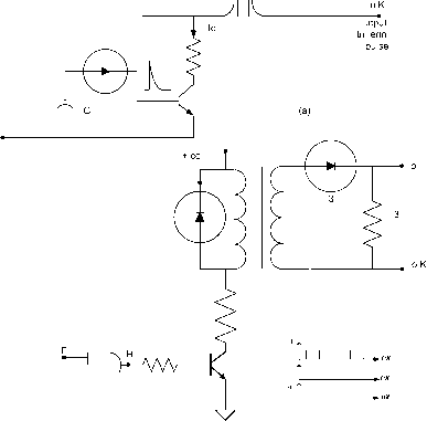 FIGURE 18.13 (a) Driver and buffer circuits for thyristors; (b) driver and buffer circuit in common use. Figure 18.13e shows a fiber-optic cable-based driver circuit. It provides the very high electrical isolation and large creepage distance required between a low-power control circuit and a high-voltage power circuit. In the case of an optocoupler, I-LED and the receiving phototransistor both are fabricated on the same 1С chip. Therefore, capacitance between them should be as smaU as possible to avoid retriggering at both turn-on and turn-off of the power devices (e.g., power transistors, power MOSFET and IGBT), because of the jump of potential across the devices (dv/dt). To avoid this problem, the fiberoptic technique is used. The first amphfier is a receiver (fiber optic integrated detector/preamphfier), and the second amplifies the control signal to the required level for triggering of the thyristor. Here, the driver circuit is linked to the control circuit only through the fiber-optic cable, thus galvanic isolation is provided between them. Example 18.6. Design a suitable pulse transformer-based driver circuit for gating a given SCR. The worst-case requirements of the SCR are given in the following: /cnin = 100 mA, Va = 2.5 V@ - 65 °C The input drive control signal is an output of AND gate (IC7408). The specification of a TTL gate (general type) is given by Output current and voltage at the logic 1 level: I = 0.4 mA, @Vqh = 2.4V, and Output current and voltage at the logic 0 level: I = 16 mA, @VoL = 0.4V Solution. The gate current requirements of the thyristor are important for design considerations. Then the Input dri e control si nal ![]() pto-coupler with photo SC Input dri e control si nal + cc pto-co iJ pie r with photo transistor ![]() J Input dri e control si nal ![]() FIGURE 18.13 (c) optocoupler 1С chip-based isolation circuit; (d) optocoupler with phototransistor; and (e) optical fiber cable-based driver circuit. desired gate current and hence the secondary current of the pulse transformer (/2) should be 100 mA. Let the turns ratio of the pulse transformer be 2 :1 (Fig. 18.13b). Therefore, the primary current (J) of the pulse transformer can be taken as /i = - = 50 mA FLere, the maximum output current of TTL 1С is limited to 0.4 mA for logic 1 level. Neglecting the small Ve voltage drop during the switching of the transistor. Rb> 0.4 X 10 = 6kQ We thus choose = 6.8 kQ. For this purpose, a switching transistor (ВС 107, ВС 148, BELIOON, 2N222 or similar) may be selected according to voltage and current ratings (У^с c)-Let BELIOON (or SL 100) transistor be taken whose specifications are Vcbo = 60 V(,), Iq = 500 mA(,), hy (at /с = 150 mA, Vqe = 1V, = 25 °C) = 50 to 280. Because the required primary winding current of the pulse transformer 1=1 = 50 mA, the value of resistor Rl (which is used to limit the collector current within the allowable range) is given by Vnn 12 Ri = cc Ic 50 X 10 = 240 Q Then we choose R = 220 Q. resistor = IqRi = The power rating of (50 X 10- f X 220 = 0.65 W. Therefore, a 220-Q, 1-W resistor will be a good choice. 18.5 Drivers for Gate Commutarion Switches Devices from the thyristor family differ from those of the transistor family with respect to their input or drive characteristics. In the case of a thyristor, once it is triggered it continues to be in the same mode unless current through it reduces below its holding current level. However, in the case of transistors, to keep them in the conduction mode, a continuous base or gate signal is required. Basically, transistors or other gate commutation devices are either current controlled (e.g., BJT) or voltage controlled (e.g., MOSFET, IGBT). Similarly, for turn-on operation, GTO behaves as an SCR, while the turn-off operation (or gate current requirements for turn-off) is totally different from the SCR. A GTO requires a large negative gate current and a high power sink for successful commutation (similar to driving requirements of power BJTs). As discussed earlier, normally the driver circuit has to provide an electrically isolated gate/base signal. For the power BJT, the current gain (h or P) of the transistor is low ( = 5 to 10). Therefore, the power capability of the driver circuit should be as high as 20% of the power circuit. However, driving a power MOSFET is similar to driving a very high-impedance capacitive network, thus a carefully designed very low power drive circuit is required. Most gate-voltage-controlled (or gate-commutation-controlled) power semiconductor devices require a very low power driver circuit. Normally, a unipolar drive signal (a positive voltage pulse) is sufficient for normal turn-on and turn-off of the devices. However, for rapid turn-on and turn-off, bipolar signals (both positive and negative voltage pulses) are required. Moreover, for high switching performance, similar circuits with high (source and sink) capabilities are required for MOSFET, IGBT, and BJT alike. For MOSFET/IGBT, the transition current capability should be high (with low output power). However, for BJT, a sustained high base current (in the high output power) is required. For GTO, a very low power circuit is required for turn-on. However, the turn-off circuit capability should be very high (compatible with the power BJT drive circuit). Although it is required for a very smaU period, the gate power requirement of the negative pulse is about one-third of the power circuit. 18.5.1 Gate Drive Circuits for Power MOSFETs The input gate characteristics of a MOSFET differ from its bipolar counterparts. The gate is isolated electrically from the source by a layer of sihcon dioxide. Ideally, no current flows into the gate when a dc voltage is applied. However, a smaU leakage current (of the order of 10 A) flows to maintain the gate voltage and also during the transition periods (off-to-on and on-to-off). Therefore, a smaU current is enough to charge and discharge the device capacitances. However, the