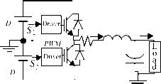 0.005 0.01 0.015 0.02 0.025 0.03 0.035 0.04 tisl figure 19.26 (a) Block diagram of the sliding-mode nonlinear controller for the buck-boost converter; (b) transient responses of the sliding-mode controlled buck-boost converter. At = 0.005 s y step from 23 v to 26 v. At = 0.02 s Vj( step from 26 v to 23 v. Top graph: square reference y and output voltage v. Bottom graph: trace around 20, current; trace starting at zero, 10 x (vjr - v). behavior, this current limit is fundamental to reach the sliding-mode of operation with step disturbances. The block diagram (Fig. 19.26a) of the implemented control law ((19.86) with Q/ci c2 =4) and switching law ((19.88) with г = 0.3) does not included the time derivative of the reference (dvJdt) since, in a dc-dc converter its value is considered zero. The controller hardware (or software), derived using just the sliding-mode approach, operates only in closed loop. The resulting performance (Fig. 19.26b) is much better than that obtained with the PID notch filter (compare to Example 19.4, Fig. 19.9b), with a higher response speed and robustness against power-supply variations. Example 19.11. Sliding-Mode Control of the Single-Phase Half-Bridge Converter. Consider the half-bridge four quadrant converter of Fig. 19.27 with output filter and inductive load (Vj = 300 V; Увстгп = 230 V; = 0.1 Q; L, = 4 mH; C, = 470 цЕ; inductive load with nominal values R = 7 = 1 mH). ![]() Assuming that power switches, output filter capacitor, and power supply are aU ideal, and a generic load with allowed slow variations, the switched state-space model of the converter, with state variables and ii, is