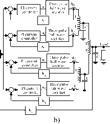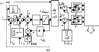 -2?! +72 +Уз 3L -2У2 + у3+У1 3L -R -273 + 71 + 72 0 0 0 TA zl L L L L С 0 0 0 FIGURE 19.46 Voltage sourced pwm rectifier with IGBTs and test load. dt (19.119) 470 where .1 RR,\ (I RR, 1 RR, -Щ(у1(у1 - у2) + у2(у2 Уз) + Гз(Уз Tl)) 3L Since the input voltage sources have no neutral connection, the preceding model can be simphfied, eliminating one equation. Using the relationship (19.120) between the fixed fi-ames Xi 2 and x i, in (19.119), the state space model (19.121), in the a-P fi-ame, is obtained V273 0 -7T76 ущ (19.120) -R 0 -R -Уц At, A\ 32 y,R, yR, -1 С (19.121) where /1 iiA , RR, A?3 = Shding-Mode Control of the PWM Rectifier The model (19.121) is nonlinear and time variant. Applying the Park transformation (19.122), using a frequency со rotating reference frame synchronized with the mains (with the q component of the supply d Jt cos(cot) - sin(a;t) sin(a;t) cos(a;t) -R -yd (19.122) - CD L -R -yq L L Ad Ad Ad 31 32 33 Г 1 ycjRc Увс -1 LI L с dtJ (19.123) where A-y( И?Л , /1 RR, -RM + yl) This state-space model can be used to obtain the feedback controllers for the PWM boost rectifier. Considering the output voltage Vg and the current as the controlled outputs and y, the control inputs (MIMO system), the input-output linearization of (19.123), gives the state-space equations in the controllability canonical form (19.124): de dt R + Rc(y] + yl) у] + у1 --L- -L ydVd + yqVq Rip /1 RRc\di LC \C L ) dt 1 RR, (19.124) vohages equal to zero), the nonlinear, time-invariant model (19.123) is written: 19 Control Methods for Power Converters where Using the rectifier overall power balance (fi-om Tellegen s theorem, the converter is conservative, e.g. the power delivered to the load or dissipated in the converter parasitic elements equals the input power), and neglecting the switching and output capacitor losses, dd + qq = 00 + Щ' Supposing Unity power factor (iq 0), and the output in steady state, TdU + yqk d = VyRMS q = 0 7 q/o y{v-Ri)/v,. Then, from (19.124) and (19.75), the following two sliding surfaces can be derived: Sie,-, t) = kAL, - L) = 0