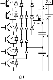 Главная » Журналы » Metal oxide semiconductor 1 ... 45 46 47 48 49 50 51 ... 91 These PI regulator parameters depend on the load resistance Ri, on the rectifier parameters (C, R, L, R), on the rectifier operating point 7 on the mean delay Тф and on the required damping factor C. Therefore, the expected response can only be obtained with nominal load and input voltages, the line current dynamics depending on the Kp and gains. Results (Fig. 19.48) obtained with the values Ll.lmH, iO.lQ, C 2000 F equivalent series resistance ESR 0.1 Q I] = 0.0012, Vrms70V, with 0.1 Q), ii25Q, i212Q, Kp = 1.2, Ki = 100, kj = 1, show that the a- space vector current modulator ensures the current tracking needed (Fig. 19.48). The step response reveals a faster sliding-mode controUer and the correct design of the current mode/PI controller parameters. The robustness property of the shding-mode controUed output v compared to the current mode/PI, is shown in Fig. 19.49. Example 19.15. Sliding-Mode Controllers for multilevel Inverters. Muhilevel inverters (Fig. 19.50) are the converters of choice for high-voltage, high-power dc-ac or ac-ac (with dc link) applications, as the active semiconductors (usually gate turn-off thyristors (GTO), or IGBT transistors) of n-level power conversion systems, must withstand only a fraction (normally UJ{n - 1)) of the total supply voltage U. Moreover, the output voltage of multilevel converters, being staircase-like waveforms with n steps, features lower harmonic distortion compared to the two-level waveforms with the same switching frequency. The advantages of multUevel converters are paid into the price of the capacitor supply voltage dividers (Fig. 19.51) and voltage equalization circuits, or into the cost of extra power supply arrangements (Fig. 19.51c). This example shows how to extend the two-level switching law (19.81) to /7-level converters, and how to equalize the voltage of the capacitive dividers. 20 10 S 0 -10 -20 AO -50. ![]() 0.01 0.02 0.03 tls] 0.04 0.05 ![]() FIGURE 19.48 a- space vector current modulator operation at near unity power factor; (a) simulation result (z + 30; + 30; 2 x /2 - 30; (b) experimental result (1 z, 2 Z2 (10 A/div); 3 z, 4 Z2 (5 A/div)). 0 M.VA- 0.005 0.01 0.02 0.025 ![]() 0.005 0.01 0.02 0.025 t [s] t [s] Ю - r [V] with sliding mode control b) - r [V] with current mode/PI control FIGURE 19.49 Transition from rectifier to inverter operation (z from 8 A to -8 A) obtained by switching off IGBT Sa and using 4 = 16 A (Fig. 19.46). Load Ucc-и 2