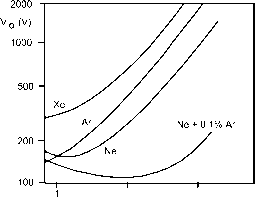 Il l2 I FIGURE 21.5 Voltage-current characteristic of an electric discharge. Focusing on discharge lamps, the complete stabilization process consists of two main phases: 1. Breakdown phase. Most gases are very good insulators, and an electric discharge is only possible if a sufficient concentration of charged particles is present. Normally, a high voltage is used to provide electricity carriers and to initiate the discharge. The minimum voltage applied to initiate the discharge is called the starting voltage. The starting voltage mainly depends on the type of gas, gas pressure, and distance between electrodes. Figure 21.6a represents the starting voltage as a function of the product gas pressure multiphed by electrode distance, for different gases. These functions are known as Paschen curves. Usually, auxiliary inert gases are used to decrease the starting voltage. There exist some especially inert gas mixtures presenting a very low starting voltage, which are caUed Penning mixtures. These Penning mixtures are often used as initial starting gases. Figure 21.6a shows a typical Penning mixture consisting of neon with 0.1% argon. 2. Warm-up phase. Once the lamp is ignited, the coUi-sions between free electrons and atoms generate heat and discharge temperature increases until normal operating conditions are reached. During this phase the heat is used to evaporate the metal atoms existing in the discharge tube, and the emitted electromagnetic radiation assumes the character of a metal vapor discharge instead of that of an inert gas discharge. From the electrical point of view, the discharge warm-up phase shows initially low discharge voltage and high discharge current. As long as more and more metal atoms are evaporated, the discharge voltage increases and the discharge current decreases. Finally, an equilibrium is reached at steady-state operation with the normal values of voltage and current. The time constant of the warm-up phase strongly depends on the lamp type. It varies from seconds for fluorescent lamps to minutes for high-intensity discharge lamps. Figure 21.6b iUustrates some discharge waveforms during the warm-up phase. ![]() 10 100 p-le(Pa-m) ![]() V- Voltage I - Current Ф P- Power Ф- Total Luminous Flux 1.0 2.0 3.0 Time (minutes) (a) (b) FIGURE 21.6 (a) Paschen curves for different inert gases; and (b) stabilization curve of a discharge lamp. The basic elements used in lamps to generate radiation in the visible part of the spectrum are sodium and mercury. The former generates radiation directly within the visible part of the spectrum; the latter generates radiation mainly in the ultraviolet region, but this radiation can be easily transformed into visible radiation by means of a phosphor coating on the internal waU of the discharge volume. Besides the element used, a very important parameter related to the efficiency and richness of the emitted radiation is the discharge pressure. For sodium and mercury elements, there exist two pressure values around which the luminous efficacy of the discharge is higher. The first is obtained at quite low pressures, about 1 Pa, and the second at higher pressures, around 10 Pa (1 atm). This is why there exist two main types of discharge lamps: 1. Low-pressure discharge lamps. This type of lamp operates at pressures around 1 Pa and features low current density inside the discharge and low power per unit of discharge length. Therefore, these lamps normally present a quite large discharge volume with a low power rating. The most representative examples are low-pressure mercury lamps, also known as fluorescent lamps, and low-pressure sodium lamps. 2. High-pressure discharge lamps. The operating pressure in this type of lamp is raised to 10 Pa and higher in order to achieve a considerable increase in the luminous efficacy of the discharge. These lamps present a high current density in the discharge and a high power per discharge length ratio, thus showing much smaUer discharge volumes. Examples are high-pressure sodium lamps, high-pressure mercury lamps, and metal hahde lamps. Finally, to characterize the light produced by a discharge lamp it is necessary to understand two important concepts: the correlated color temperature (CCT) and the color rendering index (CRI). The correlated color temperature is defined as the temperature of the blackbody radiator whose perceived color most closely resembles that of the discharge lamp. The color of an incandescent body changes as its temperature rises from deep red to orange, yeUow, and finally white. Thus, a cool white fluorescent lamp has a CCT around 3500 К and is perceived as a white source of light, whereas a high-pressure sodium lamp presents a CCT of about 2000 К and appears yeUow. The color rendering index of a light source is the effect that the source has on the color appearance of objects when compared to their appearance under a reference source of equal CCT. The measurement gives a value lower than 100, and a higher CRI means better color rendition. For example, daylight and incandescent lamps have CRIs equal to 100. To conclude this introduction to discharge lamps, some comments regarding the most important types of discharge lamps wiU be given. Table 21.1 provides some additional data for the different discharge lamps for comparison. 1. Fluorescent lamps. These lamps belong to the category of low-pressure mercury-vapor discharge lamps. The discharge generates two main lines at 185 and 253.7 nm and other weak lines in the visible range of the spectrum. A fluorescent powder on the inside waU of the discharge tube converts the ultraviolet radiation into visible radiation, resulting in a broadband spectral distribution and good color rendition. In these lamps the optimum mercury vapor pressure (which gives the maximum luminous efficacy) is 0.8 Pa. For the tube diameters normally used, this pressure is reached at a waU temperature of about 40 °C, not much higher than typical ambient temperature.