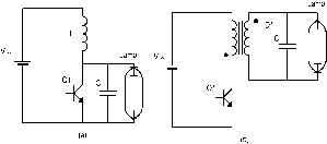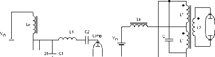 ![]() FIGURE 21.10 Nonresonant electronic ballasts. ![]() Lamp Lamp FIGURE 21.11 Three typical current-fed resonant inverters: (a) class E inverter, (b) current-fed push-pull inverter, and (c) current-fed full-bridge inverter. weight of the baUast. Fiowever, the adjustment of the circuit parameters to obtain optimum operation is quite difficult, especially for mass production. Another important drawback is the high voltage stress across the switch, which can reach values of three times the dc input voltage. For these reasons, the main applications of this circuit are battery supply baUasts with low input voltage and low lamp power, such as those used in emergency lighting and portable equipment. The typical power range of this baUast is 5 to 30 W. Applications of this circuit can be found in [18,19]. Another typical topology in this group is the current-fed push-puU inverter shown in Fig. 21.11b. In this circuit a dc input current is obtained by means of the choke inductor Le. Transistors are operated with a 50% duty cycle, thus providing a current square wave, which supplies the paraUel resonant circuit formed by the mutual inductance of the transformer and capacitor C. This circuit presents the advantage of being relatively easy to implement in a self-osciUating configuration, avoiding the use of extra control circuits and reducing cost. Also, zero-voltage switching (ZVS) can be obtained in the power switches. Fiowever, the switches also present a high voltage stress, about three times the dc input voltage, which make this topology unsuitable for power-hne applications. This circuit is also normally used in battery-operated applications in a self-oscillating arrangement. The typical power range is 4-100 W. Apphcations based on this circuit can be found in [20,21]. Finally, Fig. 21.11c shows a current-fed fuU-bridge resonant inverter, which can be used for higher power ratings. Also, this circuit aUows control of the output power at constant frequency by switching the devices of the same leg simultaneously, generating a quasi-square current wave through the resonant tank [6]. 21,2,2,2,2 Voltage-Fed Resonant Ballasts This type of baUast is one of those used most by electronic ballast manufacturers at the present time, especially for applications supplied from ac mains. The circuit is fed from a dc voltage source, normally obtained by line-voltage rectif)ing. A square-wave voltage waveform is then obtained by switching the transistors with a 50% duty cycle, and used to feed a series resonant circuit. This resonant tank filters the high-order harmonics and supplies the lamp with a sine current waveform. One advantage of the voltage-fed series resonant circuit is that starting voltage can be easily obtained without using extra ignition capacitors by operating close to the resonant tank frequency. Figure 21.12 shows electrical diagrams of typical voltage-fed resonant baUasts. The voltage-fed version of the push-puU inverter is iUustrated in Fig. 21.12a. This inverter includes a transformer, which can be used to step the input voltage up or down in order to obtain an adequate rms value of the output square wave voltage. This provides greater design flexibility but also increases cost. One disadvantage is that voltage across transistors is twice the input voltage, which can be quite high for line applications. Therefore, this inverter is normally used for low-voltage applications. Another important drawback of this voltage-fed inverter is that any asymmetry in the two primary windings (different number of turns) or in the switching times of power transistors would provide an undesirable dc level in the transformer magnetic flux, which in turn could saturate the core or decrease efficiency because of the circulation of dc currents. Figures 21.12b and 21.12c illustrates two possible arrangements for the voltage-fed half-bridge resonant inverter. The former is normally referred as the asymmetric half-bridge and uses one of the resonant tank capacitors (CI in the figure) to block the dc voltage level of the square wave generated by the bridge. This means that capacitor CI wiU exhibit a dc level equal to half the dc input voltage superimposed on its normal alternating voltage. A transformer can also be used in this inverter to step the input voltage up or down to the required level for each application. In this case the use of the series capacitor CI prevents any dc current from circulating through the primary winding, thus avoiding transformer saturation. This topology is often used by baUast manufacturers to supply fluorescent lamps, especially in the self-osciUating version, which aUows drastic reductions in cost. When supplying hot cathode fluorescent lamps, the paraUel capacitor C2 is normally placed across two electrodes, as shown in Fig. ![]() Lamp Lamp к ![]() ![]() Lamp FIGURE 21.12 Typical voltage-fed resonant inverters: (a) push-pull; (b), (c) half bridge; and (d) full bridge. 21.12b, in order to provide a preheating current for the electrodes and achieve soft ignition. Figure 21.12c shows another version of the half-bridge topology, using two bulk capacitors to provide a floating voltage level equal to half the input voltage. In this case, capacitor Cl is no longer used to block a dc vohage, thus showing lower vohage stress. Finally, for the high power range (> 200 W), the fuU-bridge topology shown in Fig. 21.12d is normally used. Transistors of each half-bridge are operated with a 50% duty cycle and their switching signals are phase shifted by 180°. Thus, when switches Ql and Q2 are activated, direct voltage is applied to the resonant tank, and when switches Q3 and Q4 are activated the reverse voltage - is obtained across the resonant circuit. One of the advantages of this circuit is that the switching signals of the two branches can be phase shifted by angles between 0 and 180°, thus controlling the rms voltage apphed to the resonant tank in a range from 0 to У^ . This provides an