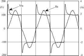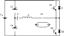 0 5 10 15 20 Pla(W) FIGURE 21.15 Lamp resistance versus lamp power characteristic. 15 VS О О ![]() .subckt lamp 10 20 + params: V =100 P =1 Tau=0.3m E 10 15 Value={V(30,20)*I(VS)} VS 15 20 0 EK 30 20 Value={V *V /(V(40,20)+P )} К 30 20 1 GP 20 40 Value={V(10,20)*I(VS)} P 40 20 1 P 40 20 {Tau} . ends (a) (b) FIGURE 21.16 (a) Mader-Horn linear model for discharge lamps; and (b) SPICE description of the model. Vg Ы) 1 - 2Y;v LAMP I Vo=100V I Po=1W X=0.3ms Vg 1 0 SIN(0 325 50) b 1 2a 100 b 2a 2 500mH X A 2 0 AMP .tran 0.1m 60m 0 0.1m ![]() 20ms 25ms 30ms 35ms 40ms 45ms 50ms 55ms 60ms ov(2) К1ЬГ50 *v(1) Time ![]() -150V -100V □ i(lb) (b) (c) FIGURE 21.17 (a) Example of simulation with an inductive ballast at low frequency; (b) Operating waveforms; and (c) Lamp 7-V characteristic. Discharge lamp modeling has become an important subject, because it is very useful in optimizing the electronic ballast performance. Some improvements on the Mader-FLorn model and other interesting models can be found in the literature [8-10]. 21.4 Resonant Inverters for Electronic Ballasts Most modern domestic and industrial electronic ballasts use resonant inverters to supply discharge lamps. They can be implemented in two basic ways: current-fed resonant inverters and voltage-fed resonant inverters. 21.4.1 Current-Fed Resonant Inverters One of the most popular topologies belonging to this category is the current-fed push-puU resonant inverter, previously shown in Fig. 21.11. For this reason, this inverter wiU be studied here to illustrate the operation of current-fed resonant ballasts. The current-fed push-puU inverter uses an input choke to obtain a dc input current with low current ripple. This current is alternately conducted by the switches so that a paraUel L < С ![]() where is the base impedance of the resonant tank, Q is the normahzed load, Q is the normalized frequency, and cDq is the natural frequency of the resonant circuit, given by: = /l/C, Q = R/Zq, Q = ш/шо = ша/lC, Шо = l/VIC (21.8) FIGURE 21.18 (a) Equivalent circuit of a parallel resonant inverter; and (b) Operating waveforms. resonant tank can be supplied with a current square wave. Figure 21.18 shows the equivalent circuit and the operating waveforms of a current-fed resonant inverter. The input current can be expressed as a Fourier series in the following way: U0= E 4 sinna;/:= J2 -sinncot (21.5) =1.3.5... n=l,3,5... nn /5 is the peak value of each current harmonic, and /5 is the dc input current of the inverter. The output voltage for each current harmonic is obtained by multiplying the input current /5 by the equivalent parallel impedance : Уо,п - h,ne,n - h,n 1/R + jncoC - jil/ncDl) (21.6) Usually, normahzed values are employed in order to provide more general results. Then, the output voltage can be expressed as follows: l/Q + ;nQ-;(l/nQ) (21.7) From (21.7) the peak output voltage and phase angle cp can be obtained for each harmonic: Уо,п - h,nl (21.9) yi/Q2 + (nQ-l/nQ) cp = -tan Q(nQ - 1/nQ) (21.10) The total harmonic distortion (THD) of the output voltage can be calculated as foUows: o,n , я=3,5,7... THD(%) = ----100 (21.11) Based on these equations, the analysis and design of the current-fed resonant inverter can be performed. Normally, the circuit operates close to the natural frequency cOq, and the effect of the high-frequency harmonics can be neglected. To probe this. Fig. 21.19a illustrates the THD of the output voltage as a function of the normalized load and frequency, obtained by plotting (21.11). As can be seen, for values of Q greater than 1 and for operation close to the natural frequency (Q = 1), the THD is low, which means that the output voltage is nearly a sinusoidal waveform. However, for low values of Q the output voltage tends to be a square waveform, and the THD tends to a value of about 48%, corresponding to the THD of a square waveform. Figure 21.19b illustrates the normalized output voltage for the fundamental component. THD(%) 40