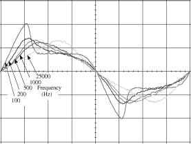 (a) lla (a) 2 1.5 -2 -1.5 0 10 20 30 40 t(is ) -200 -100 0 100 200 via (V) FIGURE 21.13 Waveforms and 7-У characteristics of 150-W HPS lamp at (a) 50 Hz; and (b) 50 kHz. ![]() FIGURE 21.14 Voltage waveforms for a 36-W linear fluorescent lamp supplied through a resistive ballast at nominal power and different operating frequencies. Vertical scale: lOOV/div. can be seen, a power factor close to unity is obtained at high frequency. The equivalent lamp resistance at high frequencies can be easily estimated from the low-frequency data. Lamp power at any operating frequency can be expressed as foUows: Pla - УьАклРРьА (21.2) where V and 4л the rms values of lamp voltage and current, and FP is the lamp power factor. At hne frequencies the lamp power factor is low (typically 0.8) because of the high distortion in the lamp voltage waveform. FLowever, at high frequencies the lamp power factor reaches nearly 1.0. Then, lamp voltage and current at high frequency (У^д;,, I equation: la,hf) t)e estimated from the following la (21.3) hA,hfyLA,hf - ) TABLE 21.2 Electric data for different discharge lamps Manufacturer at 50 Hz Measured at High Frequency