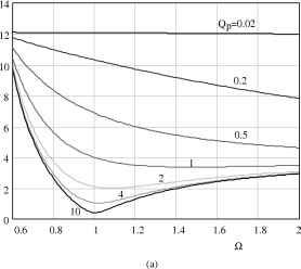 0.4 0.6 0.8 1 1.2 1.4 1.6 1.8 figure 21.23 Characteristics of series-loaded resonant inverter: (a) THD; and (b) fundamental output voltage. handled. In this case the inverter switches wiU present zero-voltage switching (ZVS) [22]. For frequencies lower than cOq, the current is in advance and also some reactive energy wiU be handled. In this case the inverter switches wiU present zero-current switching (ZCS). As can be seen in Fig. 21.23a, the TFiD is lower for the lower values of the normalized load and for frequencies close to the natural frequency of the resonant tank. For the higher values of Qs the TFiD tends to the value corresponding to a square wave. The output voltage is always lower than the input voltage, and for frequencies around the natural frequency the circuit behaves as a voltage source, especially for high values of Q. This means that the lamp cannot be ignited and supphed in discharge mode while maintaining constant switching frequency. This behavior is similar to that encountered for the current-fed resonant inverter. The use of step-up transformers is mandatory to achieve lamp ignition, especially for low input voltages. In order to maintain a constant operating frequency, a series element will be necessary to limit the lamp current at normal discharge operation. A capacitor can also be used, as discussed in a previous section. In summary, this circuit is mainly used in high-input-voltage, low-current apphcations, and it is not often used to implement electronic ballasts. 21.4.2.2 Parallel-Loaded Resonant Circuit In this circuit, the output voltage corresponding to the n-order harmonic is given by the following expression: V =Vc- o,n S,n (21.22) where: Qp = R/Zb = К(Ь/СрУ^\ Q = ш/шо = (о^/Щ (21.23) The TFiD and fundamental output voltage are shown in Fig. 21.24. This circuit presents characteristics that are much more useful in implementing electronic baUasts than the series-loaded resonant circuit. First, the TFiD of the output voltage around the natural frequency is in general much lower than that of the series circuit. For the lower values of Qp, the TFiD tends to a value of 12%, which corresponds to the TFiD of a triangular wave. As a result, the lamp voltage and current waveforms wiU be very simUar to a sine wave, which is the more adequate waveform to supply the lamp. Secondly, the frequency response of the output voltage (Fig. 21.24b) makes it possible to both ignite the lamp and limit the lamp current at steady state whUe maintaining constant operating frequency. During ignition the lamp behaves as a very high impedance, thus giving a high value of Qp. Under these conditions the paraUel circuit can generate a very high output voltage, provided that the operating frequency is close to the natural frequency. Once the lamp is ignited, the normahzed load Qp decreases and the circuit can limit the lamp current without changing the operating frequency. In fact, the paraUel circuit operating close to the natural frequency behaves as a current source for the load, as wiU be shown later. This behavior is very adequate to supply discharge lamps because it ensures good discharge stability, keeping the lamp from being easily extinguished by transitory power fluctuations. The maximum value of the voltage gain shown in Fig. 21.24 can be calculated to be equal to Qp/y/l - 1/4Q., and it appears at a frequency = 1 - l/2Qp. This means that a maximum is only present if Qp is greater than I/л/2 0.71. For the higher values of Qp, the maximum gain can be ![]() 10 УоД Vs,l