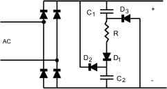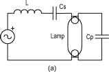 figure 21.26 Typical starting process of discharge lamps. Steady-State operation is adjusted to be at a switching frequency equal to the natural frequency, so that very stable operation for the lamp is ensured. Figure 21.27a shows a fluorescent lamp supplied using a series-parallel resonant tank. The input data for the design are normally the fundamental input voltage V, the switching frequency in normal discharge operation (running) /5, the lamp voltage and current at high frequency Yj, 4л, the electrode heating current 4, the maximum lamp voltage during heating process Vjj, and the lamp starting voltage Yiq. The equivalent circuit during the heating and ignition phase is shown in Fig. 1\21\. The current circulating in this circuit is the electrode heating current, which can be calculated by using = 00 in (21.28): Q- 1/Q (21.31) where the electrode resistance has been neglected for simphcity. For a given heating current l, the necessary switching frequency is obtained from (21.31) as follows: Regarding the heating voltage, it can be calculated from (21.26) using = 00, and the following value is obtained: (21.33) The frequency at which the starting voltage is achieved can also be obtained following value: using = 00 in (21.26), giving the (21.34) Once the lamp is ignited, the new operating circuit is shown in Fig. 21.27c. Normally the switching frequency is selected to be very close to the natural frequency, and the circuit characteristics can be obtained by setting Q = 1. Thus, as stated previously, the circuit behaves as a current source of the following value: Ila = (21.35) From this equation the impedance needed to provide a lamp current equal to is easily obtained: (21.36) Using Eqs. (21.31)-(21.36), the design procedure can be performed as follows: Step 1: Steady-state operation. Choose a value for the factor a; normally a value of 0.8-0.9 will be adequate for most applications. From (21.36) calculate the value of for the resonant tank. Since the natural frequency is equal to the switching frequency, the reactive elements of the resonant tank can be calculated as follows: 2ZbI (21.32) 2nfs 2nfsCcZB 271/5(1 - a)Zs (21.37) ![]() Vh V3 0 Rla> Cp: figure 21.27 (a) Fluorescent lamp supplied with a series-parallel circuit; (b) equivalent circuit during heating and ignition; and (c) equivalent circuit during normal discharge mode. Step 2: Heating phase. From (21.32) calculate the switching frequency for a given heating current 1. Then, calculate the value of the heating voltage from (21.33). Step 3: Check if the heating voltage is lower than the maximum value allowed to avoid electrode sputtering. If the voltage is too high, choose a lower value of a and repeat steps 1 and 2. Also, the maximum heating frequency can be limited to avoid excessive frequency variation. The lower the value of a, the lower the frequency variation from heating to ignition, since the output voltage characteristics are narrower for the lower values of a. The described procedure to achieve lamp soft ignition requires the use of a voltage-controUed osciUator to control the switching frequency. This can increase the cost of the ballast. A simUar soft ignition can be achieved using the resonant circuit shown in Fig. 21.28. This circuit is often used in self-oscillating baUasts, where the switches are driven from the resonant current using a current transformer [23]. In the circuit shown in Fig. 21.28, the PTC is initially cold and capacitor Cpi is bypassed by the PTC. The resonant tank under these conditions is formed by L-Cg-Cp2, which can be designed to heat the lamp electrodes with a heating voltage low enough to avoid lamp cold ignition. Since the PTC is also heated by the circulating current, after a certain period of time it reaches the threshold temperature and trips. At this moment, the new resonant tank is formed by I, Q, and the series equivalent of Cp and Cp2. This circuit can be designed to generate the necessary ignition voltage and to supply the lamp in normal discharge mode. Once the lamp is ignited, the PTC maintains its high impedance since the dominant paraUel capacitor in this phase is Cp (usually Cp < Срз). 21.5 High-Power-Factor Electronic Ballasts As mentioned in a previous section, when electronic baUasts are supphed from the ac line an ac-dc stage is necessary to provide the dc input voltage of the resonant inverter (see Fig. 21.9). Since the introduction of harmonic regulations, such as lEC 1000-3-2, the use of a fuU-bridge diode rectifier followed by a filter capacitor is no longer applicable for this stage because of the high harmonic content of the input current. Therefore, the use of an ac-dc stage showing a high input power factor (PF) and a low total harmonic distortion (TFiD) of the input current is mandatory. The inclusion of this stage can greatly increase the cost of the complete ballast, and therefore the search for low-cost, high-power-factor electronic baUasts is an important field of research at present. Figure 21.29a shows a first possibility to increase the input power factor of the baUast by removing the filter capacitor across the diode rectifier. Fiowever, since there are no low-frequency storage elements inside the resonant inverter, the output power instantaneously foUows the input power, thus producing an annoying hght flicker. Besides, the resulting lamp current crest factor is very high, which considerably decreases lamp life. In order to avoid flicker and increase lamp current crest factor, continuous power must be delivered to the lamp. This can only be accomplished by using a PFC stage with a low-frequency storage element. This solution is shown in Fig. 21.29b, where capacitor Q is used as energy storage element. The main drawback of this solution is that the input power is handled by the two stages, which reduces the efficiency of the complete electronic baUast. Lamp Cpi: CP2- FIGURE 21.28 Resonant circuit using a PTC resistor. 21.5.1 Harmonic Limiting Standards