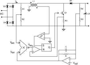 1.0A -0.5A - -0.5A 450ms 460ms 470ms 480ms Time 490ms 500ms (a) (b) FIGURE 21.31 Valley-fill circuit: (a) circuit diagram; and (b) waveforms. ![]() Co AC (a) (b) (c) FIGURE 21.32 Power factor correction circuits for ballasts: (a) buck-boost; (b) flyback; and (c) boost. circuit used and the input current waveform are shown in Figs. 21.33a and 21.33b, respectively. The inductor current is sensed using a resistor in series with the switch, and the peak inductor current is programmed to foUow a sine wave using a multiplier. A comparator is employed to detect the zero-crossing of the inductor current in order to activate the switch. Most 1С manufacturers provide a commercial version of this circuit to be used for electronic ballast apphcations. The boost circuit operating with borderhne control provides a continuous input current, which is easier to filter. It also presents low switch turn-on losses and low recovery losses in the output diode. The main disadvantages are the variable switching frequency and the high output voltage, which must be higher than the peak line voltage. For the higher power range, the boost converter can be operated in continuous conduction mode (CCM) to correct the input power factor. The input current in this scheme is continuous with very low distortion and easy to filter. The current stress in the switch is also lower, which means that more power can be handled, maintaining good efficiency. The normal efficiency obtained with a boost circuit operating either in the DCM-CCM borderhne or in CCM can be as high as 95%. 21.6 Applications Electronic ballasts are widely used in lighting applications such as portable lighting, emergency lighting, automotive applications, home lighting, and industrial lighting. They provide low volume and size, making it possible to reduce the luminaire size as weU, with very interesting results for the new trends in lighting design. 21.6.1 Portable Lighting In this apphcation a battery is used as power source and then a low input voltage is available to supply the lamp. Examples are hand lanterns and back-lighting for laptop computers. Typical input voltages in these applications range from 1.5 to 48 V. Therefore, a step-up converter is necessary to supply the discharge lamp, and then electronic baUasts are the only ![]() ![]() Q1 CONTROL SIGNAL FIGURE 21.33 (a) Boost power factor corrector with borderUne control; and (b) input current waveform. suitable solution. Since the converter is supplied from a battery, the efficiency of the ballast should be as high as possible in order to optimize the use of the battery energy, thus increasing the operation time of the portable lighting. Typical topologies used are the class E inverter and the push-puU resonant inverter, providing efficiencies up to 95%. 21.6.2 Emergency Lighting Emergency lighting is used to provide a minimum lighting level in case of a main supply cutoff. Batteries are employed to store energy from the mains and to supply the lamp in case of a main supply failure. A typical block diagram is shown in Fig. 21.34. An ac-dc converter is used as battery charger to store energy during normal line operation. A control circuit continuously measures the line voltage and activates the inverter in case of a main supply failure. Normally a minimum operating time of 1 hour is required for the system in emergency state; thus the use of high-efficiency electronic ballasts is mandatory to reduce battery size and cost. Typical topologies used include class E inverters, push-pull resonant inverters, and half-bridge resonant inverters. Fluorescent lamps are mainly used in emergency ballasts, but high-