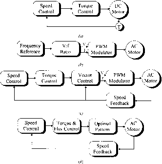 The ac output voltage of the matrix converter is always less than the input voltage - derating is expected or a larger frame size is required. ![]() ![]() ![]() -a- -b- -c- FIGURE 26.5 MV stack topologies [3]. 26.6.3 Control Strategies Several control techniques can be found in the VSD industry, (refer to Fig. 26.6) these include: Open-loop inverter with fixed V/Fiz control Open-loop inverter with flux vector control Closed-loop inverter with flux vector control (induction motor) Direct torque control Table 26.15 summarizes the main features, advantages, and disadvantages of each technique [11]. 26.6.4 Communication in VSDs The use of a high-speed advanced digital communication (Fieldbus) to build industrial automation system for realtime TABLE 26.14 Comparison between different MV converter stack topologies Topologies Advantages Disadvantages 2-level with series devices (SC2L) 3-level NPC (3LNPC) Diode clamped multilevel (DCML) Capacitor clamped multilevel (CCML) Series-connected isolated h- bridges (ISHB) Simple and proven technology Same converter design over supply voltage range Standard fully developed PWM control Provision for series redundancy of power switches per inverter phase arm {n-\-I) Well proven Reduced harmonic content Better utilization of switches Reduced dV/dt (half the SC2L equivalent) Reduced harmonic contents Reduced dV/dt This configuration has all the advantages of a multilevel converter plus: Simpler arrangement, modular building block Fewer components Snubberless operation is possible Easier capacitor voltage balance than 3LNPC Modular design of the converter power modules The basic building block is based on a dc supply bridge, decouphng capacitor and a H-bridge arrangement In the ac supply the combined diode bridge rectifiers act like a multipulse bridge (18p for 4-level and 24p for 5-level), reducing harmonic injection into the ac supply Its output has very low harmonic content in spite of the low switching frequency Static and dynamic voltage sharing of series devices High dV/dt due to synchronous commutation of series devices High switching frequency harmonic content in inverter o/p voltage Series redundancy is difficult to achieve More complex PWM control is needed than 2-level Requires extra clamping diodes Requires split dc link Requires midpoint voltage balance control Even number of power devices per arm is always needed Switches require snubbers Series redundancy is very difficult to achieve Very complex PWM control is needed Requires many steering diodes Requires split dc link Requires voltage balance control of split dc link capacitors Uneven current stresses on power devices Requires snubbers Possible parasitic resonance between decoupling capacitors Complex to provide series redundancy More complex PWM control strategy than for 2-level Voltage redistribution of capacitors during supply voltage surges Too many capacitors (bulky stack design and poor capacitor utihzation at high ratings) Complex converter arrangement (for low stray inductance) Inverter rating is limited by the load current flowing through the capacitors Employs a special (bulky and expensive) transformer Complex to achieve series redundancy Different supply transformer designs are required for applications operating at different ac hne voltages Power pulsation for poor power factor loading Poor utihzation of capacitors Not suitable for common dc bus applications Dynamic Braking difficult ![]() FIGURE 26.6 Electrical drive control techniques, (a) DC drive; (b) Frequency Control (PWM scalar control); (c) Flux Vector Control (Field-oriented control); (d) Direct Torque Control. control or simply for data logging has become well established in modern industries. Digital communication resulted in replacing wiring looms with a digital serial network; this resulted in a lower cost installation and more reliable solution. Over the past few years many industrial fieldbuses emerged, and end-users, system integrators, and original equipment manufacturers (OEMs) chose the optimum system for their applications. A fieldbus is a digital communication system that allows a control system to exchange data with remote sensors, actuators, and drives using a single communication hnk. The major benefits seen are reduced installation and cabling cost, and better overall immunity of the system. Both factors result in more reliable operation and reduced maintenance costs. There exist two main types of network: (a) Centralized network. Requires a network master controller, typically a PLC. The master device is entirely responsible for controlling communications over the network, while the slave devices tend to be dumb devices with no local intelligence. (b) Decentralized network. Requires some local intelligence at each node, but no overall master device. This is ideal for realtime application environments, as all nodes are effectively running in parallel. TABLE 26.15 Comparison between various control methods used in VSD