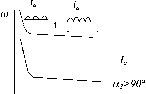 JtS + D (Om(s) Tl(s) FIGURE 27.4 excited motor. Transfer characteristic block diagram of a separately If we compare this with a standard second-order system, the undamped natural frequency and damping factor are given by (On = ![]() 1 D (27.8) (27.9) where s + - m = 0 (27.7) = mechanical time constant = KeKt in which = Kij: = Kj in SI units and = electrical time constant = -. The speed response of the motor around an operating speed to the apphcation of load torque on the shaft is given by 1+5T. ATr КЖт (l+5T,)(/5 + D)+ (27.10) 27.2.3 Converters for dc Drives Depending on application requirements, the power converter for a dc motor may be chosen from a number of topologies. For example, a half-controlled thyristor converter or a single-quadrant PWM switching converter may be adequate for a drive that does not require controlled deceleration with regenerative braking. On the other hand, a fuU four-quadrant thyristor or transistor converter for the armature circuit and a two-quadrant converter for the field circuit may be required for a high-performance drive with a wide speed range. The frequency at which the power converter is switched, e.g., 100 Fiz for a single-phase thyristor bridge converter supphed from a 50-Fiz ac source (or 300 Fiz for a three-phase thyristor bridge converter), 20 kFiz for a PWM MOSFET Fi-bridge converter, and so on, has a profound effect on the dynamics achievable with a motor drive. Low-power switching devices tend to have faster switching capability than high-power devices. This is convenient for low-power motors since these are normally required to be operated with high dynamic response and accuracy. 27.2.3.1 Thyristor Converter Drive Consider the dc drive of Fig. 27.5, for which the armature supply voltage to the motor is given by -cos a (27.11) Power Supply F С С VmaxSinCOt Ra La 4 ![]() where V is the peak value of the line-line ac supply voltage to the converter and a is the firing angle. The dc output voltage is controllable via the firing angle a, which in turn is controlled by the control voltage e as input to the firing control circuit (FCC). The FCC is synchronized with the mains ac supply and drives individual thyristors in the ac-dc converter according to the desired firing angle. Depending on the load and the speed of operation, the conduction of the current may become discontinuous as indicated in Fig. 27.6a. When this happens, the converter output voltage does not change with control voltage as proportionately as with continuous conduction. The motor speed now drops much more with load as indicated by Fig. 27.6b. The consequent loss of gain of the converter may have to be avoided or compensated if good control over speed is desired. The output voltage of the simple, two-pulse ac-dc converter of Fig. 27.5 is rich in ripples of frequency nf, where n is an even integer starting with 2 and / is the frequency of the ac supply. Such low-frequency ripple may derate the motor considerably. Converters with higher pulse number, such as the 6- or 12-pulse converter, deliver much smoother output voltage and may be desirable for more demanding applications. A high-performance dc drive for a rolhng miU drive may consist of such converter circuits connected for bi-directional operation of the drive, as indicated in Fig. 27.7. The interfacing of the firing control circuit to other motion-control loops, such as speed and position controUers, for the desired motion is also indicated. Two fully-controUed bridge ac-dc converter circuits are used back-to-back from the same ac supply. One is for forward and the other is for reverse driving of the motor. Since each is a two-quadrant converter, either may be used for regenerative braking of the motor. For this mode of operation, the braking converter, which operates in inversion mode, sinks the motor current aided by the back emf of the motor. The energy of the overhauhng motor now returns to the ac source. It may be noted that the braking converter may be used to maintain the braking current at the maximum aUowable level right down to zero speed. A complete acceleration-deceleration cycle of such a drive is indicated in Fig. 27.8. During braking, the firing angle is maintained at an appropriate value at aU times so that controUed and predictable deceleration takes place at aU times. - ai<90° ![]() ![]() ![]() FIGURE 27.7 Bidirectional speed and position control system with a back-to-back (dual) thyristor converter. The innermost control loop indicated in Fig. 27.7 is for torque, which translates to an armature current loop for a dc drive. Speed- and position-control loops are usually designed as hierarchical control loops. Operation of each loop is sufficiently decoupled from the other so that each stage can be designed in isolation and operated with its special limiting features. 27.2.3.2 PWM Switching Converter Drive PWM switching converters have traditionally been referred to as choppers in many traction- and forklift-type drives. These are essentially PWM dc-dc converters operating from rectified dc or battery mains. These converters can also operate in one, two, or four quadrants, offering a few choices to meet application requirements. Servo drive systems normally use the full four-quadrant converter of Fig. 27.9, which allows bidirectional drive and regenerative braking capabilities. For forward driving, the transistors and T4 and diode D2 are used as a buck converter that supplies a variable voltage, v, to the armature given by = 3Vj (27.12) where У^ the dc supply voltage to the converter and 3 is the duty cycle of the transistor T. The duty cycle 3 is defined as the duration of the on time of the modulating (switching transistor) as a fraction of the switching period. The switching frequency is normally dictated by the application and the type of switching devices selected for the application. During regenerative braking in the forward direction, transistors t2 and diode D4 are used as a boost converter
