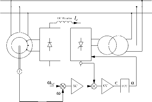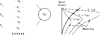 FIGURE 27.12 Typical current and speed control loop designs for the system of Fig. 27.11. the PI controller for the current loop using Bode analysis or other control-system design tools. The next step is usually the design of the speed controller. The 0-db intercept of 1 5(1 + Ts) is normally much too low. Again, if a PI controller is selected for the speed loop, its Bode plot is superimposed on the current controlled system as indicated in Fig. 27.12 to obtain the desired speed-control bandwidth. 27.2.5 Converter-DC Drive System Considerations Several operational factors need to be considered in applying a dc drive. Some of the important ones are as follows: 1. The armature current may be rich in harmonics. This is particularly true for thyristor converters. The feedback of these current ripples into the firing-control circuit may cause overloading of individual switches and tripping. Adequate filtering is necessary to avoid such problems. 2. Since the converter is switched at regular intervals while the current controller operates continuously, current overshoot may occur because of the delay in the firing-control circuit. The current controller gains must be hmited to limit this overshoot. 3. The switching frequency of the converter should be selected according to the desired motor-current ripple. supply-input current harmonics, and dynamic performance of the drive. 4. Ripple in the speed sensor output limits the performance of the speed controller. Analog tachogenerator output is particularly noisy and defines the upper limit of the speed control bandwidth. Digital speed sensors, such as encoders and resolvers, alleviate this limit significantly. 27.2.6 Further Reading 1. G. K. Dubey, Power Semiconductor Controlled Drives. Prentice Hall, 1989. 2. W. Leonard, Control of Electric Drives. Springer-Verlag, 1985. 3. V. Subrahmanyam, Electric Drives; Concepts and Applications. McGraw-Hill, 1994. 4. M. A. El-Sharkawi, Fundamentals of Electric Drives. Thompson Learning, 2000. 27.3 Induction Motor Drives M. F. Rahman 27.3.1 Introduction The ac induction motor is by far the most widely used motor in the industry. Traditionally, it has been used in constant and variable-speed drive apphcations that do not cater for fast dynamic processes. Because of the recent development of several new control technologies, such as vector and direct torque controls, this situation is changing rapidly. The underlying reason for this is the fact that the cage induction motor is much cheaper and more rugged than its competitor, the dc motor, in such applications. This section starts with induction motor drives that are based on the steady-state equivalent circuit of the motor, followed by vector-controlled drives that are based on its dynamic model. 27.3.2 Steady-State Representation The traditional methods of variable-speed drives are based on the equivalent circuit representation of the motor shown in Fig. 27.13. Rl Li ![]() From this representation, the foUowing power relationships in terms of motor parameters and the rotor shp can be found Power in the rotor circuit, P2 = 3/ - = 3 .R2 s 3SR2EI rl(s(DL2f (27.13) Output power, Pq = P2- 3IJR2 = (1-S)P2 = CD,T (1 - s)co, where slip, 5 = P = number of pole pairs (27.U) (27.15) rad/s; N is the rotor speed in rev/min co = rotor speed in electrical rad/s = 2nfi rad/s (electrical), f being the supply frequency The developed torque T = T Nm Щ/Р (27.16) The shp frequency, 5/1, is the frequency of the rotor current, and the airgap voltage is given by £1 = щЬ = (27.17) where 1 is the stator flux hnkage due to the airgap flux. If the stator impedance is negligible compared to E, which is true when fl is near the rated frequency , ViEi= 2nfil, =--T coi rl SR2VI (sCDiL2r 3P sR2(2nfifli rl(scDiL2f (27.Щ (27.19) 27.3.3 Characteristics and Methods of Control The preceding analysis suggests several speed control methods. The foUowing are some of the widely used methods: 1. Stator voltage control 2. Slip power control 3. Variable-voltage, variable-frequency (V-/) control 4. Variable-current, variable-frequency (/-/) control These methods are sometimes caUed scalar controls to distinguish them from vector controls, which are described in Section 27.3.4. The torque-speed characteristics of the motor differ significantly under different types of control, as wiU be evident in the foUowing sections. 27.3.3.1 Stator Voltage Control In this method of control, back-to-back thyristors are used to supply the motor with variable ac voltage, as indicated in the converter circuit diagram of Fig. 27.14a. The analysis of Section 27.3.1 imphes that the developed torque varies inversely as the square of the input RMS voltage to the motor, as indicated in Fig. 27.14b. This makes such a drive suitable for fan- and impeUer-type loads for which torque demand rises faster with speed. For other types of loads, the suitable speed range is very hmited. Motors with high rotor resistance may offer an extended speed range. It should be noted that this type of drive with back-to-back thyristors with firing-angle control suffers from poor power and harmonic distortion factors when operated at low speed. If unbalanced operation is acceptable, the thyristors in one or two supply hnes to the motor may be bypassed. This offers the possibUity of dynamic braking or plugging, desirable in some applications. 27.3.3.2 Slip Power Control Variable-speed, three-phase, wound-rotor (or slip-ring) induction motor drives with slip power control may take several forms. In a passive scheme, the rotor power is rectified and dissipated in a hquid resistor or in a multitapped resistor that may be adjustable and forced cooled. In a more popular scheme, which is widely used in medium- to large-capacity pumping instaUations, the rectified rotor power is returned to the ac mains by a thyristor converter operating in naturally commutated inversion mode. This static Scherbius scheme is Load Г-СО ![]() Torque, Nm indicated in F