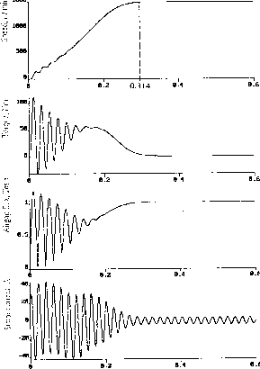 Главная » Журналы » Metal oxide semiconductor 1 ... 65 66 67 68 69 70 71 ... 91 normally employs a dc-link current loop as the innermost torque loop. Figure 27.16 shows transient responses of the dc-link, rotor, and stator currents of such a drive when the motor is accelerated between two speeds. The drive is normally started with a short-time-rated liquid resistor, and the thyristor speed controller is started when the drive reaches a certain speed. By replacing the diode rectifier of Fig. 27.16 with another thyristor bridge, power can be made to flow to and from the rotor circuit, allowing the motor to operated at higher than synchronous speed. For very large drives, a cycloconverter may also be used in the rotor circuit with direct conversion of frequency between the ac supply and the rotor and driving the motor above and below synchronous speed. 27.3.3.3 Variable-Voltage, Variable-Frequency (V-f) Control 27,3,3,3,1 SPWM Inverter Drive When an induction motor is driven from an ideal ac voltage source, its normal operating speed is less than 5% below the synchronous speed, which is determined by the ac source frequency and the number of motor poles. With a sinusoidally modulated (SPWM) inverter, indicated in Fig. 27.17, the supply frequency to the motor can be easily adjusted for variable speed. Equation (27.18) imphes that if rated airgap flux is to be maintained at its rated value at all speeds, the supply voltage to the motor should be varied in proportion to the frequency f. The block diagram of Fig. 27.18a shows how the frequencyand the output voltage of the SPWM inverter are proportionately adjusted with the speed reference. The speed reference signal is normally passed through a filter that only aUows a gradual change in the AC . Mains ->Тз ->Т5 ![]() FIGURE 27.17 V-f drive with SPWM inverter. frequency f. This type of control is widely referred to as the V-f inverter drive. Control of the stator input voltage V as a function of the frequency f is readily arranged within the inverter by modulating the switches T-T. At low speed, however, where the input voltage V is low, most of the input voltage may drop across the stator impedance, leading to a reduction in airgap flux and loss of torque. Compensation for the stator resistance drop, as indicated in Fig. 27.18b, is often employed. Fiowever, if the motor becomes lightly loaded at low speed, the airgap flux may exceed the rated value, causing motor to overheat. Speed reference l + TfS reference reference -> ![]() FIGURE 27.18 (a) Input reference filter and voltage and frequency reference generation for the V-f inverter drive, (b) Voltage compensation at low speed. From the equivalent circuit of Fig. 27.13 and neglecting rotor leakage inductance, the developed torque T and the rotor current /2 are given by (27.24) (27.25) where scd is the slip frequency, which is also the frequency of the voltages and currents in the rotor. Equation (27.24) implies that by limiting the shp 5, the rotor current can be limited, which in turn limits the developed torque [Eq. (27.25)]. Consequently, a slip-limited drive is also a torque-limited drive. Note that this true only at steady state. A speed-control system with such a slip limiter is shown in Fig. 27.19. In this scheme, the motor speed is sensed and added to a limited speed error (or hmited slip speed) to obtain the frequency (or speed reference for the V-f drive). Many applications of the V-f controller, however, are open-loop schemes, in which any demanded variation in V is passed through a ramp limiter (or filter) so that sudden changes in the slip speed cd. are precluded, thereby allowing Speed Controller FIGURE 27.19 Closed-loop speed controUer with an inner slip loop. the motor to follow the change in the supply frequency without exceeding the rotor current and torque limits. From the foregoing analyses, it is obvious that the V-f inverter drive essentially operates in all four quadrants, with rotor speed dropping shghtly with load, and developing full torque at the same slip speed at all speeds. This assumes that the stator input voltage is properly compensated so that the motor is operated with constant (or rated) airgap flux at all speed. The motor can be operated above the base speed by keeping the input voltage V constant while increasing the stator frequency above base frequency in order to run the motor at speeds higher than the base speed. The airgap flux and hence maximum developed torque now fall with speed, leading to constant power type characteristic. Figure 27.20 CO, rad/sec Sequence: a-c-b Base speed with rated Vj and base fi ![]() Sequence: a-b-c Trated T,Nm FIGURE 27.20 Typical T-(d characteristics of V-f drive with input frequency fx and voltage V below and above base speed. depicts the T-co characteristics of such a vohage- and frequency-controUed drive for various operating frequencies. In this figure, the T-co characteristic for base speed has been drawn in fuU, indicating the maximum developed torque T and the rated torque. Below base speed, the Vi/f ratio is maintained to keep the airgap flux constant. Above base speed, Vl is kept constant, whUe f increases with speed, thus weakening the airgap flux. Forward driving in quadrant Ql takes place with an inverter output voltage sequence of a-b-c, whereas reverse driving in quadrant Q3 takes place with sequence a-c-b. Regenerative braking while forward driving takes place by adjusting the input frequency f in such a way that the motor operates in quadrant Q2 (quadrant Q4 for reverse braking) with the desired braking characteristic. Note that the characteristics in Fig. 27.20 are based on the steady-state equivalent circuit model of the motor. Such a drive suffers from poor torque response during transient operation because of time-dependent interactions between the stator and rotor fluxes. Figure 27.21 indicates the machine airgap flux during acceleration with V-f control obtained from a dynamic mode