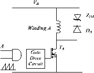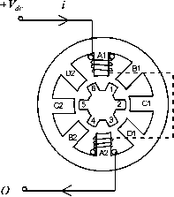 f Stepper \ motor 27.7.8 Further Reading 1. H. B. Ertan, A. Hughes, and P. J. Lawrenson, Efficient numerical method for predicting the torque-displacement curve of saturated VR stepping motors, Proc. 1ЕЦ 127, Part B, No. 4, 1980. 2. T. Kenjo and A. Sugawara, Stepping Motors and Their Microprocessor Controls. Oxford University Press, 1994. 3. P. P. Acarnley, Stepping Motors: A Guide to Modern Theory and Practice. lEE Control Engineering Series, Vol. 19. Peter Peregrinus, Ltd., 1982. 4. Application Notes AN235, Stepper Motor Driving Discrete Semiconductor Handbook. SGS Thompson Microelectronics, 1995. 5. M. F. Rahman, C. S. Chang and A. N. Poo, Approaches to ministep-ping step motor controllers and their accuracy considerations, IEEE Transactions on Industrial Electronics, IE32:3 (1985). 6. Proceedings of Symposium on Incremental Motion Controls Systems and Devices, 1972-1992. University of Illinois, Urbana-Champaign, IL. 27.9 Switched-Reluctance Motor Drives Adrian Cheok 27.9.1 Introduction The switched-reluctance (SR) motor is a doubly sahent electric machine with salient poles on both the stator and rotor. The machine is operated by switching current pulses to each stator winding on and off in a continuous switching sequence. The rotor poles have no excitation. Figure 27.97 shows the physical topology of a typical SR motor. The diagram iUustrates a motor with eight salient stator poles (numbered Al to D2) and six salient rotor poles (numbered 1 to 6). Although many combinations of the number of stator and rotor poles are possible, this particular type has found widespread use. The phase windings on the stator of the SR motor consist of concentrated windings wrapped around the stator poles. In the conventional arrangement each stator pole winding is connected with that of the diametrically opposite pole to ![]() form a stator phase. In Fig. 27.97, the connected stator pole pairs are indicated by the same prefix letter. The general principle of operation of the SR motor is the same as all types of reluctance machines, i.e., the stator and the rotor poles seek the minimum-reluctance position, so that the stator excited flux becomes maximum. Hence, when current flows in an SR motor stator phase and produces a magnetic field, the nearest rotor pole will tend to position itself with the direction of the developed magnetic field. This position, which is termed the aligned position, is reached when the rotor pole center axis is aligned with the stator pole center axis (assuming symmetrical poles). The ahgned position also corresponds to the position of minimum reluctance, and hence the position of maximum inductance. It should be noted that the unaligned position is defined as the position when the interpole axis, or the axis of the center of the interpolar space in the rotor, is ahgned with a stator pole axis. This position corresponds to the position of minimum inductance. These rotor axis positions are illustrated in Fig. 27.98. To achieve continuous rotation, the stator phase currents are switched on and off in each phase in a sequence according to the position of the rotor. Consider the motor schematic illustrated in Fig. 27.97. If coils Al and A2 of phase A are excited and produce a magnetic field in a vertical direction, then poles 1 and 4 on the rotor will align themselves with the stator poles of phase A. If the coils of phase A now have their current switched off, and coils Bl and B2 of phase В are now excited, then in a similar fashion the rotor will move so that poles 2 and 5 are ahgned with stator poles Bl and B2. Exciting phases A, B, C, and D in sequence will produce rotor rotation in the counterclockwise direction. From the preceding discussion, one may see that the switching on and off of excitation current to the motor phases is related to the rotor pole positions. This means that some form of position sensor is essential for the effective operation of the SR motor. 27.9.2 Advantages and Disadvantages of Switched-Reluctance Motors The SR motor has a number of inherent advantages that makes it suitable for use in certain variable-speed drive applications. Nevertheless, the motor also has some inherent disadvantages rotor pole centre axis TABLE 27.6 Advantages and disadvantages of SR drives Advantages Disadvantages ![]() ...inter-pole axis Low-cost motor Robust motor construction Absence of brushes No motor short-circuit fault No shoot-through fauhs Ability to operate with faulted phase High torque-to-inertia ratio Unidirectional currents High efficiency Need for position measurement Higher torque ripple than other machine types Higher noise than other machine types Nonhnear and complex characteristics FIGURE 27.98 Rotor pole axis positions. that must be considered before choosing the motor for a particular application. In Table 27.6, the main advantages and disadvantages of the SR motor drive are summarized. 27.9.3 Switched-Reluctance Motor Variable-Speed Drive Applications The main application for SR motors is in variable-speed drive systems. One apphcation area has been general-purpose industrial drives where speed, acceleration, and torque control are desired. SR-motor-based industrial drives provide the advantages of a very wide range of operating speeds as well as high efficiency and robustness. Other applications of the SR drive include automotive apphcations, where the SR motor has advantages of robustness and fault tolerance. The SR motor in this application can also be easily controlled for acceleration, steady speed, and regenerative braking. The SR motor is also well suited to aerospace applications where the ability to operate under faulted conditions and its suitability for operation under harsh environments are critical. Additionally, the very high speed capability and high power density also make these motors well suited in the aerospace field. There are also many domestic appliances where cost is of primary concern. In these products, the SR motor can provide