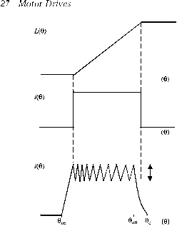Главная » Журналы » Metal oxide semiconductor 1 ... 70 71 72 73 74 75 76 ... 91 ![]() hysteresis band (с) F(0) ![]() FIGURE 27.104 (a) Linear phase inductance variation, (b) Ideal square-wave phase current, (c) Chopping-mode phase current, (d) Chopping-mode phase voltage, (e) Flux linkage waveform corresponding to chopping-mode current. ![]() ![]() F(e) ![]() FIGURE 27.105 (а) Linear phase inductance variation, (b) Single-pulse-mode phase current, (c) Single-pulse-mode phase voltage, (d) Flux linkage waveform corresponding to single-pulse-mode current. closely approximated by the use of hysteresis current control. At higher speeds hysteresis current control can no longer be used and a current waveform similar to that shown in Fig. 27.105b is seen in the phase winding. These two types of practical current waveforms, which approximate the ideal square-pulse waveform (a) at low to medium speeds and (b) at high speeds, wiU be discussed next. 27.9.5.1 Low- to Medium-Speed Approximation to Square-Pulse Current Waveform At low to medium motor speeds, the ideal square-pulse current waveform is approximated in the practical motor drive using hysteresis current control, as is shown in Fig. 27.104c. The hysteresis method of controlling the current is termed the chopping-mode control method in SR motor drives. During the time of conduction (between the turn-on and turn-off angles), the current is maintained within the hysteresis band by the switching off and on of the phase voltage by the inverter when the phase current reaches the maximum and minimum hysteresis band. An example of the voltage waveform used for the hysteresis current control is shown in Fig. 27.104d, where a constant inverter dc supply voltage of magnitude is used. It can be seen that the switching frequency of the voltage waveform decreases as the angle increases. This is due to the fact that the phase inductance is hnearly increasing with angle, which has the effect of increasing the current rise and fall time within the hysteresis band. In the chopping-mode control method, the turn-on region is defined as the angle between the turn-on angle 6 and the turn-off angle 0, and is chosen to occur during the rising inductance region for motoring torque. In the practical chopping current waveform, the current turn-on angle 0 is placed somewhat before the rising inductance region. This is to ensure that the current can quickly rise to the maximum level in the minimum-inductance region before the rising-inductance, or torque-producing, region. Similarly, the turn-off angle 9ff is placed a little before the maximum inductance region so that the current has time to decay before the negative-torque, or decreasing-inductance, region. The angle at which the current decays to zero after turn-off is labeled as in Fig. 27.104c. 27.9.5.2 High-Speed Approximation to Square-Pulse Current Waveform The chopping mode of operation cannot be used at higher speeds, as at these speeds the hysteresis band current level will not be reached. This is because at high speeds the back emf of the motor becomes equal to or larger than the voltage supply in the rising-inductance region, which limits the increase of the motor phase current. In addition, the rise time of the current will correspond to an ever-increasing angle as the speed is increased. Eventually, at high speeds, the rise-time angle will be so large that the turn-off angle 9 will be reached before the hysteresis current level has been exceeded. Thus, at high speeds the current is switched on and off only once per cycle. In SR motor drive control, this is called the single-pulse mode of operation. An example of the single-pulse mode current is illustrated in Fig. 27.105b. In the single pulse mode of operation, the inverter power switches turn on at rotor angle which places the dc voltage supply across the phase winding, as is shown for the example single-pulse voltage waveform in Fig. 27.105c. As for the chopping-mode case, in order to maximize torque 6 must usually be located prior to the rising inductance region. This is so that, while the inductance is low, the current has a chance to rise rapidly to a substantial value before the torque-producing region begins and the motor back emf increases. At rotor angle 9, the power switches are turned off, and the phase will have a negative voltage (typically -thrown across it. The current will then decay until it becomes zero at rotor angle 9. 27.9.6 Operating Theory of the SR Motor (II): Magnetic Saturation and Nonlinear Model In the hnear model described earlier, it was assumed that the inductance of a phase winding is independent of current. However, in a real SR motor significant saturation of the magnetic circuit normally occurs as the phase current increases, and thus the phase inductance is related to both the phase current level and position. Because of the magnetic saturation effect, the actual phase inductances at a given rotor position can be reduced significantly compared to the inductance given by linear magnetization characteristics. In addition, the effect of magnetic saturation becomes larger as the motor current level increases. The effects of saturation in an SR motor can be observed in a plot of its magnetization curves. This shows the relationship of flux linkage versus current, at rotor positions varying between the fully aligned and unaligned angles. A typical set of SR motor magnetization curves is shown in Fig. 27.106, where it can be seen that there is a nonlinear relationship between the flux linkage and current for each curve. 0.8 -0.7 -0.6 Flux Linkage 0.5 -(Wb) ![]() Rotor Angle (degrees) 6 8 10 12 14 16 18 Current (A) Because of the magnetic saturation effect discussed earher, the instantaneous torque equation (27.96), which was derived assuming hnear conditions, will not be generally valid for calculating the torque in SR motors. Therefore, for accurate calculations, the torque must take into account the depend