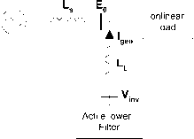 The final compensating currents including the zero sequence components in a,b, с reference frame are the foUowing: 1 -1 л/З 7! 1 -1 -л/З 2 j (33.14) where the zero sequence current component Zq is equal to 1/а/З (*д + ц + ic) The block diagram of the circuit required to generate the reference currents defined in (33.14) is shown in Fig. 33.10. The advantage of p-q theory is that real and reactive power associated with fundamental components are dc quantities. These quantities can be extracted with a low pass filter. Since the signal to be extracted is dc, filtering of the signal in the Transformation Transformation wit Zero equence p and q calculation In erse ark Transform К с rrent Control Unit Generated Current oad Current -