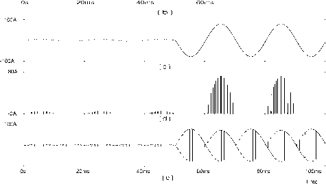 FIGURE 33.39 Experimental results without the operation of the series active power filter, (a) Load current, (b) Current flowing through the passive filter, (c) Current through the power supply. Ch4 20.0mv