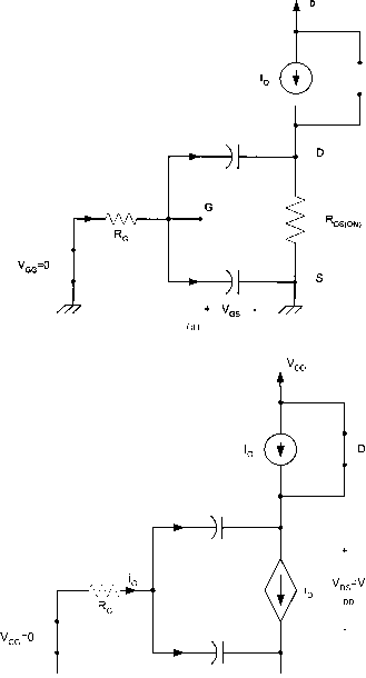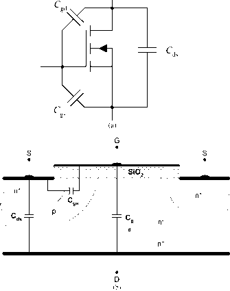 Главная » Журналы » Metal oxide semiconductor 1 ... 6 7 8 9 10 11 12 ... 91 of device structure, geometry, and bias voltages. During turn-on, capacitors Cgj and Cg must be charged through the gate, hence, the design of the gate control circuit must take into consideration the variation in these capacitances. The largest variation occurs in the gate-to-drain capacitance as the drain-to-gate voltage varies. The MOSFET parasitic capacitance is given in terms of the device data sheet parameters Qg, Qsg, and as follows: gd - Qss gs - Qss ~ Qss Qs - Qss ~ Qss where is the small-signal reverse transfer capacitance; Qg is the small-signal input capacitance with the drain and source terminals shorted; and C is the small-signal output capacitance with the gate and source terminals shorted. The MOSFET capacitances Cg, Cgj and are nonlinear and a function of the dc bias voltage. The variations in C and are significant as the drain-to-source voltage and the gate-to-source voltage each cross zero. The objective of the drive circuit is to charge and discharge the gate-to-source and gate-to-drain parasitic capacitances to turn on and off the device, respectively. ![]() In power electronics, the aim is to use power-switching devices that operate at higher and higher frequencies. Fience, the size and weight of output transformers, inductors, and filter capacitors will decrease. As a result, MOSFETs are now used extensively in power supply design that requires high switching frequencies, including switching and resonant mode power supplies and brushless dc motor drives. Because of its large conduction losses, its power rating is limited to a few kilowatts. Because of its many advantages over BJT devices, modern MOSFET devices have received high market acceptance. 6.6 MOSFET Regions of Operation Most MOSFET devices used in power electronics applications are of the n-channel, enhancement type, like that shown in Fig. 6.6a. For the MOSFET to carry drain current, a channel between the drain and the source must be created. This occurs when the gate-to-source voltage exceeds the device threshold voltage Vj. For Vq > Vj, the device can be either in the triode region, which is also called constant resistance region, or in the saturation region, depending on the value of is-given Vq, with small is (ds < gs ~ Th) the device operates in the triode region (saturation region in the BJT), and for larger Vy)s (ds > gs ~ Th) the device enters the saturation region (active region in the BJT). For Vq < У^, the device turns off, with drain current almost equal to zero. Under both regions of operation, the gate current is almost zero. This is why the MOSFET is known as a voltage-driven device and, therefore, requires simple gate control circuit. The characteristic curves in Fig. 6.6b show that there are three distinct regions of operation labeled as triode region, saturation region, and cut-off region. When used as a switching device, only triode and cut-off regions are used, whereas, when it is used as an amplifier, the MOSFET must operate in the saturation region, which corresponds to the active region in the BJT. The device operates in the cut-off region (off-state) when gs < Th resulting in no induced channel. In order to operate the MOSFET in either the triode or saturation region, a channel must first be induced. This can be accomplished by applying gate-to-source voltage that exceeds Vj, that is. FIGURE 6.9 (a) Equivalent MOSFET representation including junction capacitances; and (b) representation of this physical location. Once the channel is induced, the MOSFET can operate in either the triode region (when the channel is continuous with no pinch-off, resulting in drain current proportional to the channel resistance) or the saturation region (the channel pinches off, resulting in constant Ij). The gate-to-drain bias voltage (vqy)) determines whether the induced channel enters pinch-off or not. This is subject to the following restriction. For a triode mode of operation, we have GD > Th GD < УТЪ And for the saturation region of operation, pinch-off occurs when Vqj) = Vrh- In terms i;j)S the preceding inequahties may be expressed as foUows. 1. For triode region of operation DS < GS - Th and > Vrh 2. For saturation region of operation DS > GS - Th and > Vrh 3. For cut-off region of operation (6.3) (6.4) (6.5) It can be shown that drain current ip, can be mathematicaUy approximated as follows: in = K[2(vqs - VTh)tDS - Ds] triode region (6.6) ip) = K(vq - yh) saturation region (6.7) where and is the electron mobility; Cqx is the oxide capacitance per unit area; L is the length of the channel; and W is the width of the channel. Typical values for these parameters are given in the PSpice model that wiU be discussed later. At the boundary between the saturation (active) and triode regions, we have DS - GS ~ 1 which results in the foUowing equation for ip,: (6.8) (6.9) The input transfer characteristics curve for i vs Vq is when the device is operating in the saturation region shown in Fig. 6.10. The large signal equivalent circuit model for an n-channel enhancement-type MOSFET operating in the saturation mode is shown in Fig. 6.11. The drain current is represented by a current source as the function of Vh and Vq. figure 6.10 Input transfer characteristics for a MOSFET device when operating in the saturation region. ![]() figure 6.11 Large signal equivalent circuit model. If after the channel is pinched-off, we assume that the drain-source current wiU no longer be constant but rather depends on the value of is as shown in Fig. 6.12, then the increased value of Vj) cause a reduced channel length, resulting in a phenomenon known as channel-length modulation [3, 4]. If the i;j)s ~ Ь lis are extended as shown in Fig. 6.12, they aU intercept the v-axis at a single point labeled - 1/Я, where Я is ![]() Increasing figure 6.12 The MOSFET characteristics curve including output resistance. a positive constant MOS